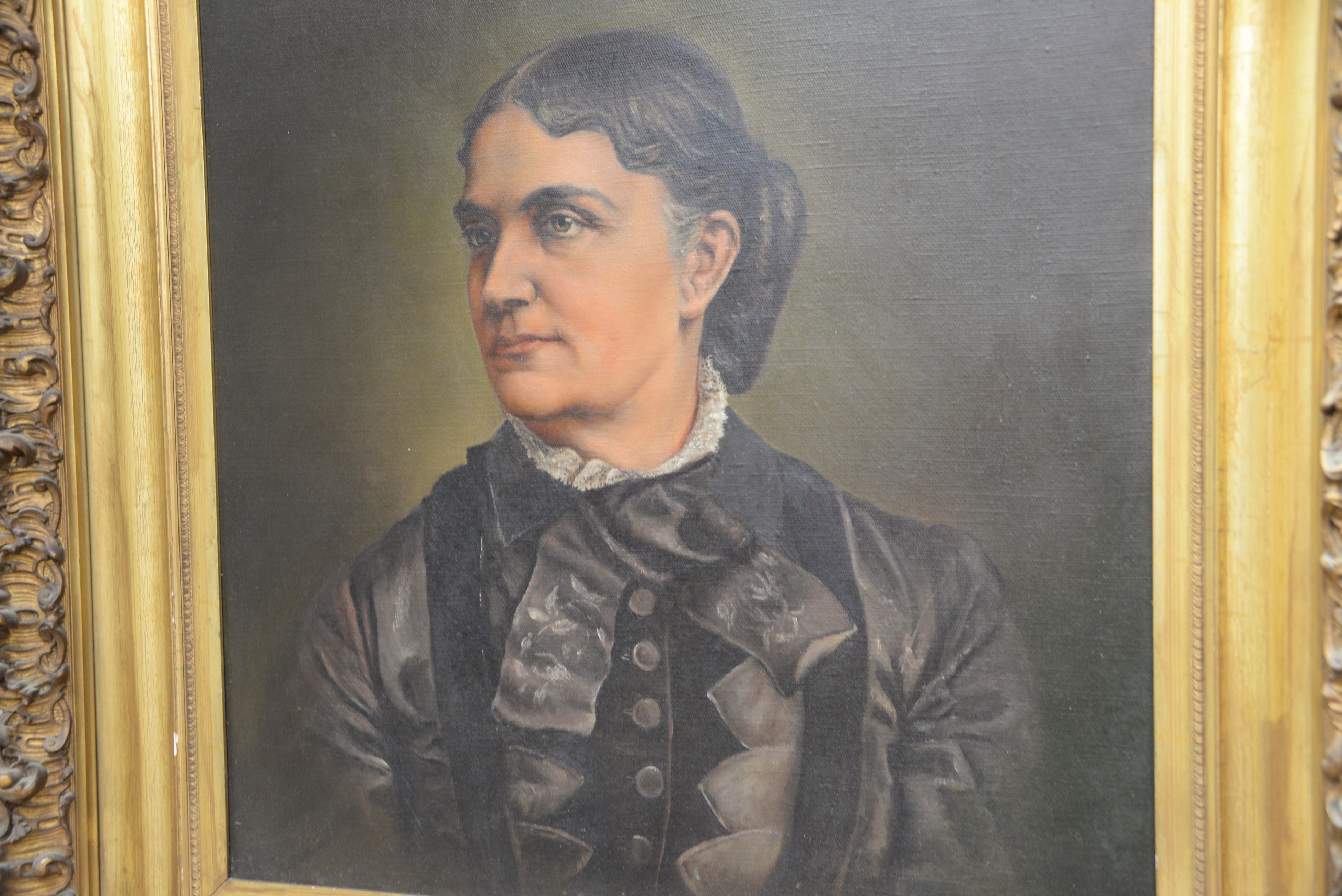 Lot 140: Victorian oil on canvas portrait of a woman, in gilt frame, MaryJane Dagg Mallary 1833-1901. 27 x 22