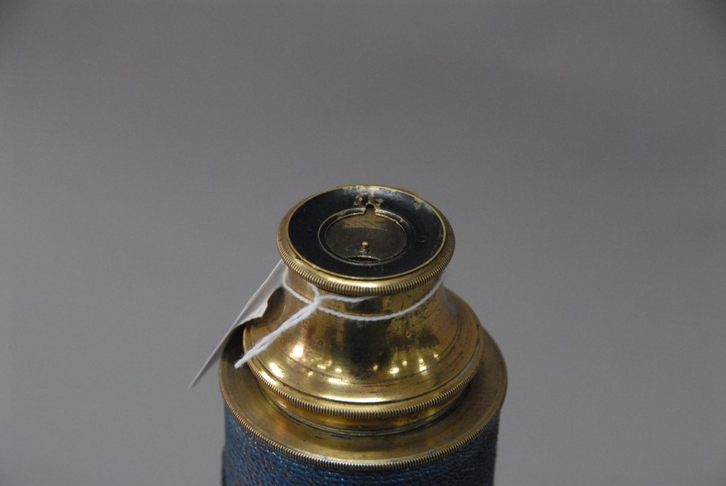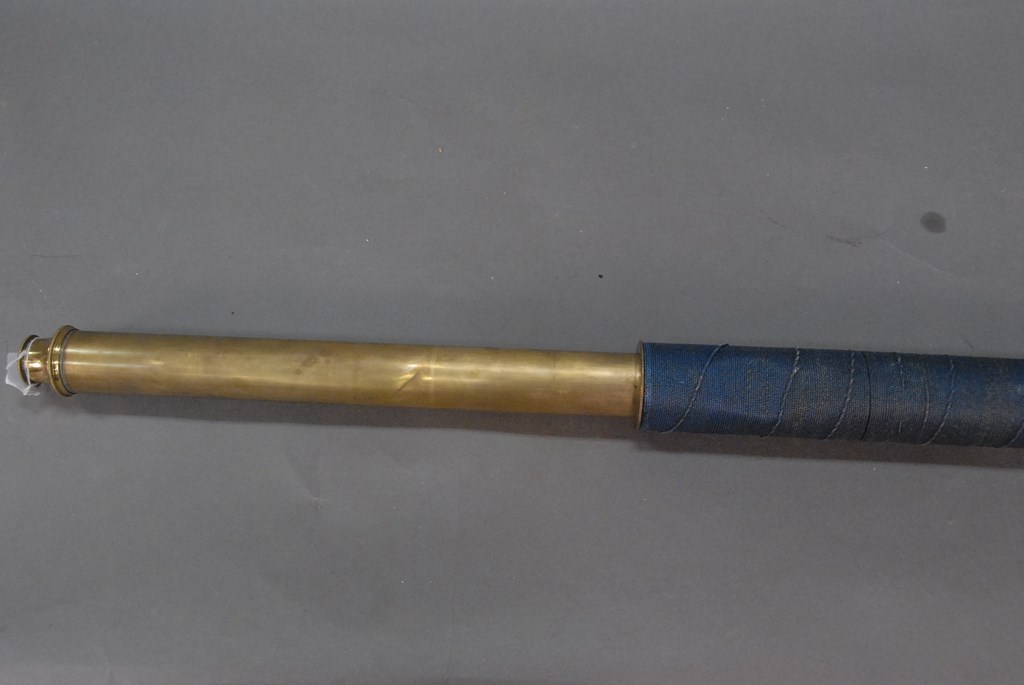 Lot 141: Bardou & Son brass telescope wrapped with blue twine, marked Bardou & Son Paris, 19th century one draw. total lg. 38in.