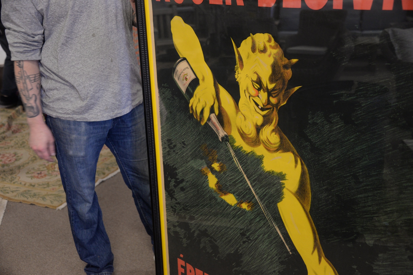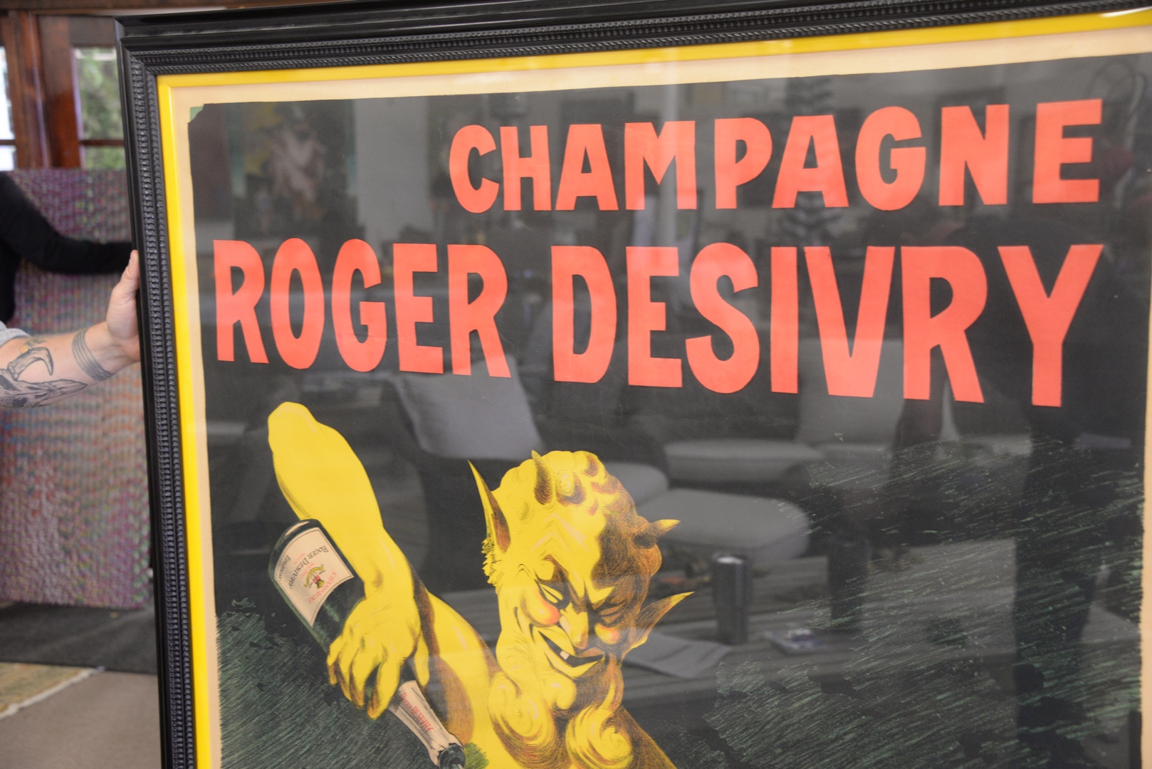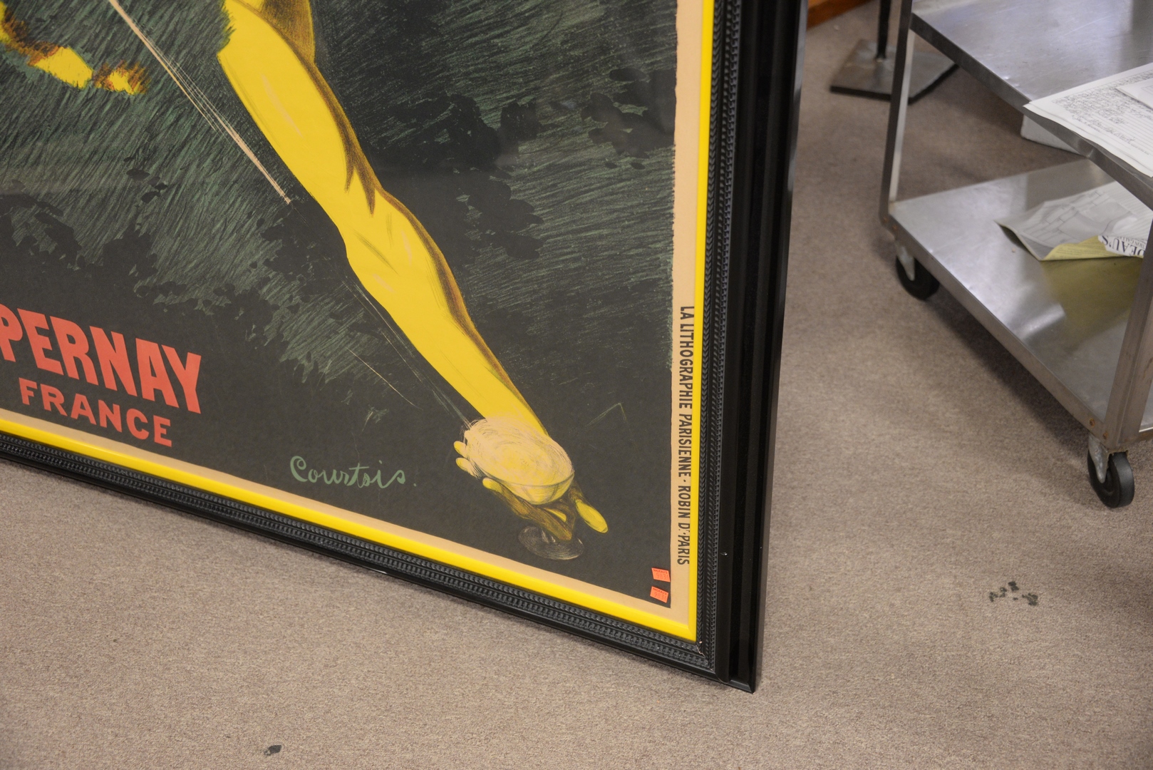 Lot 141: Champagne Roger Desivry Poster, Epernay France, artist Raphael Courtois, marked La Lithographie, Parisienne Robin D Paris, 60″ x 43″.