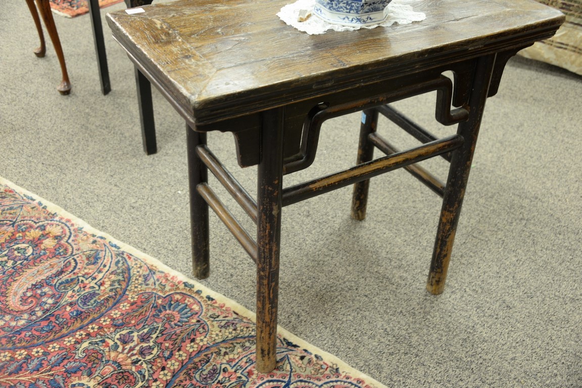 Chinese altar table with rectangular top on turned legs. ht. 33 3/4in., top: 19 x 37 1/2