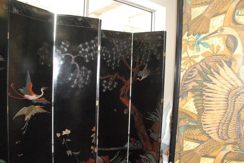 Eight panel Oriental style screen, ht. 7′, lg. 10’2.