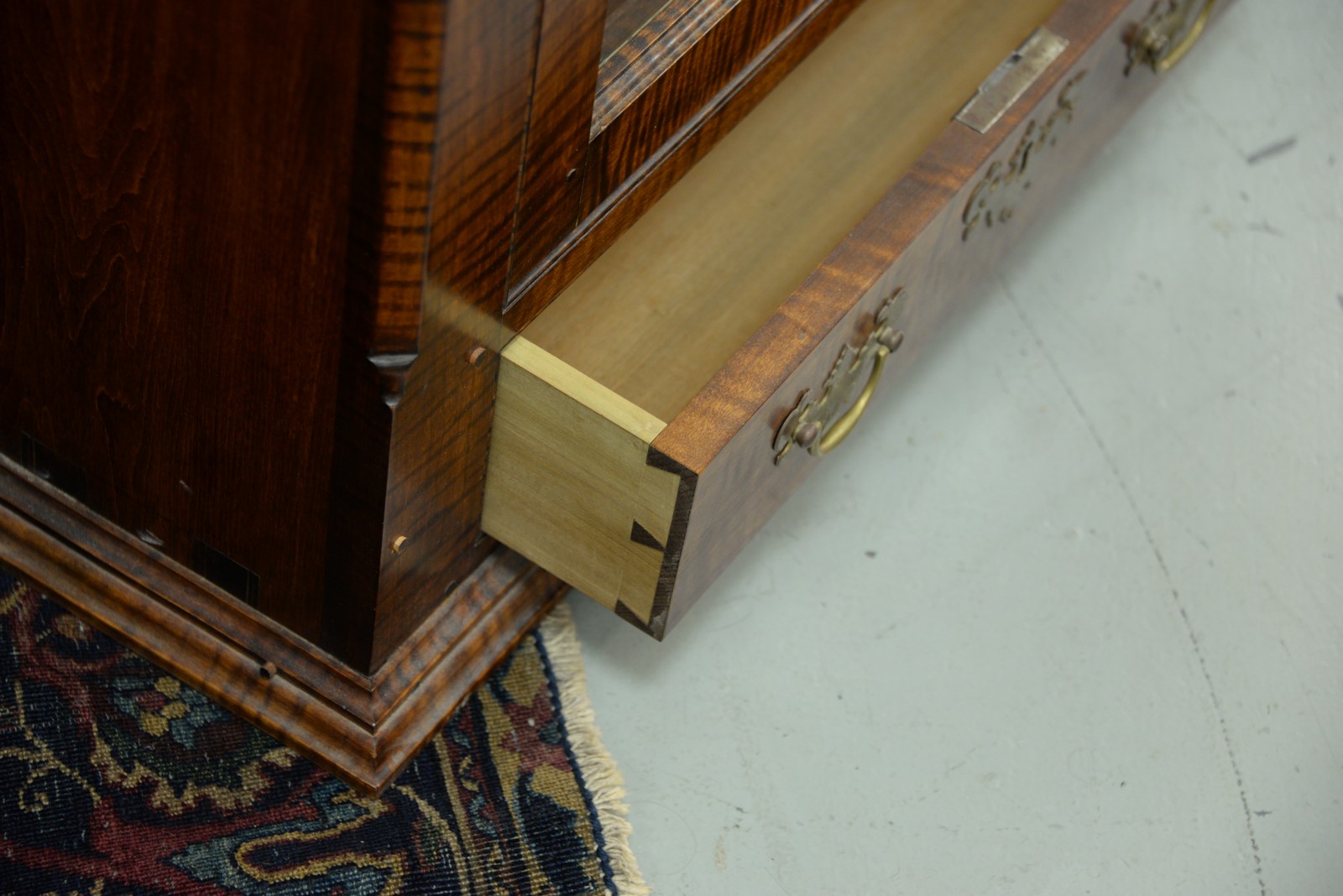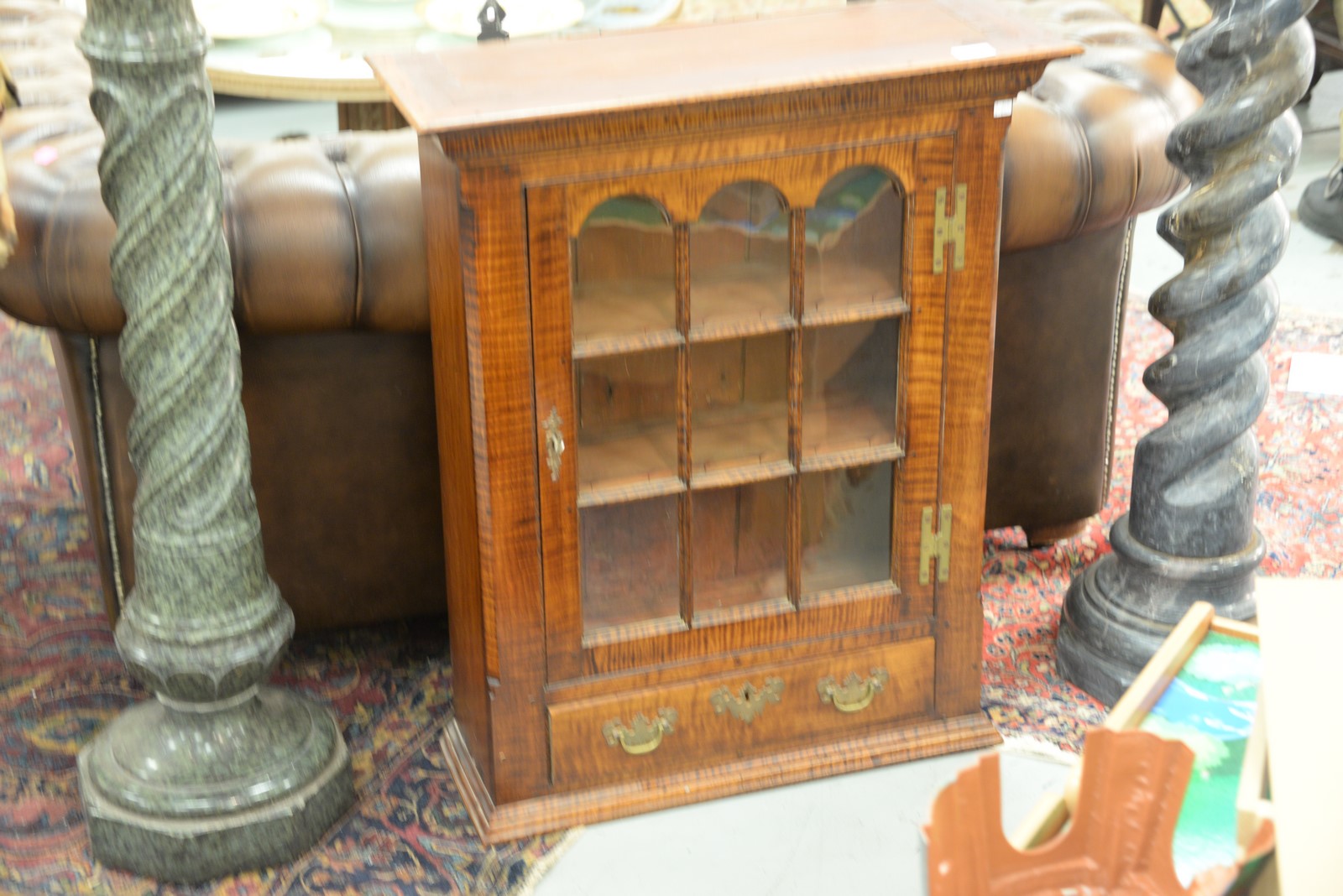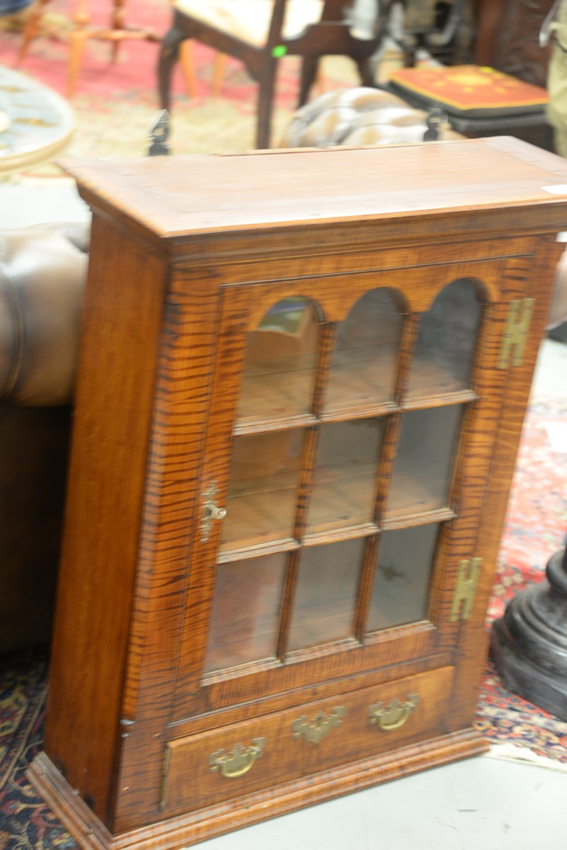 Lot 141: G. Beshore at Tall Chimneys custom tiger maple hanging cabinet with spoon holders in shelves and one drawer.ht. 32 1/2 in. wd. 2…