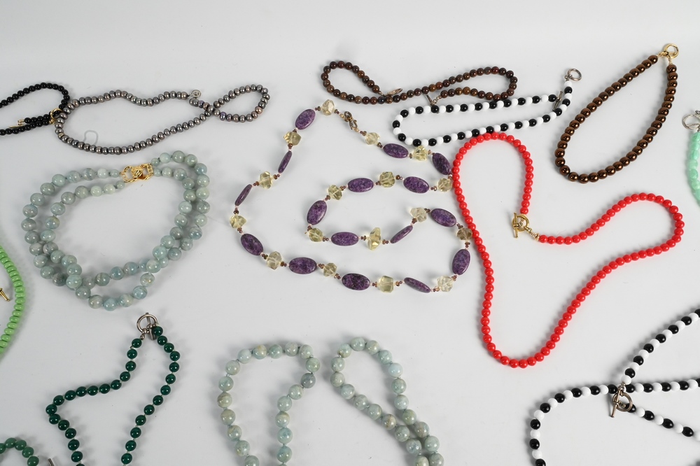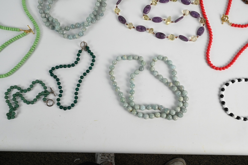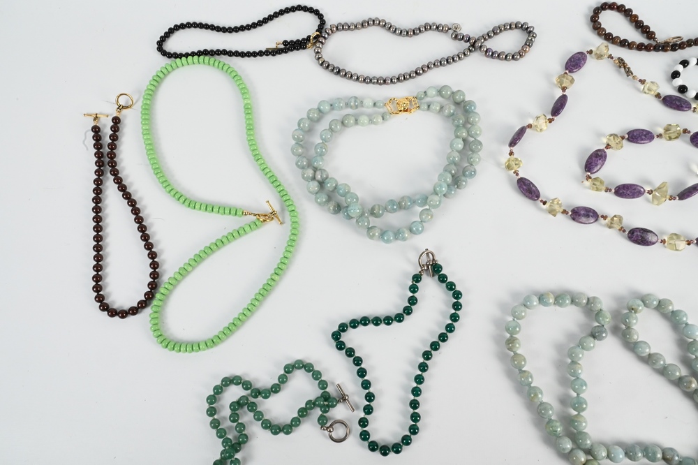 Large Group of Beaded Necklaces, to include large stone, double strand, agate, most having sterling clasps.