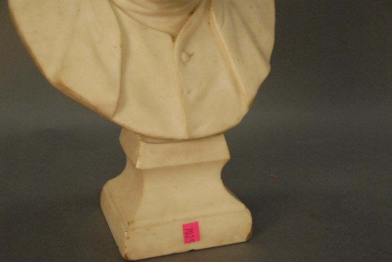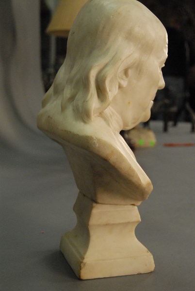 Marble sculpture of Benjamin Franklin on square pedestal. ht. 18 1/2in.