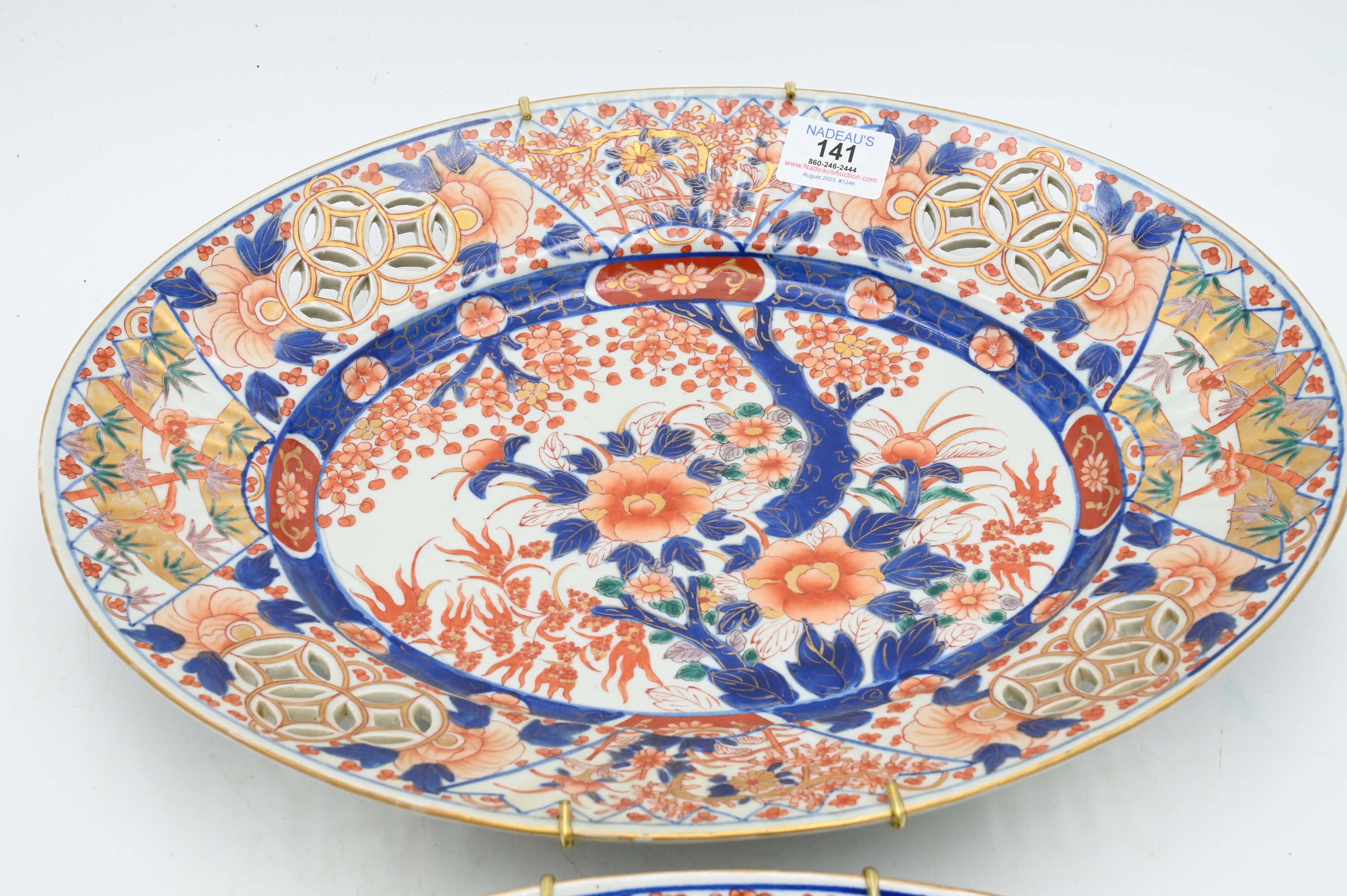 Lot 141: Near Pair of Ovulour 19th Century Japanese Imari Porcelain Chargers