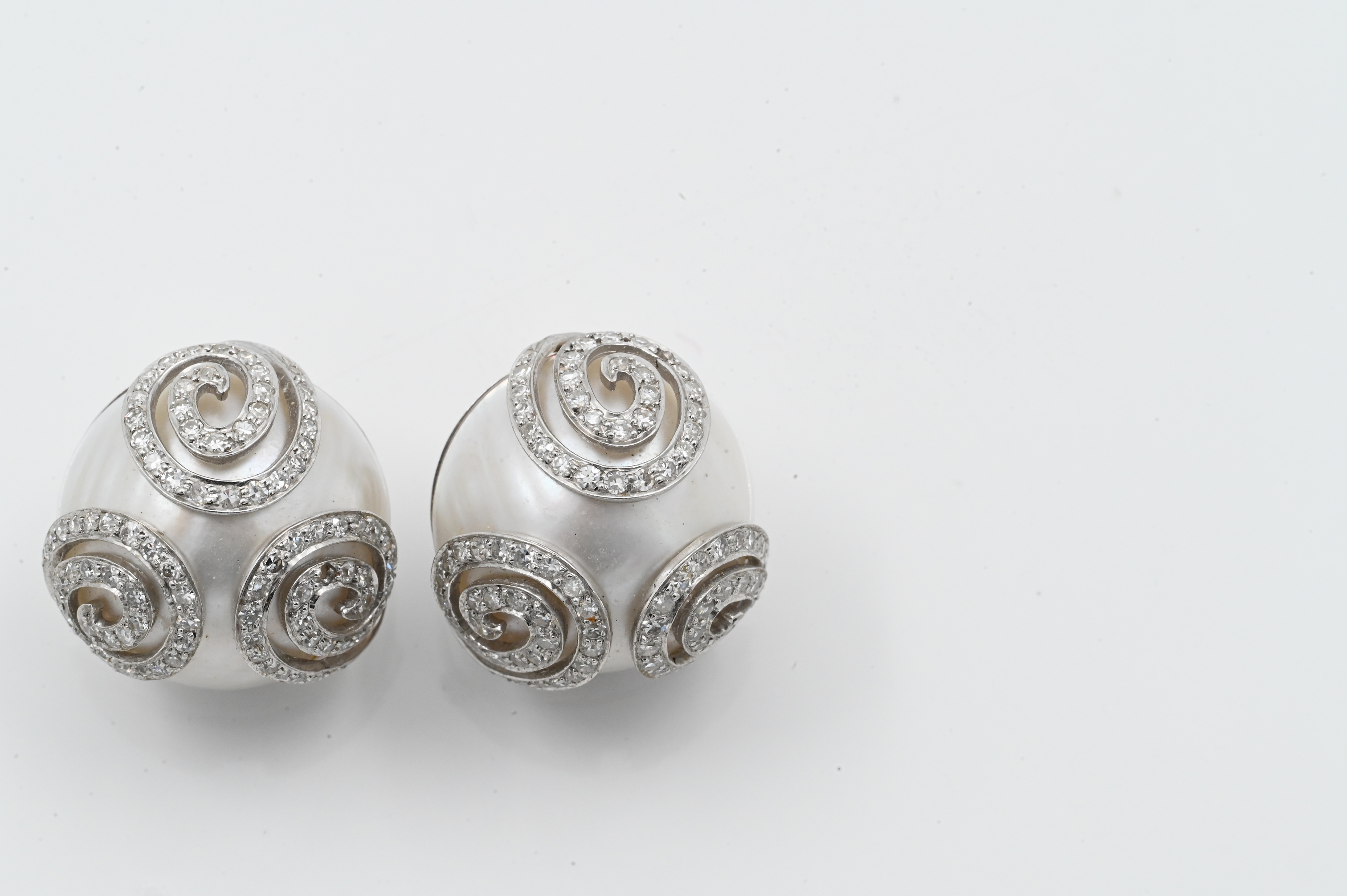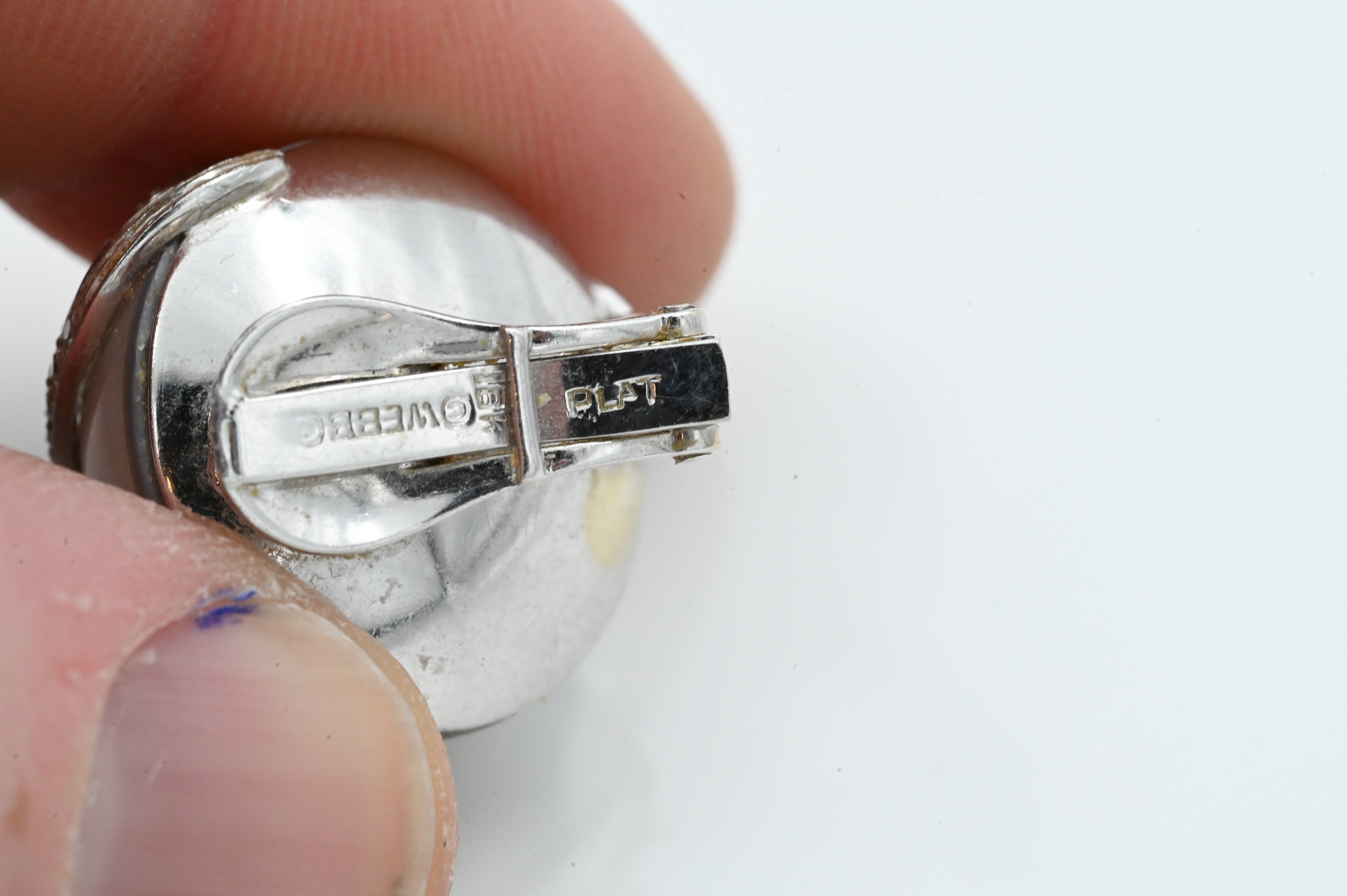 cultured pearl 18K white gold and platinum diamond earrings, signed Webb