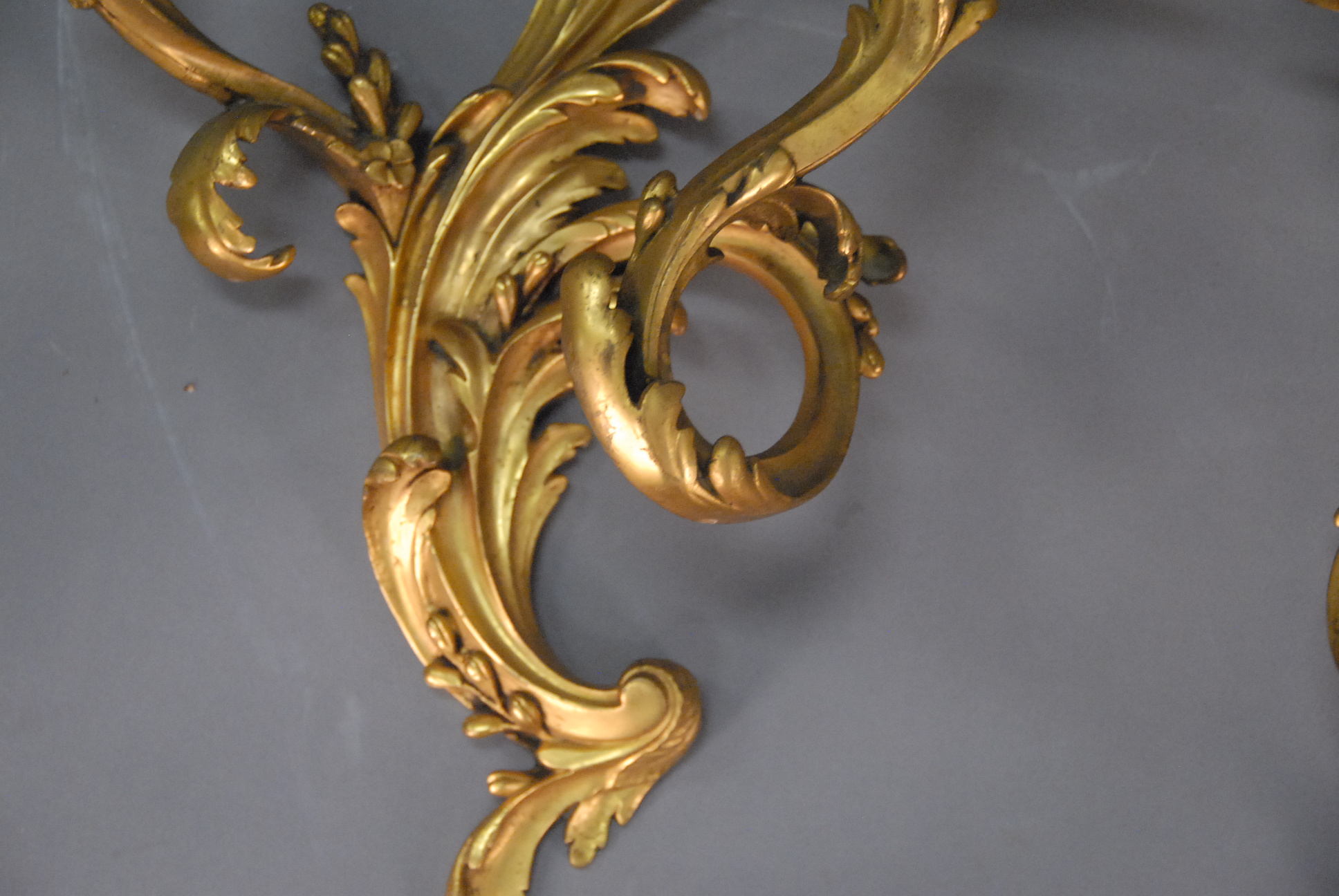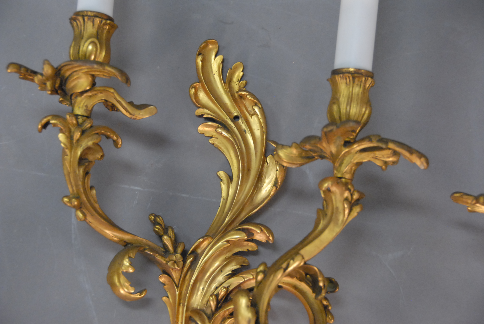 Pair of Louis XV gilt bronze two-light wall sconces, 18th/19th century. ht. 17in. wd. 13in.
