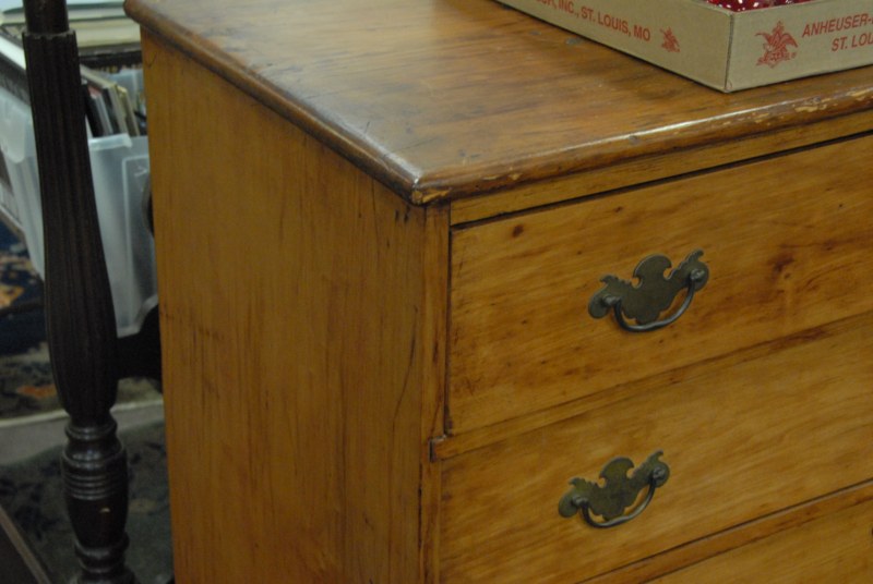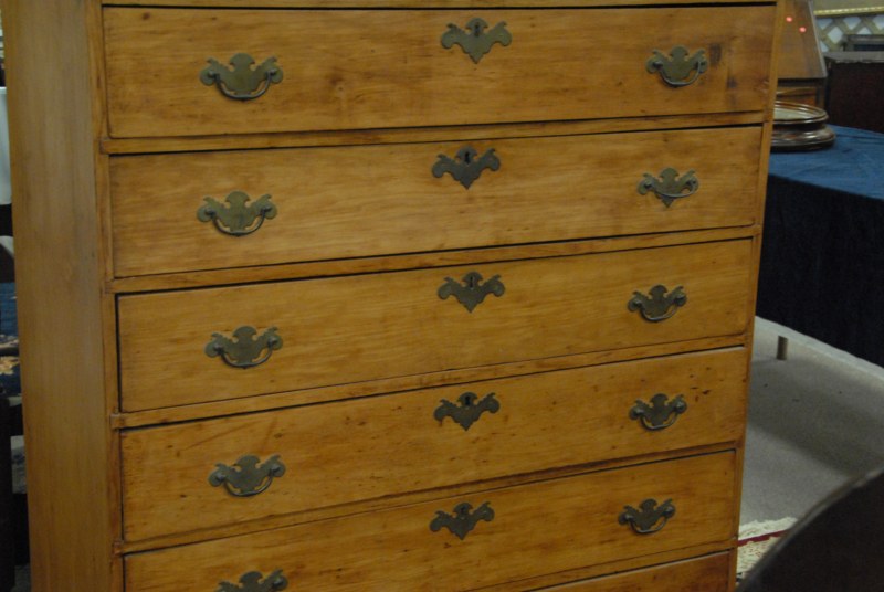 Lot 141: Primitive 5 drawer tall chest, bracket base.