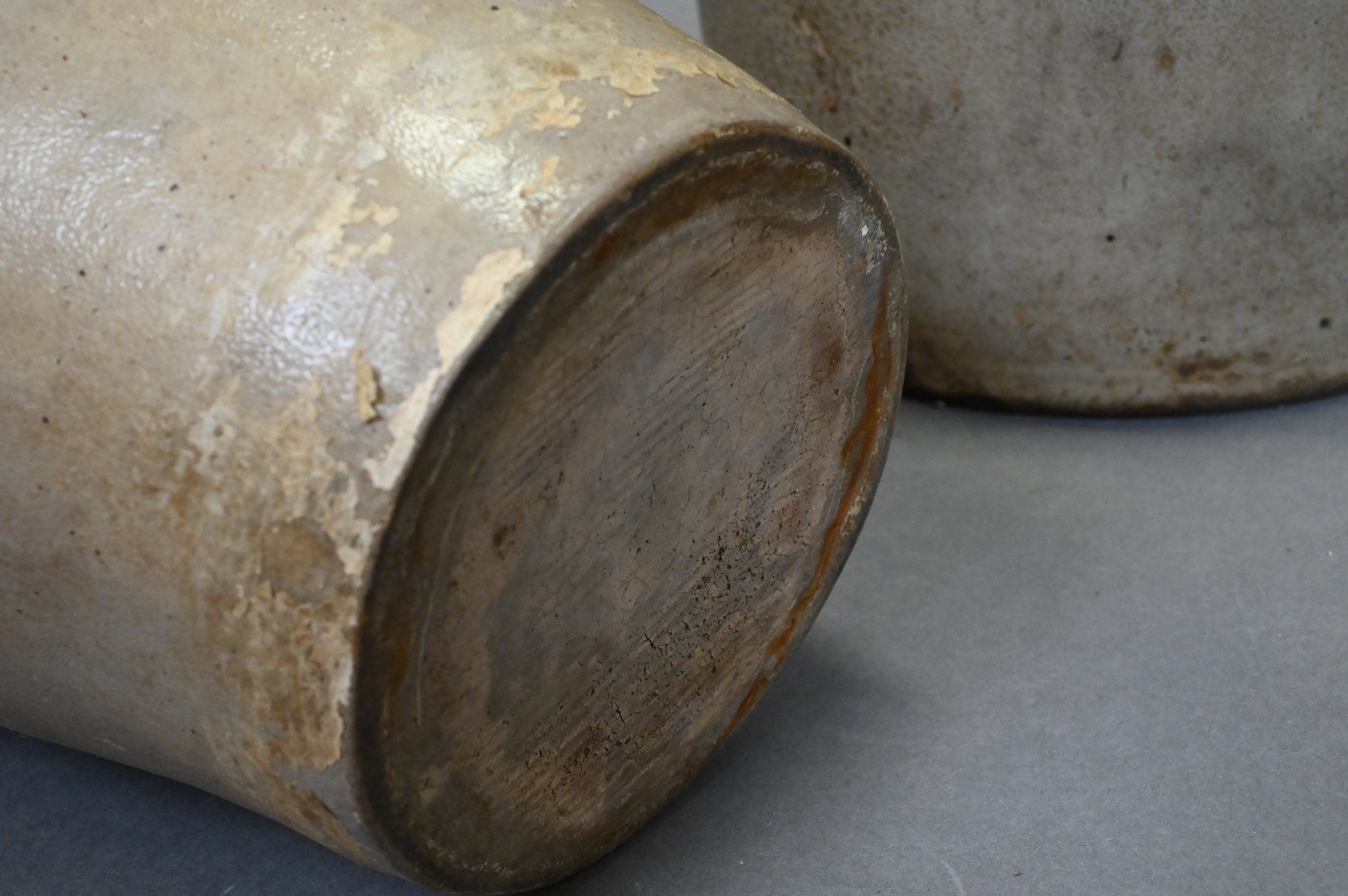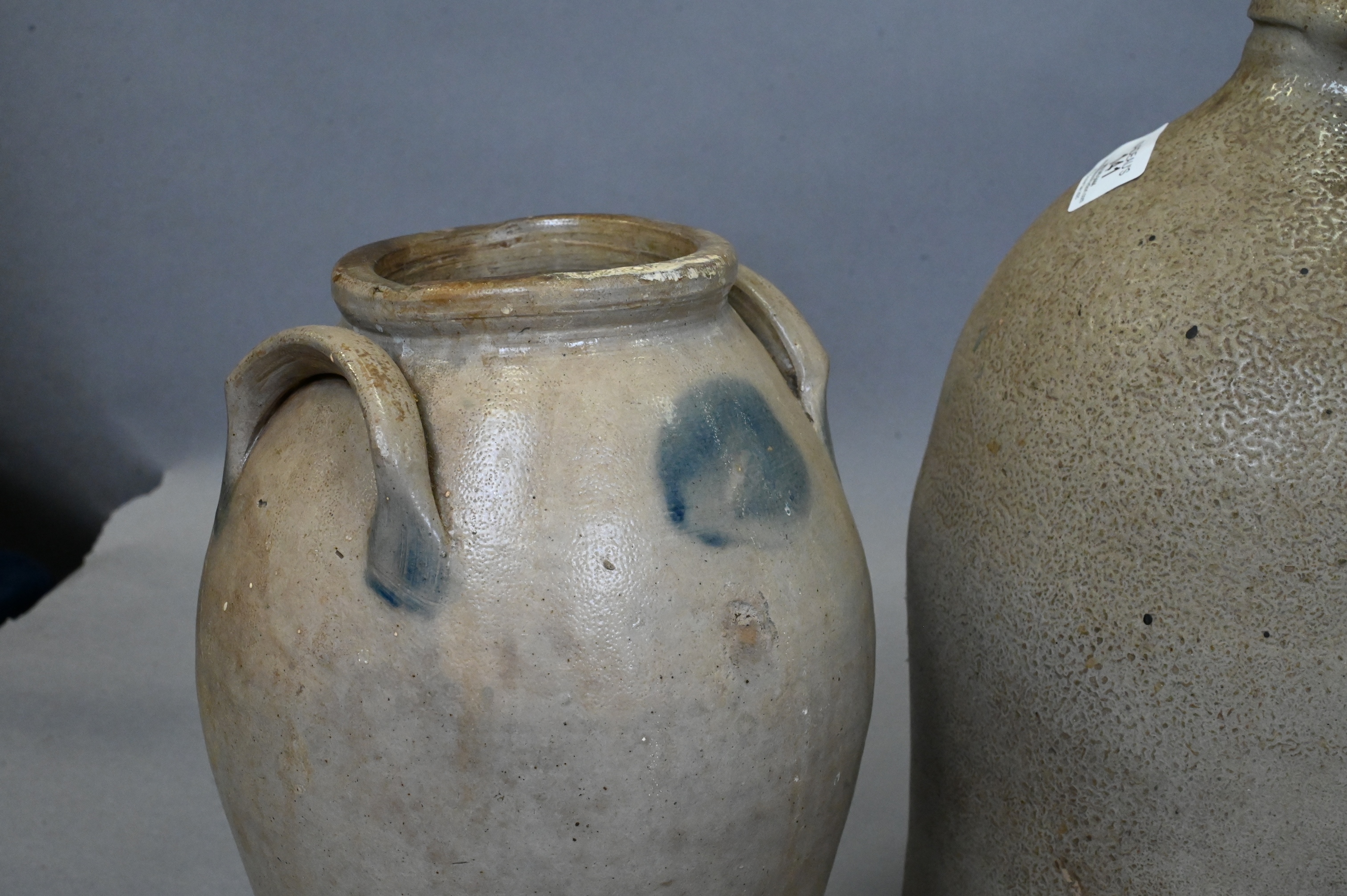 one gallon and two gallon jar marked E & L. P Norton Bennington, VT., along with double handled jar, each having cobalt blue floral design, 19th century
