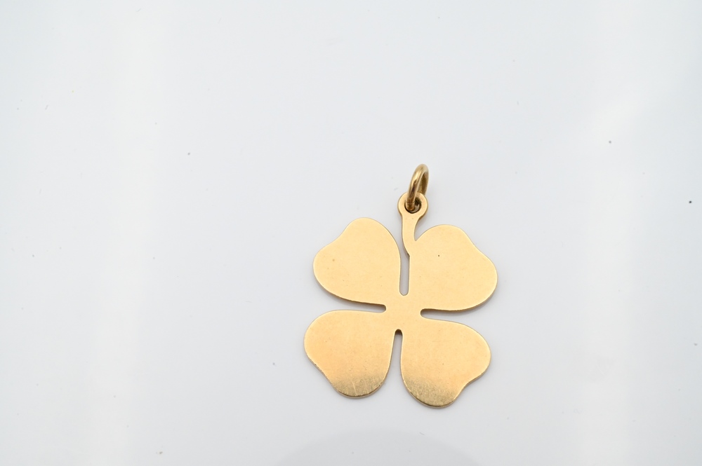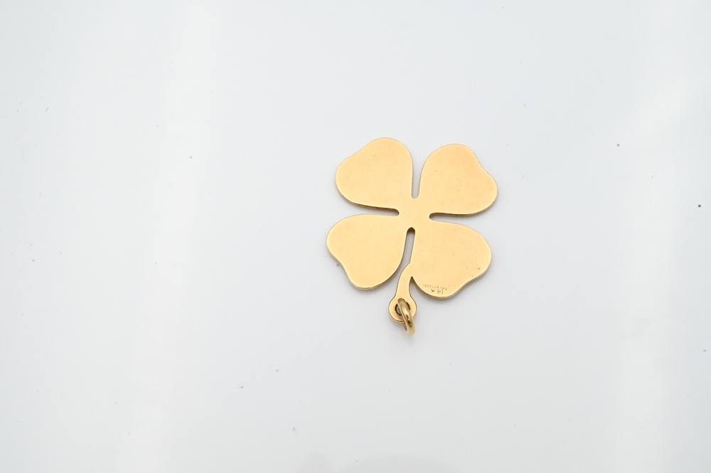 Tiffany & Company 14 Karat Gold Clover Charm or Pendant, 9 grams.