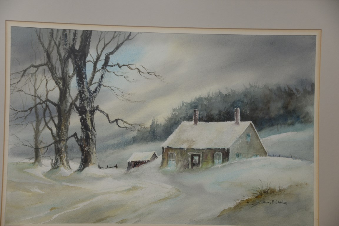 Two James Camlin 1918-1982 watercolor winter landscapes, signed lower right and lower left James A. Camlin, sight size 13 x 20.