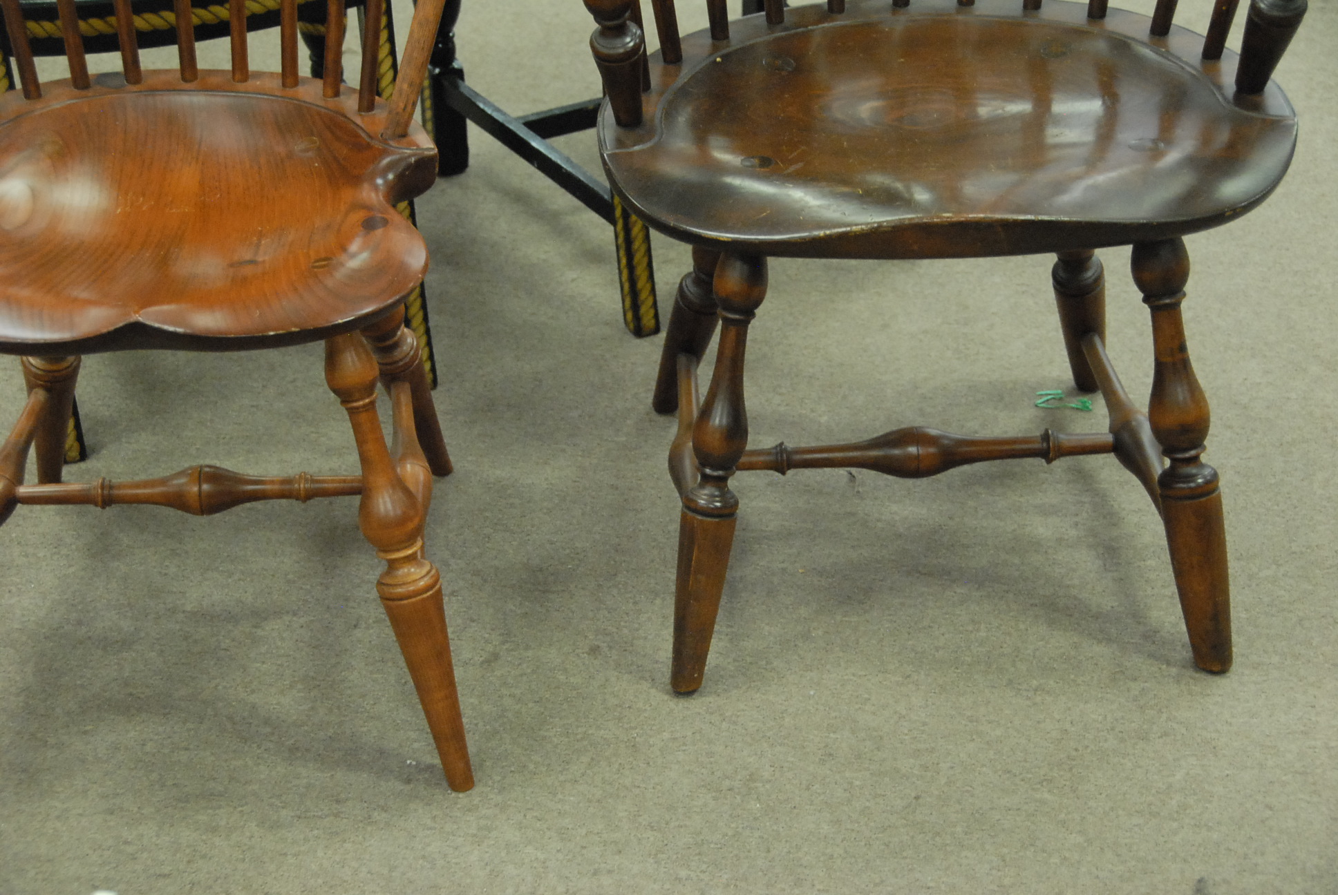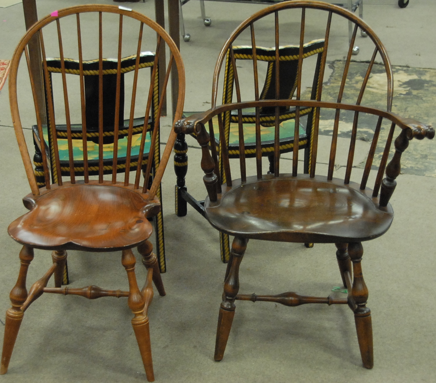 Lot 141: Two Windsor chairs including a side chair marked D. R. Dimes and armchair signed Virginia Craftsmen.