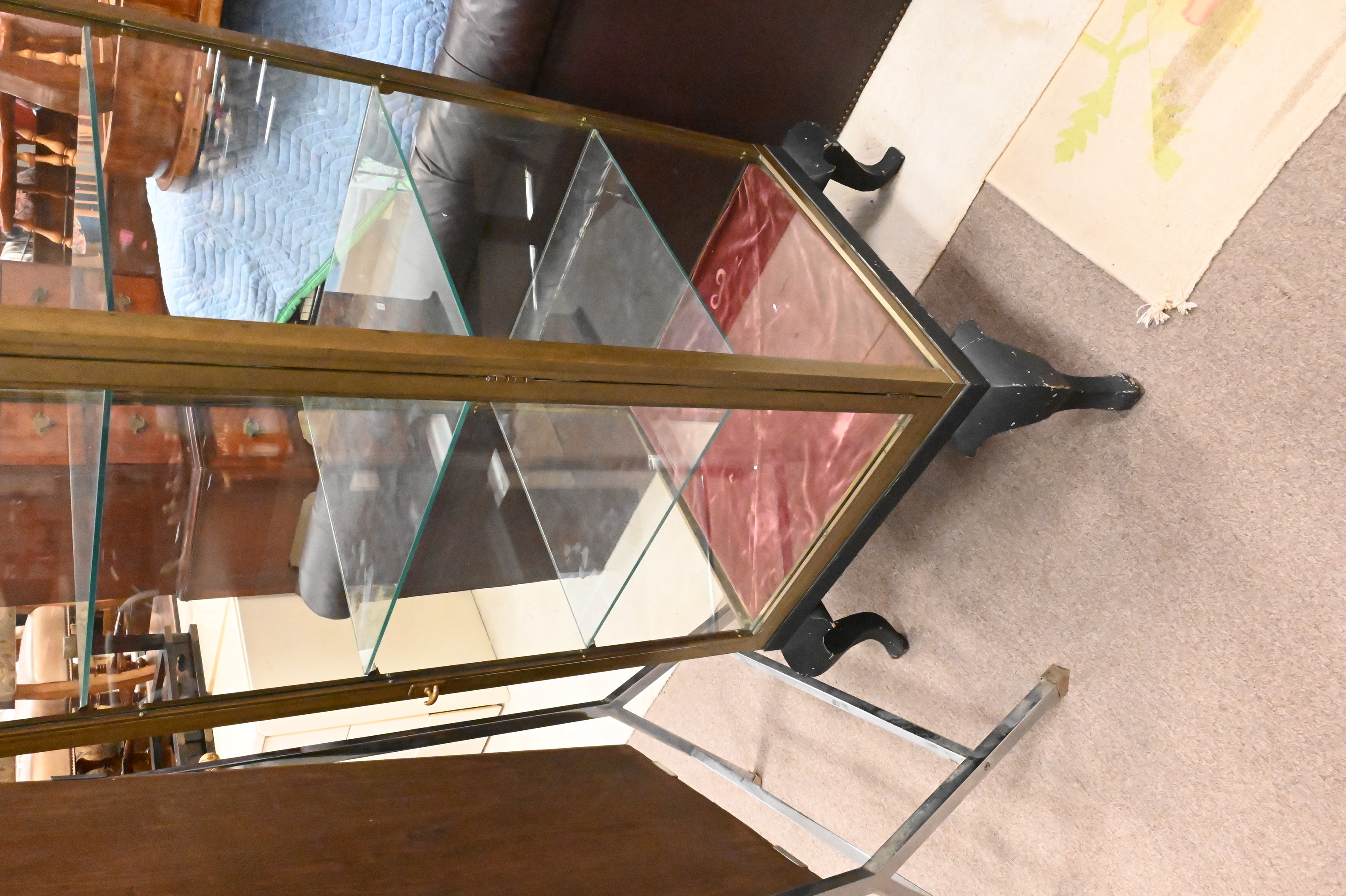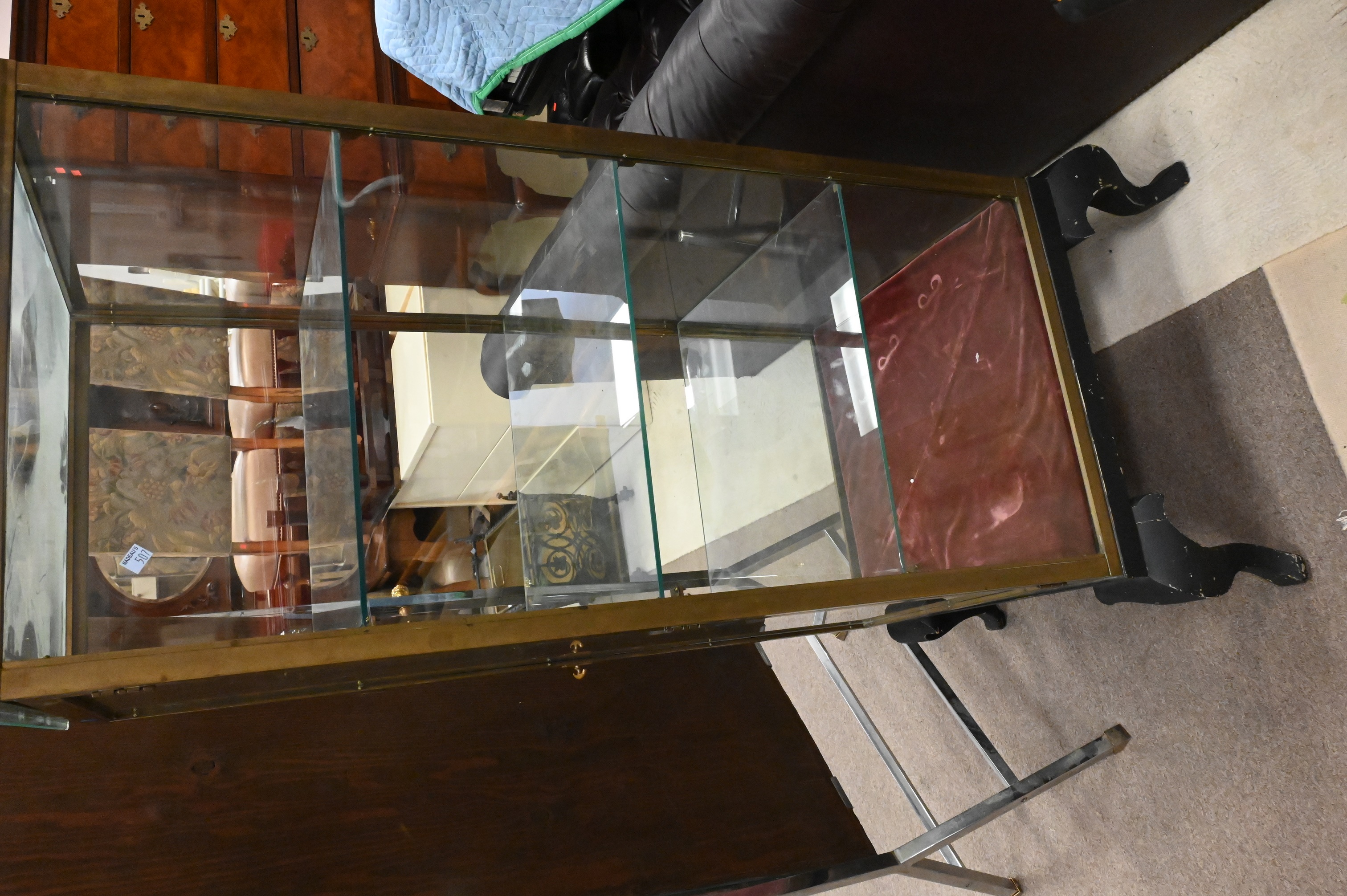 Lot 142: Brass and Glass Curio Cabinet with Single Glass Door Opening to Four Shelves