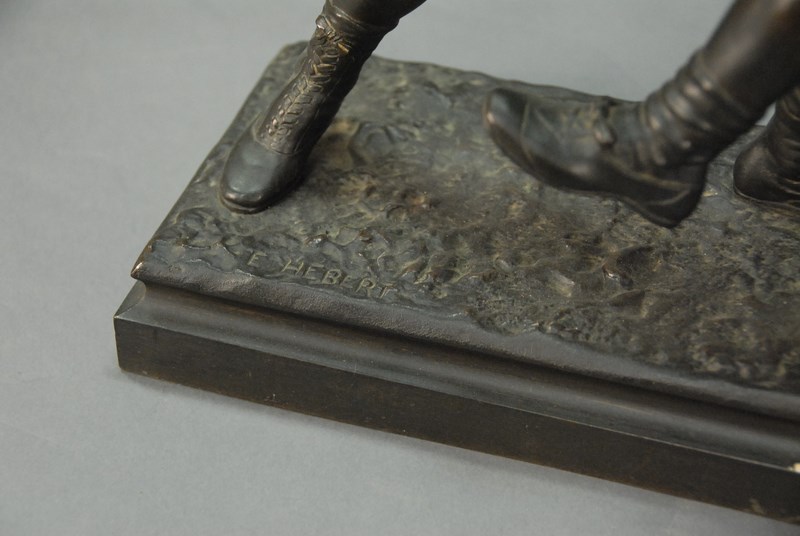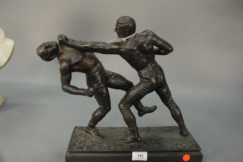 Lot 142: Bronze sculpture of two shirtless males boxing signed F. Hebert. base 5 1/2 x 14, ht. 15in.