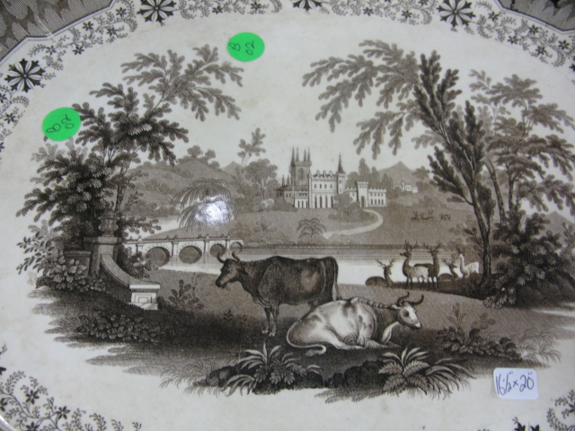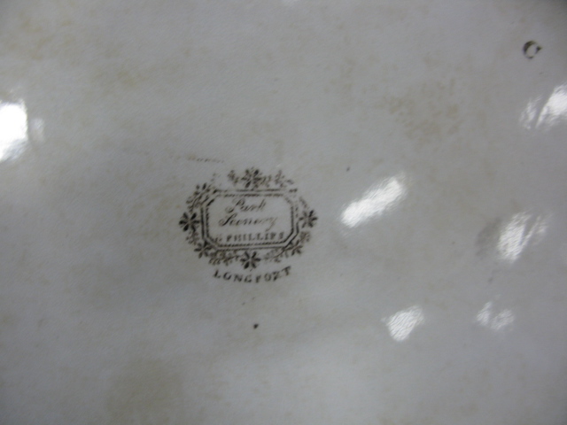 Brown and white Staffordshire platter marked Park Scenery Phillips Longport.