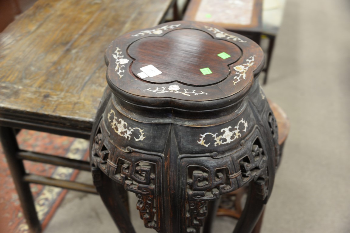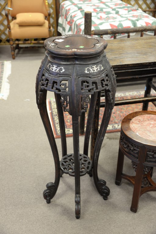 Carved Oriental stand with mother of pearl inlays. ht. 42in.