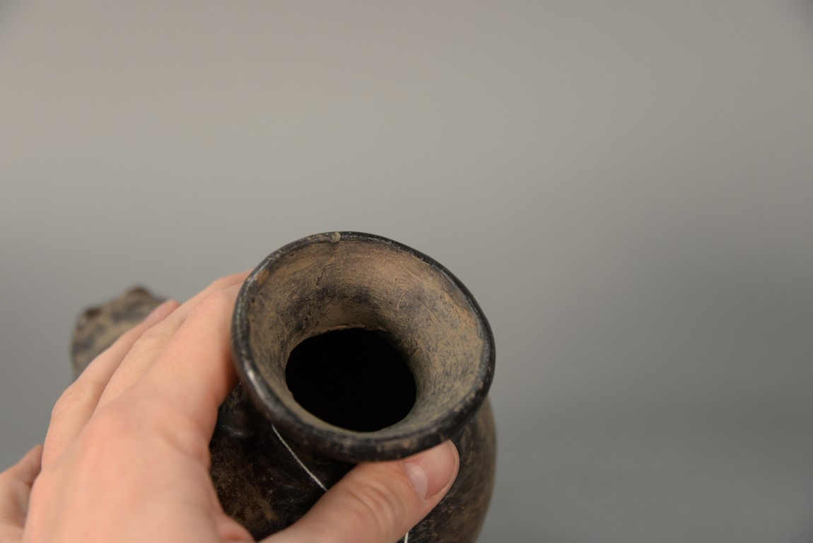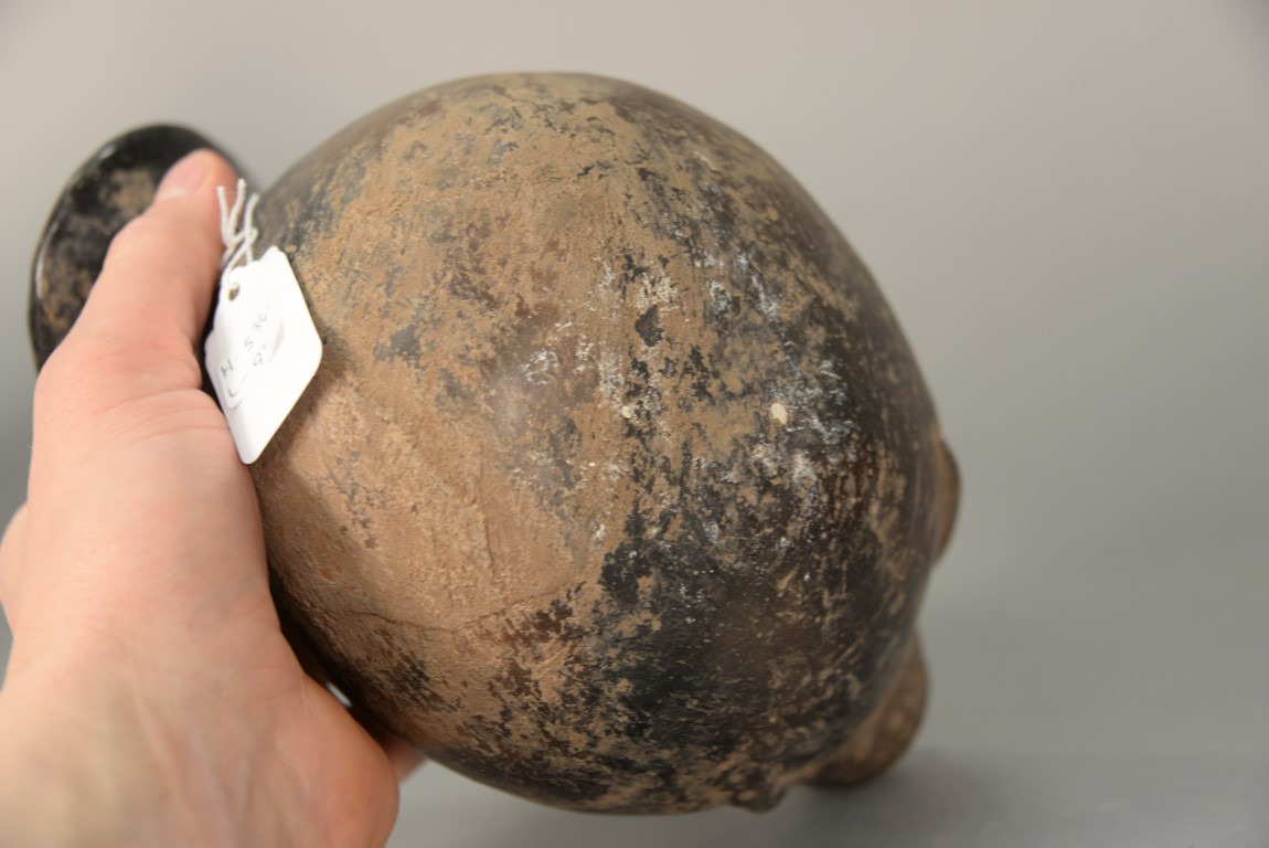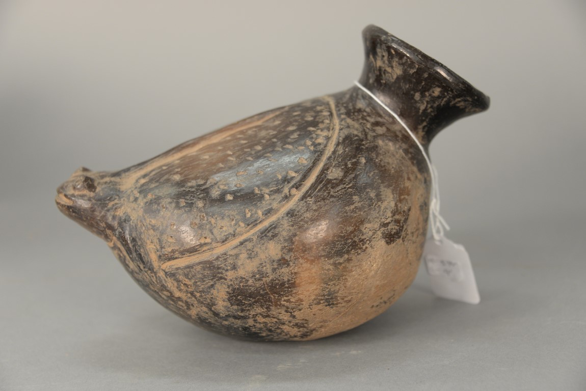 Frog Effigy pot or bottle. ht. 5 3/4 in. lg. 8 in.