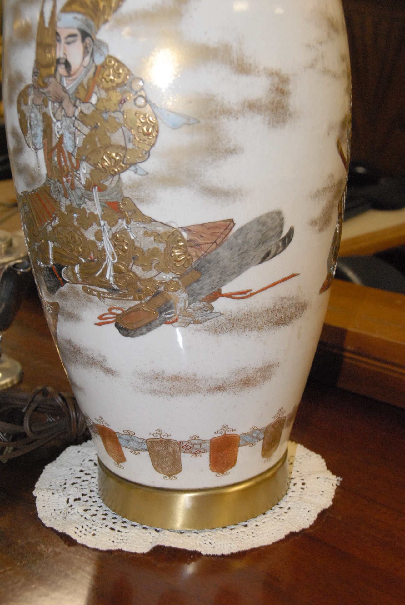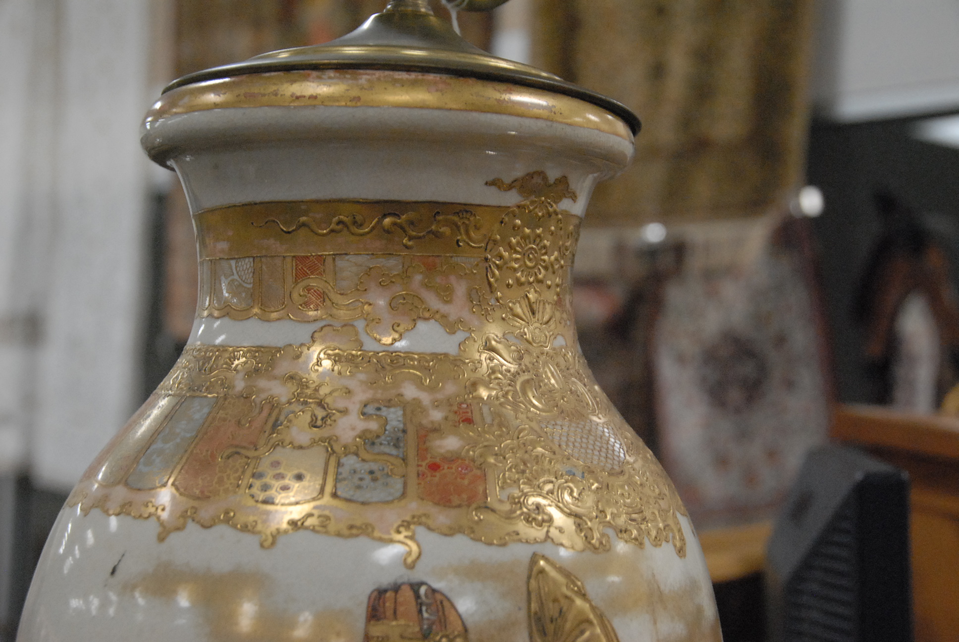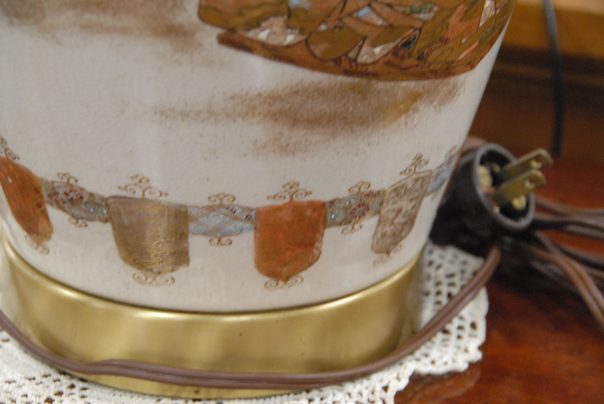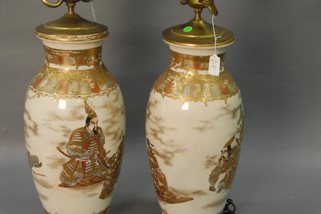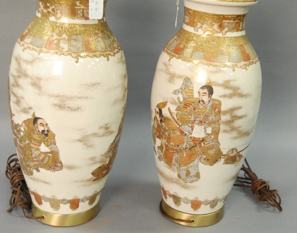 Pair of Satsuma vases made into table lamps. vase height 18in.