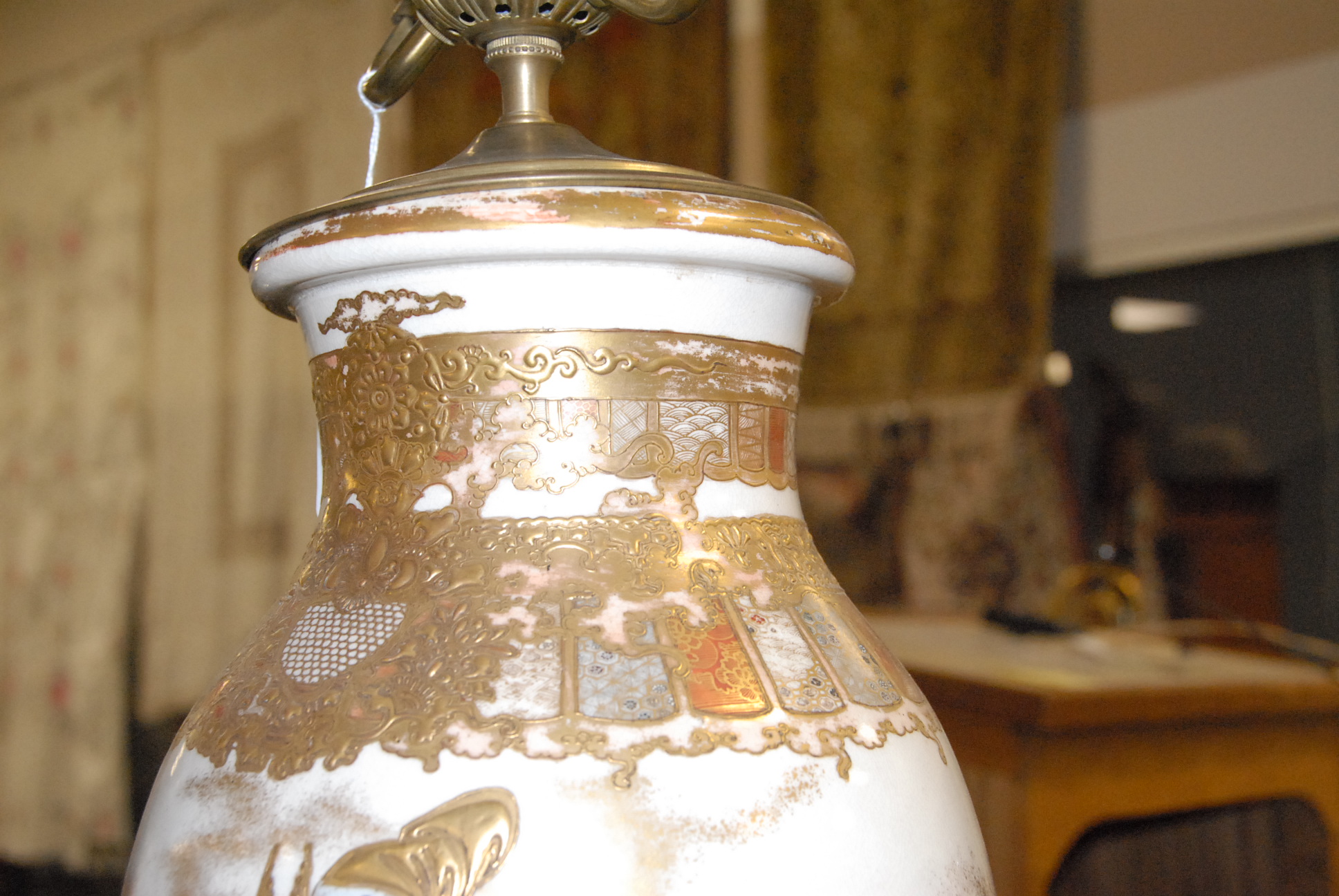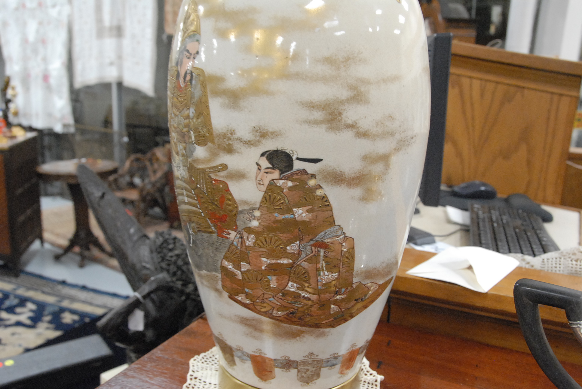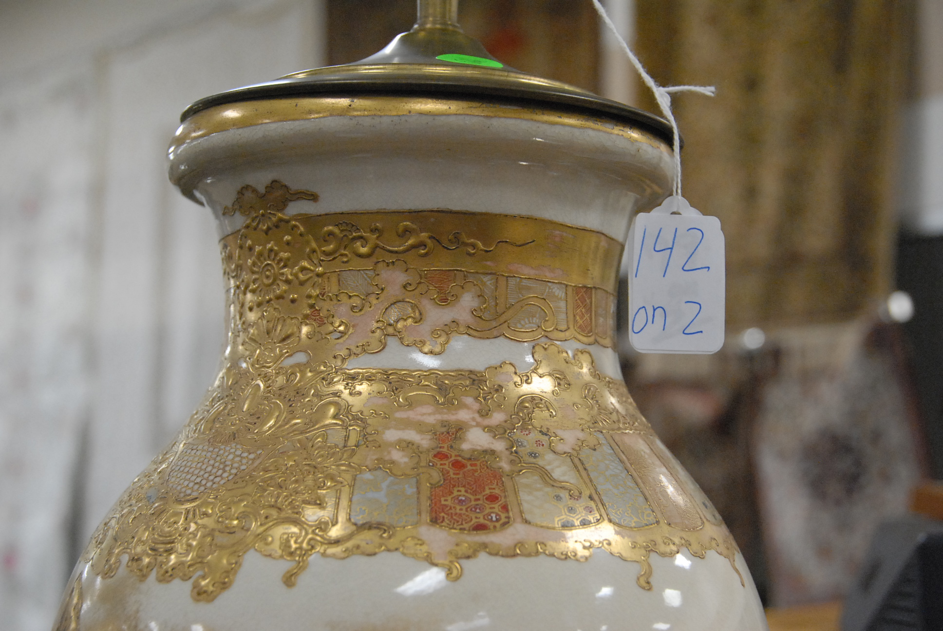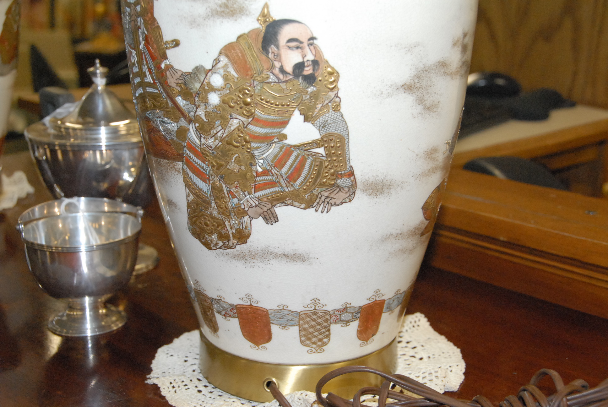 Pair of Satsuma vases made into table lamps. vase height 18in.