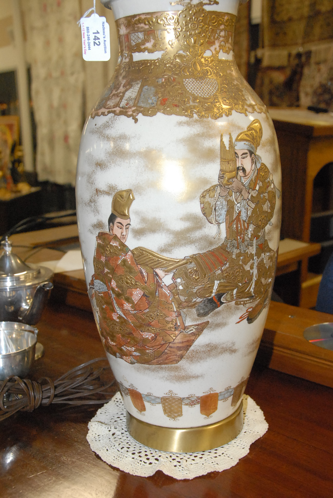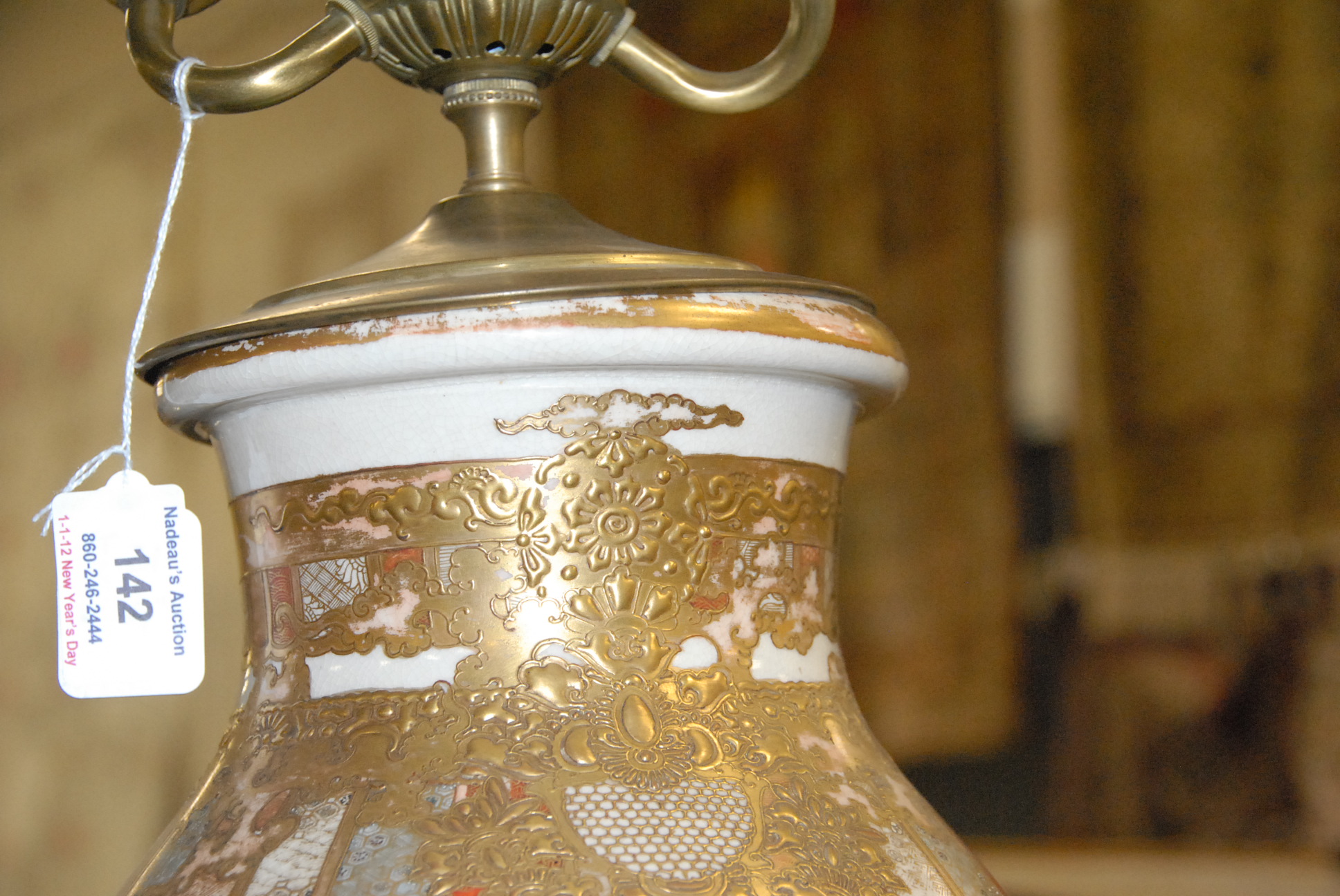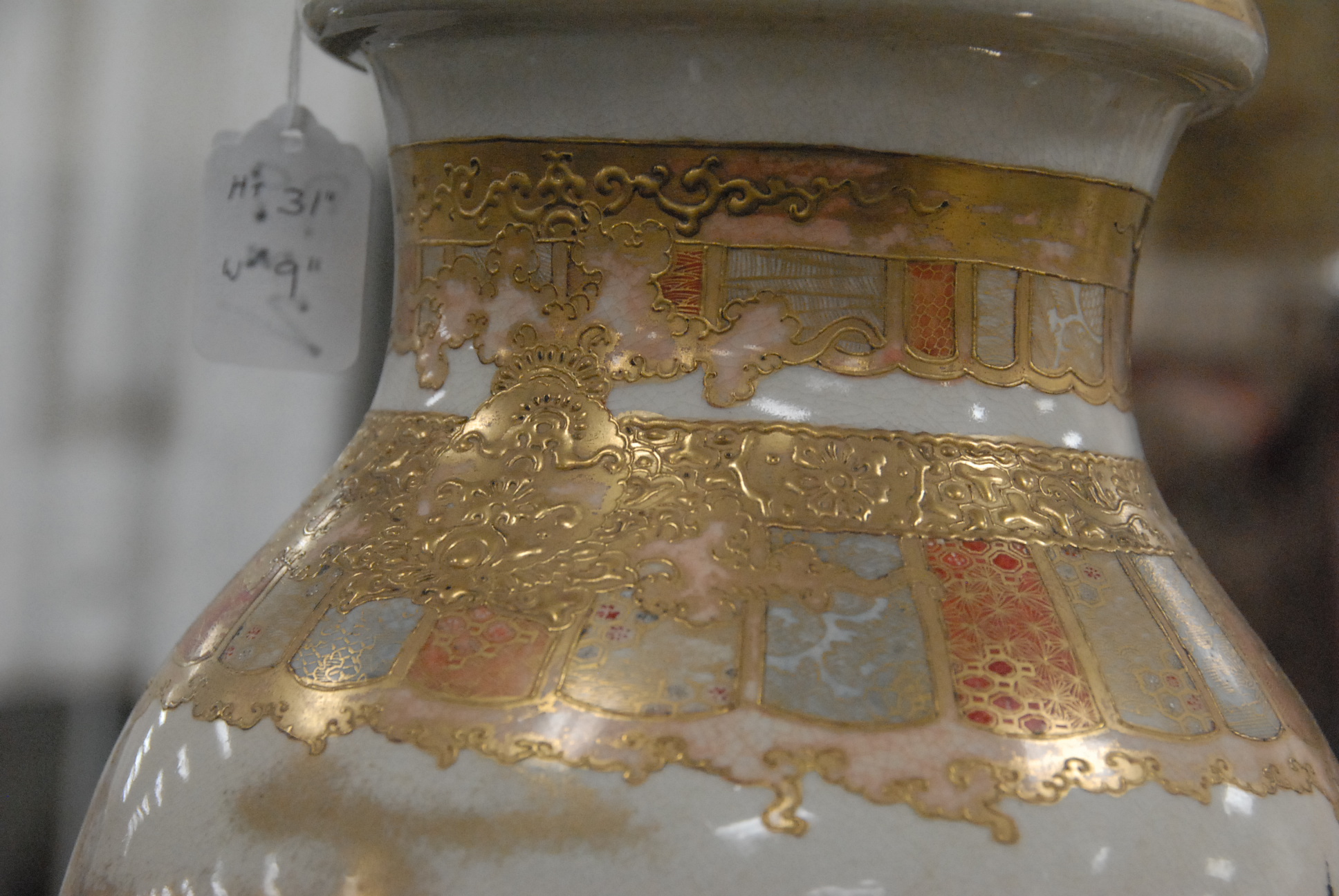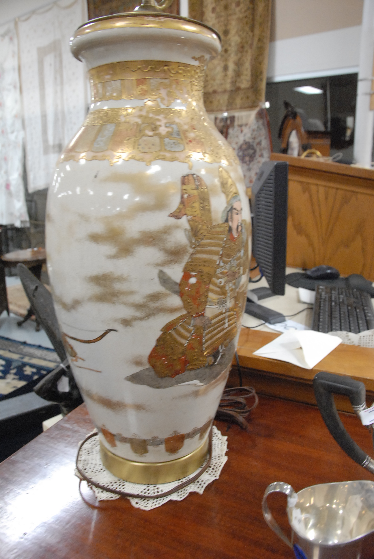 Pair of Satsuma vases made into table lamps. vase height 18in.
