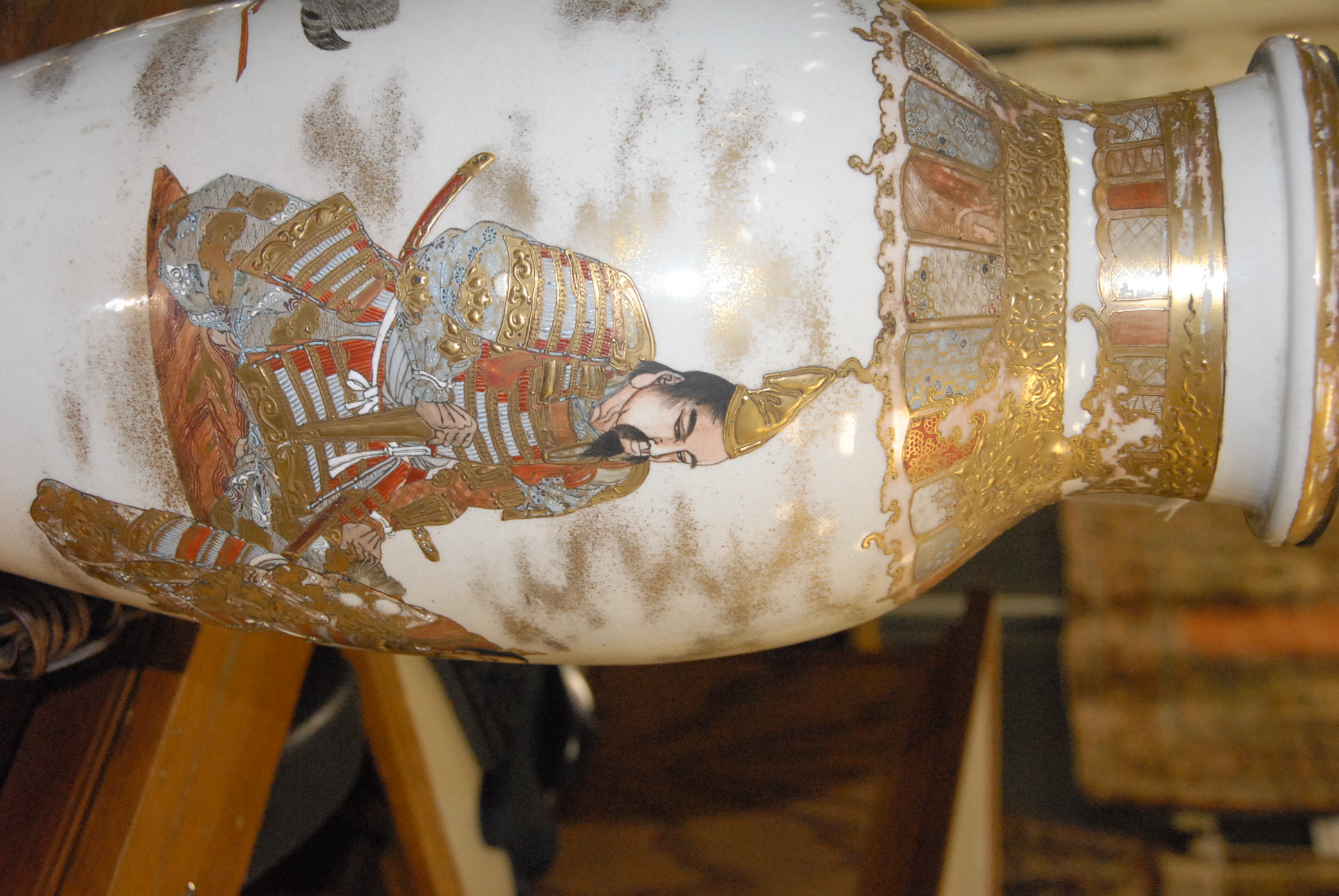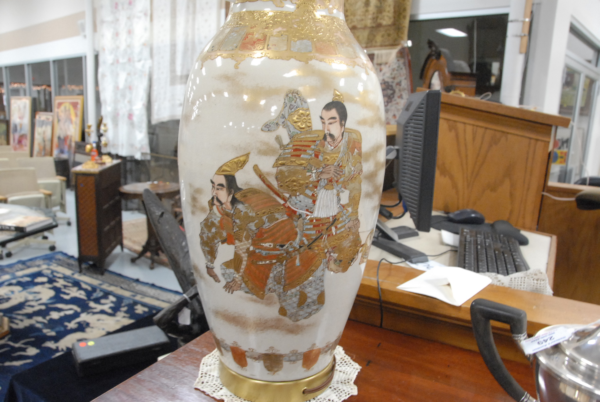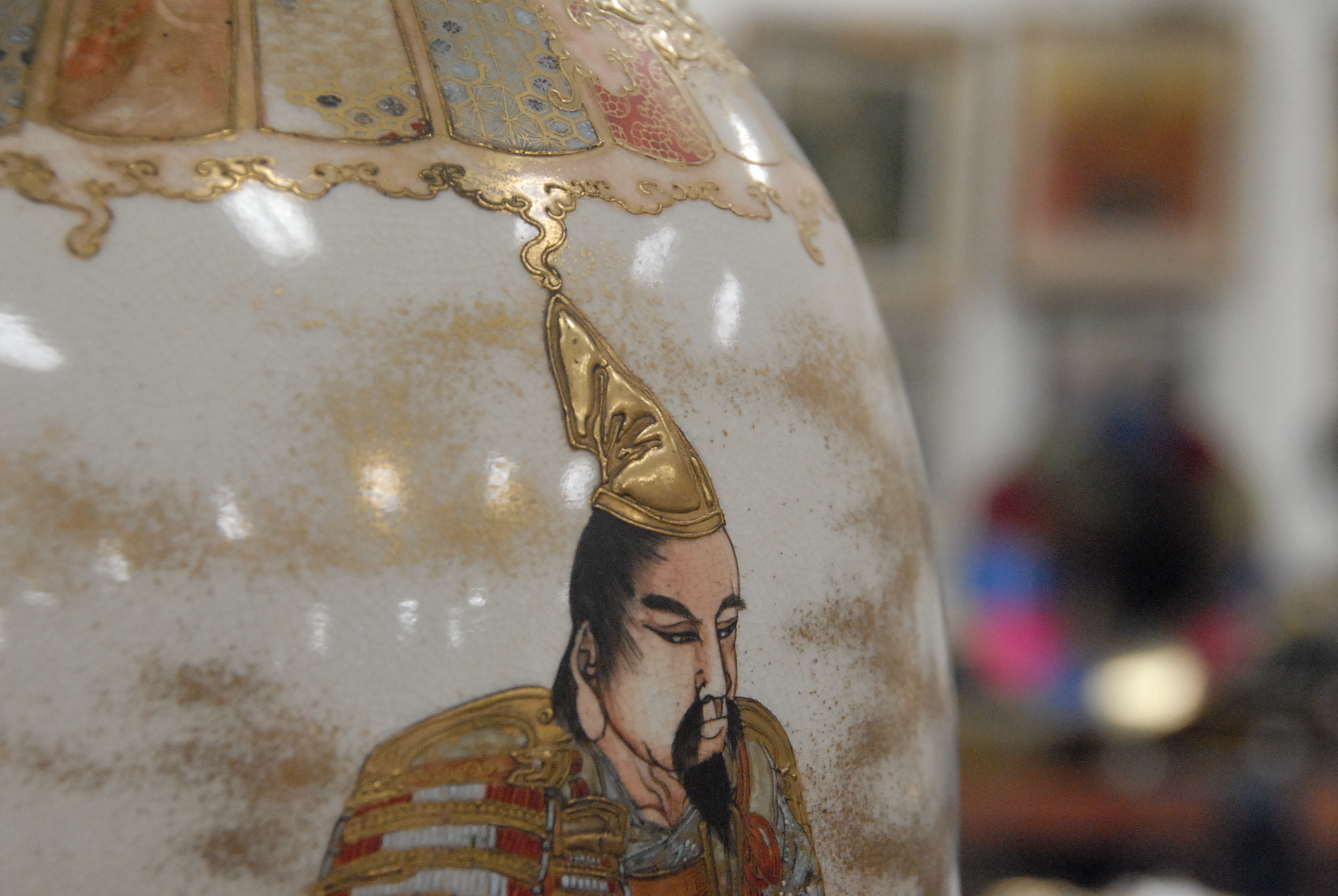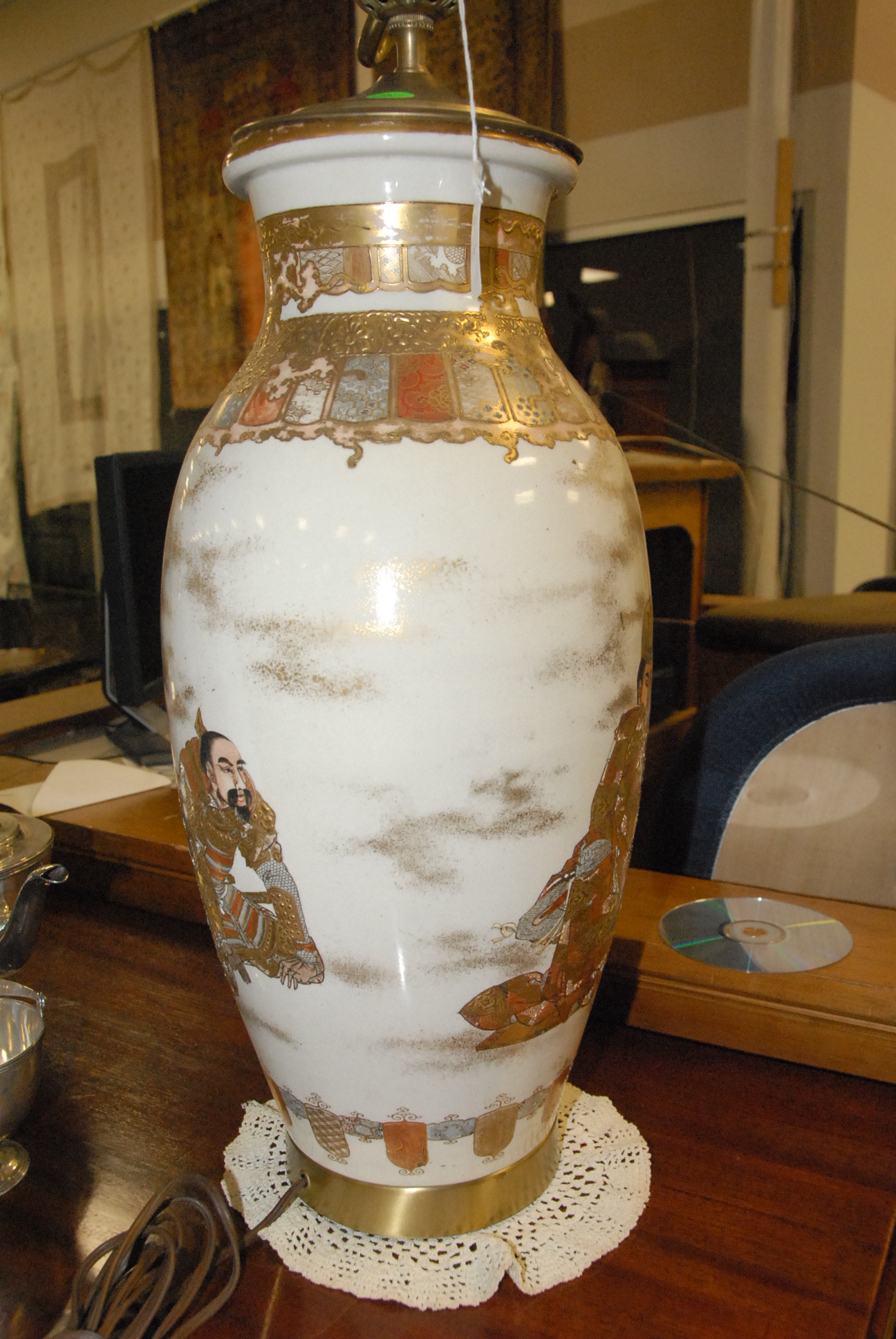 Pair of Satsuma vases made into table lamps. vase height 18in.