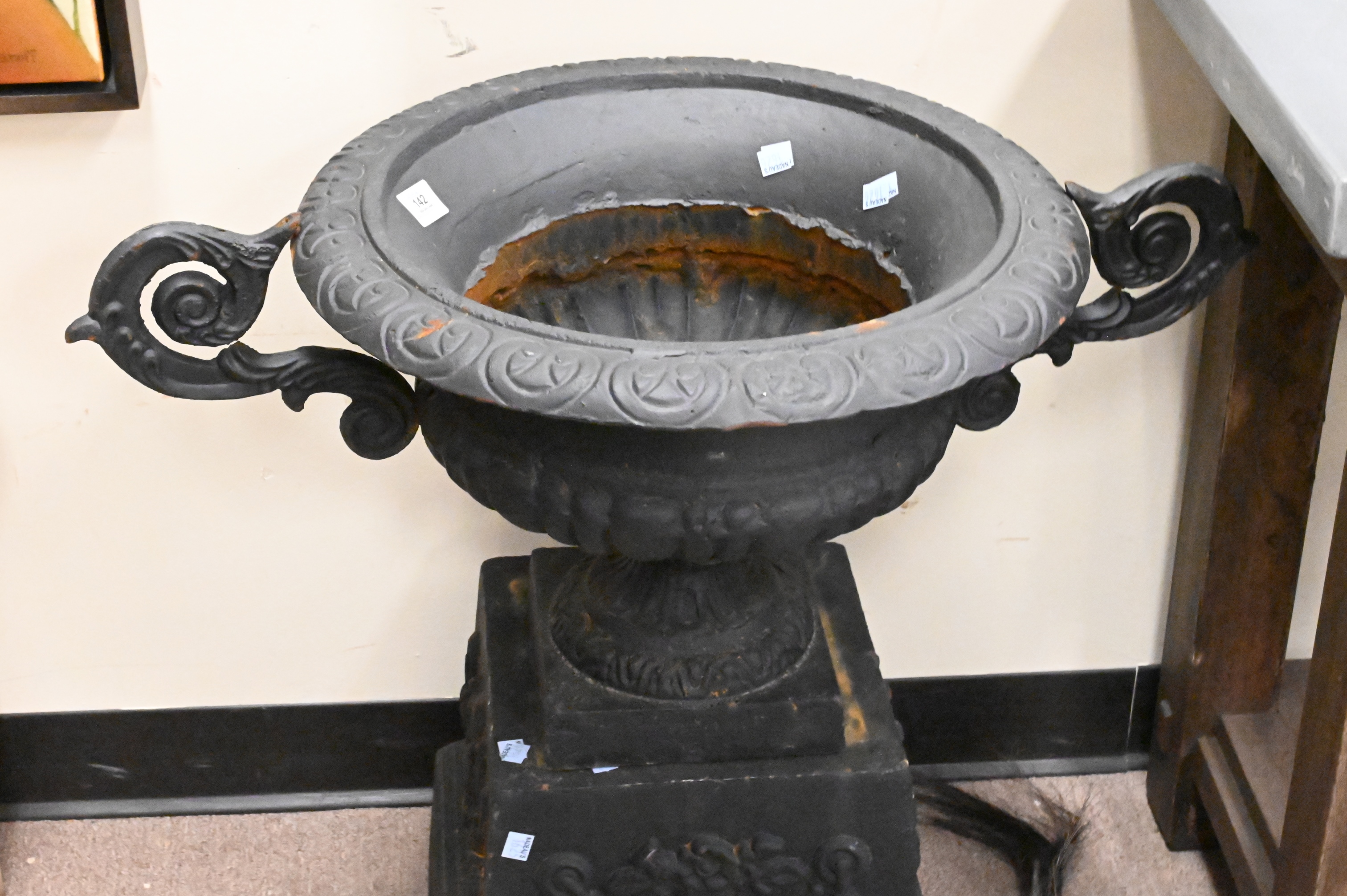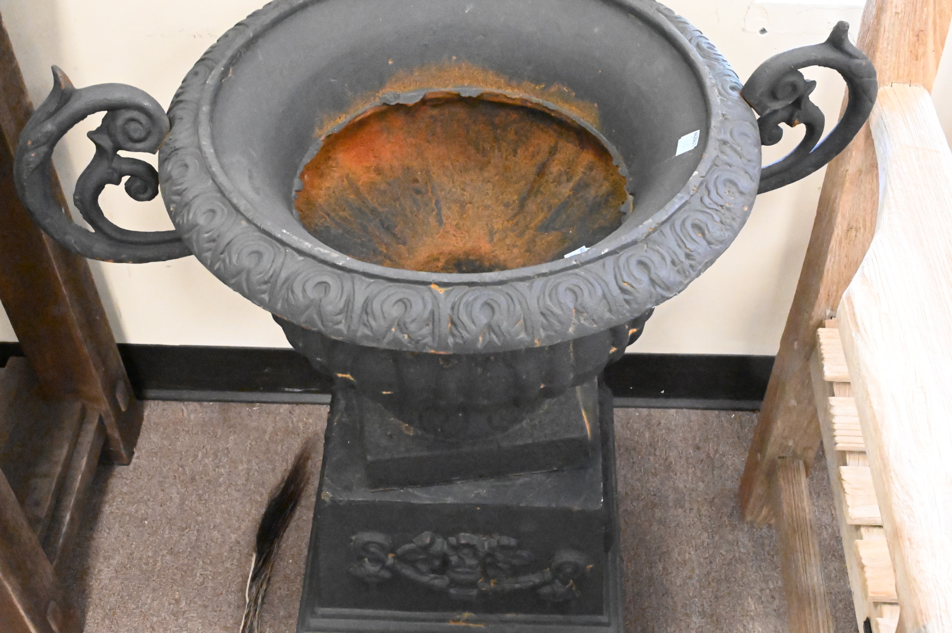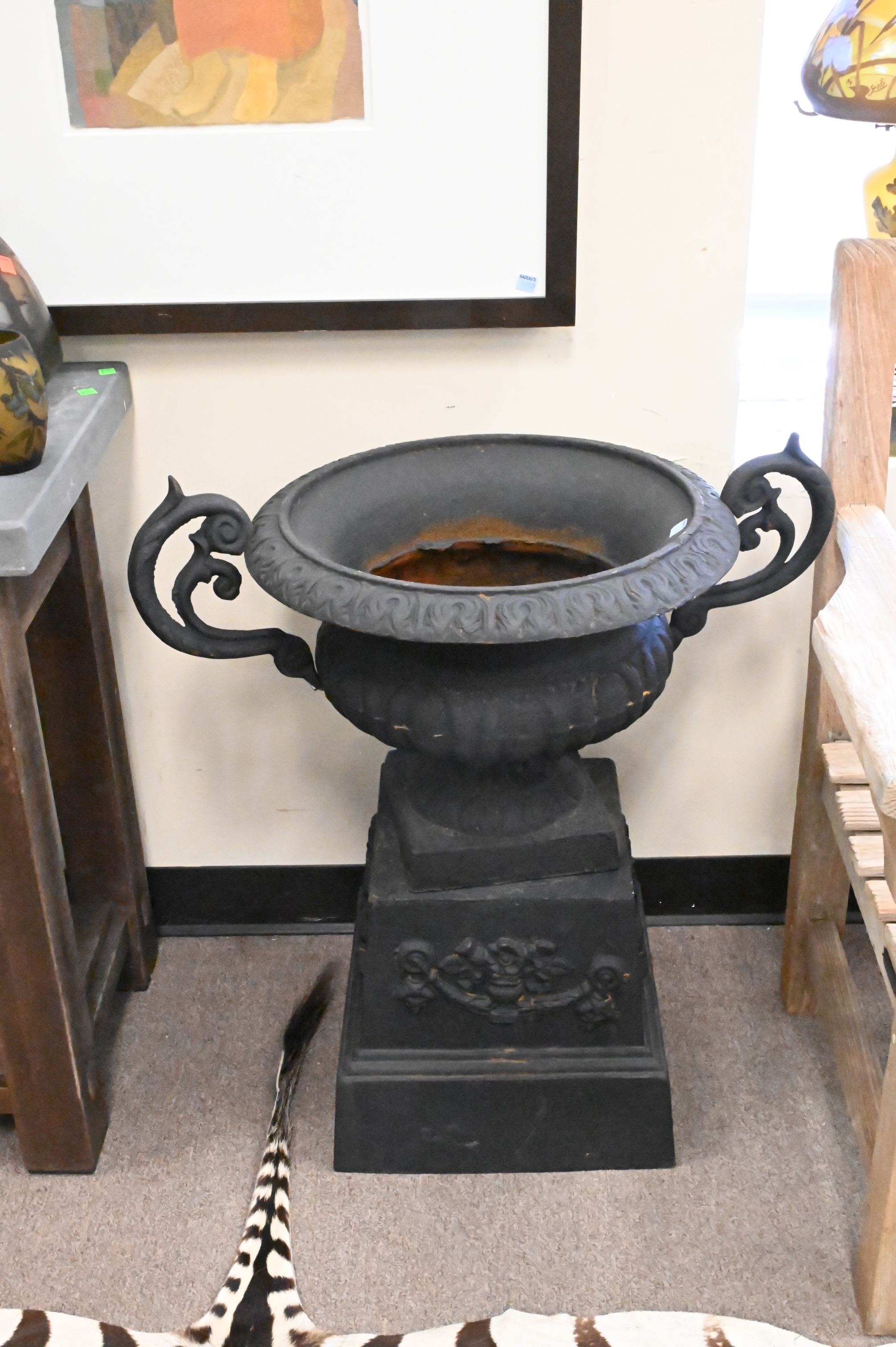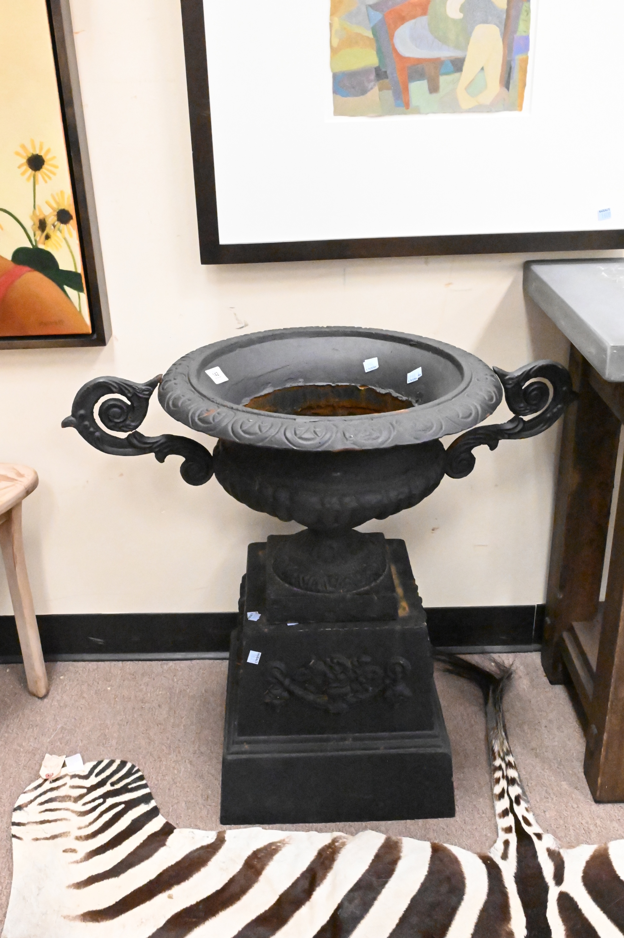 Lot 142: Pair of Two Part Iron Outdoor Urns