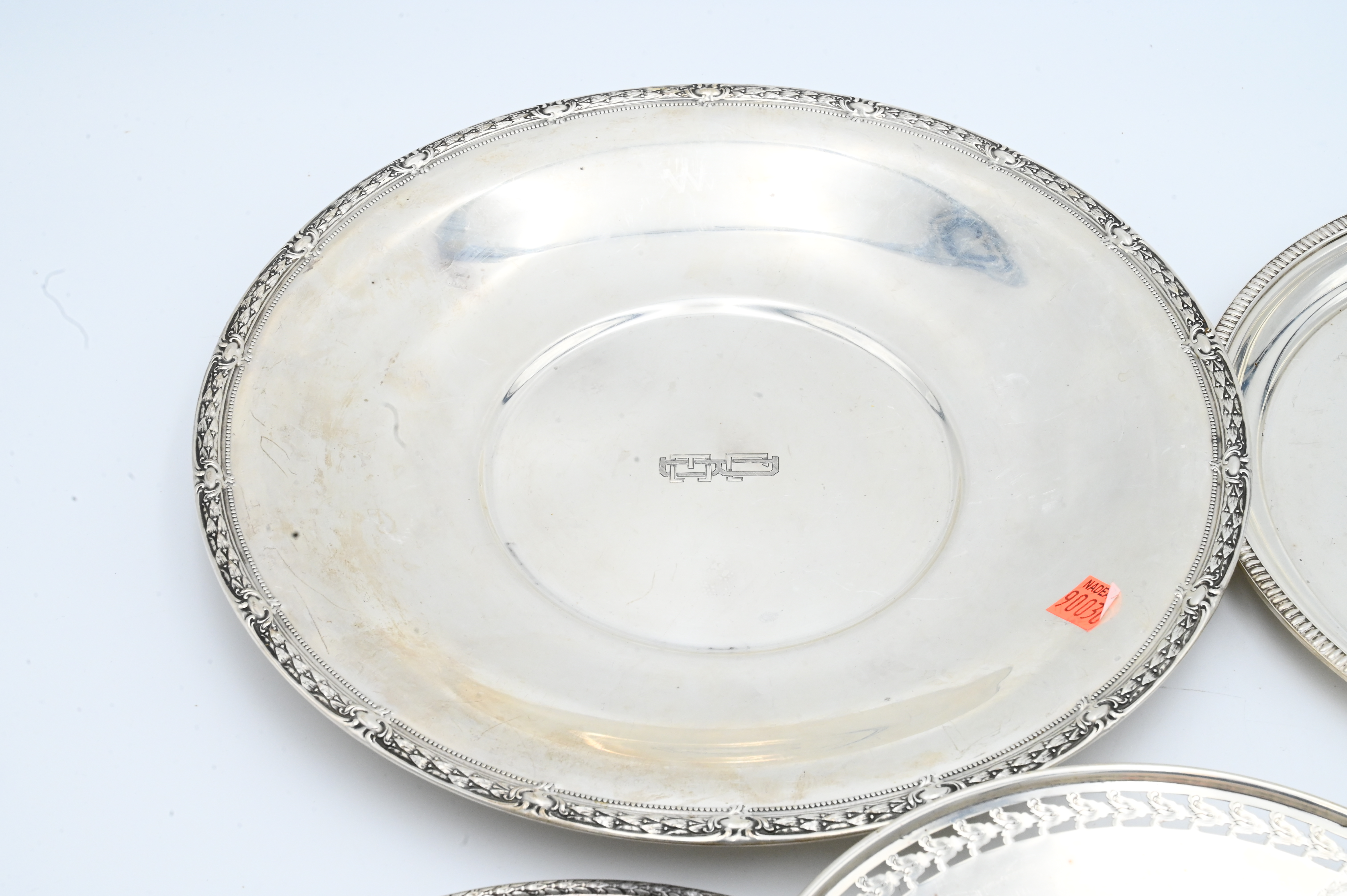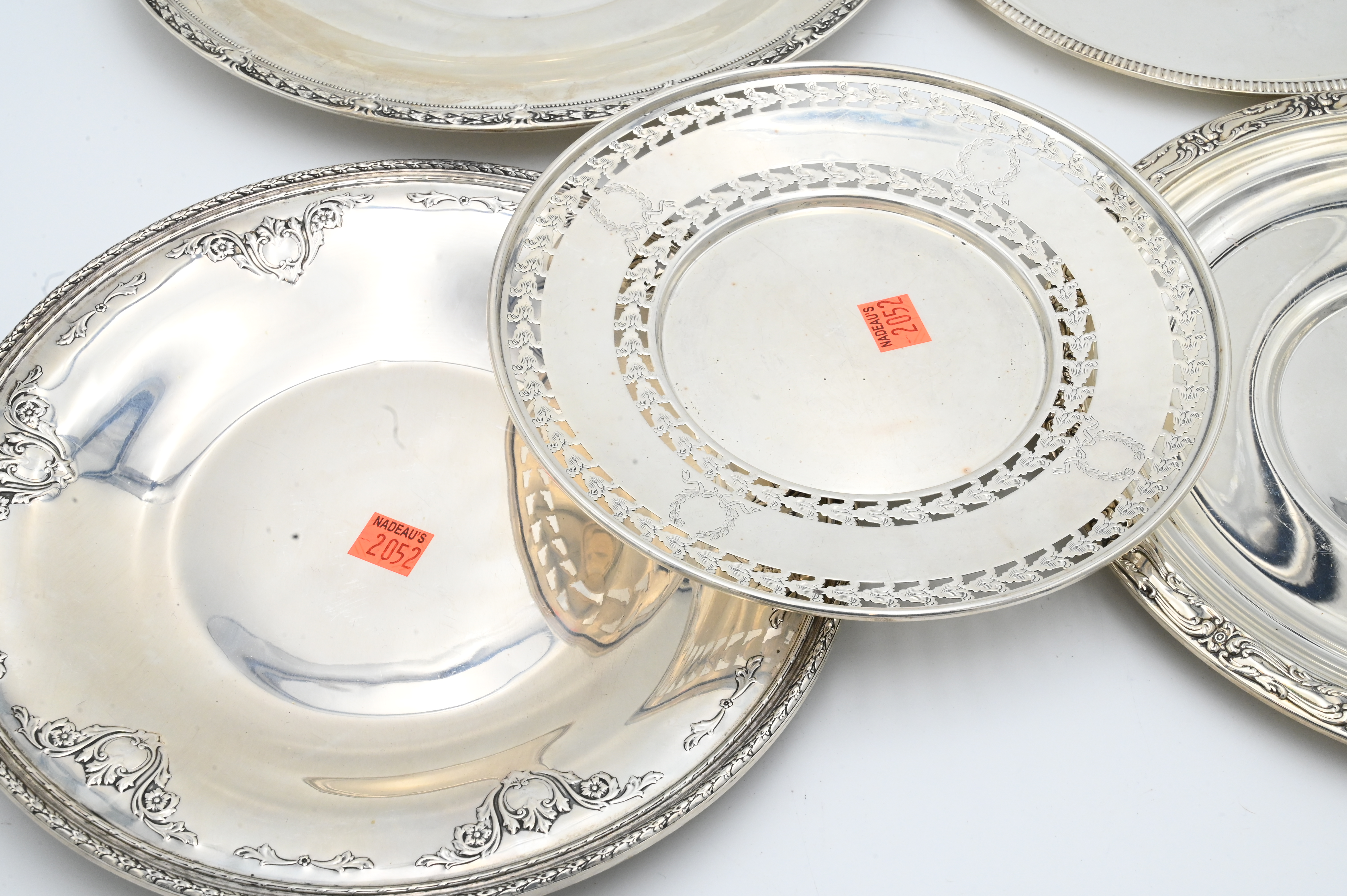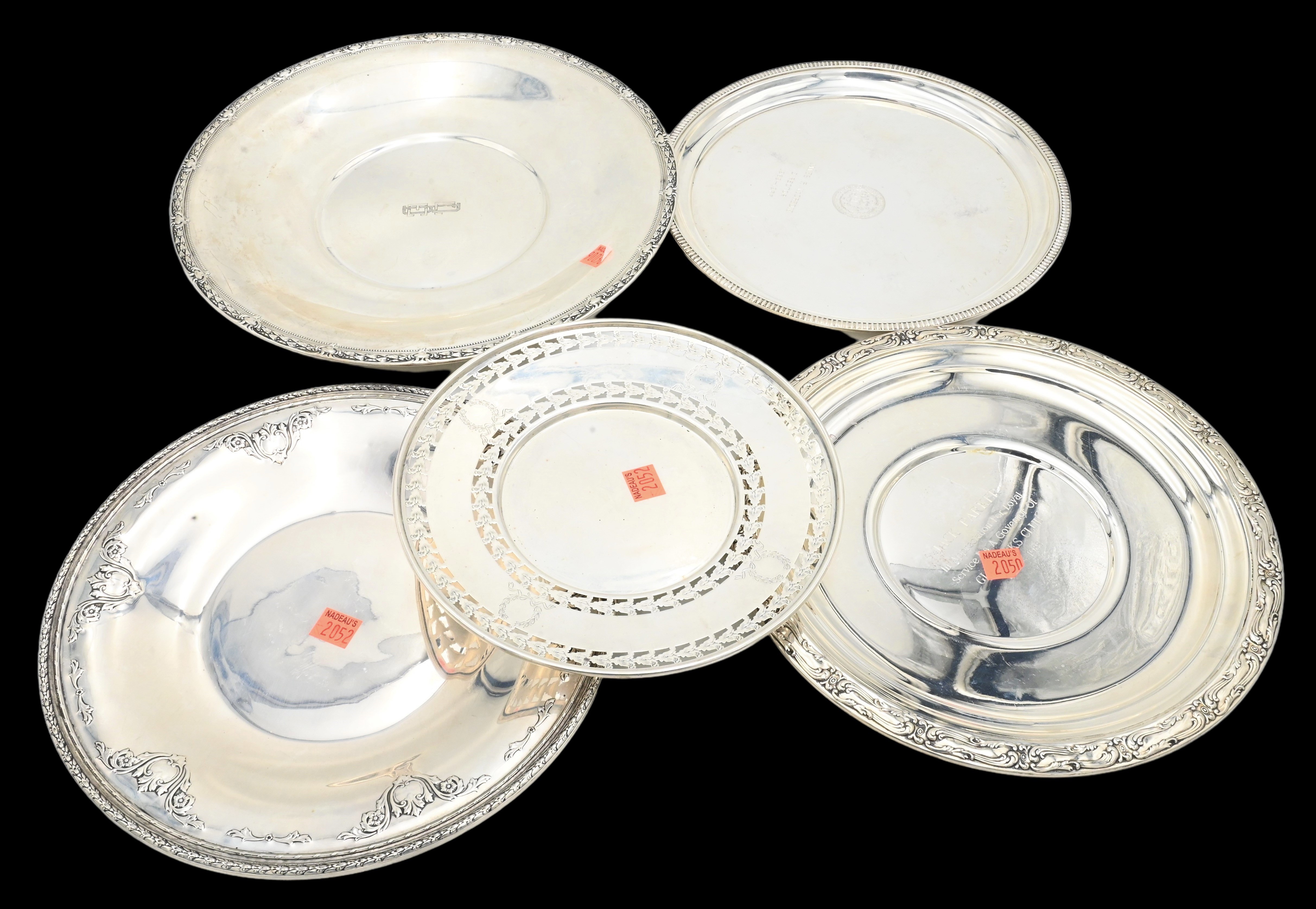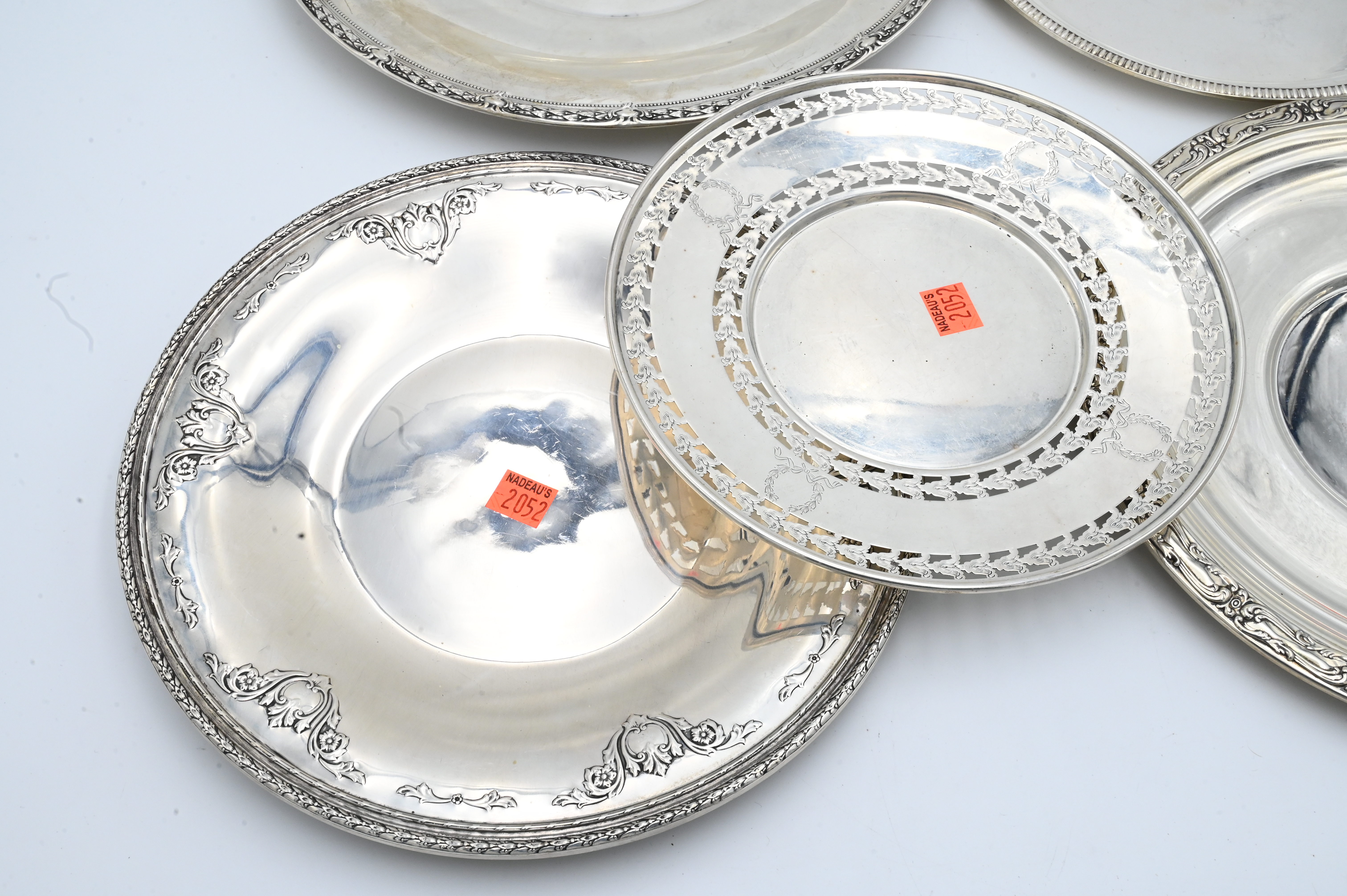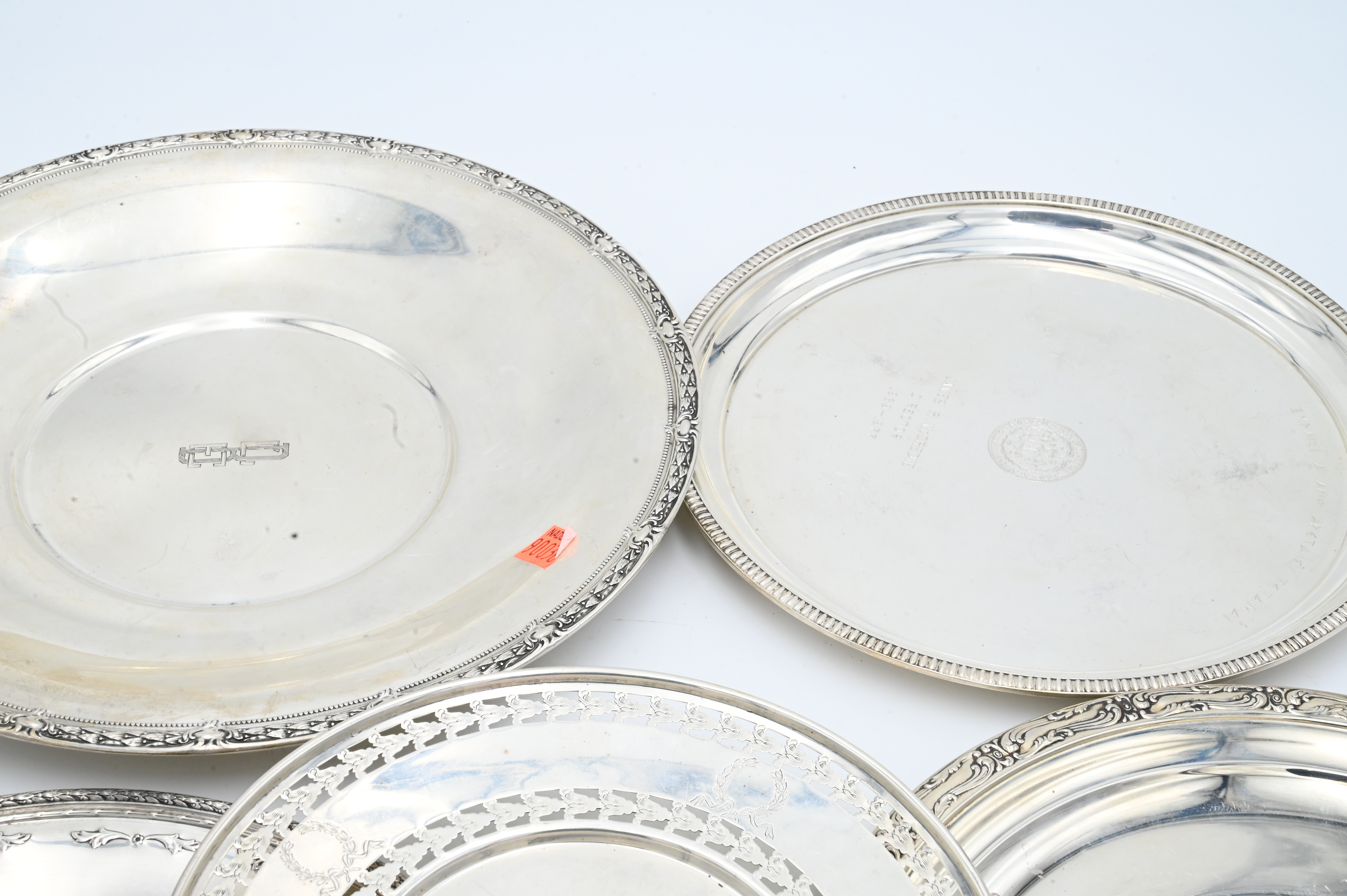 Six Round Sterling Silver Trays, to include Reed & Barton, etc., all having decorative rims, largest 12 inches, 56.9 t.oz.