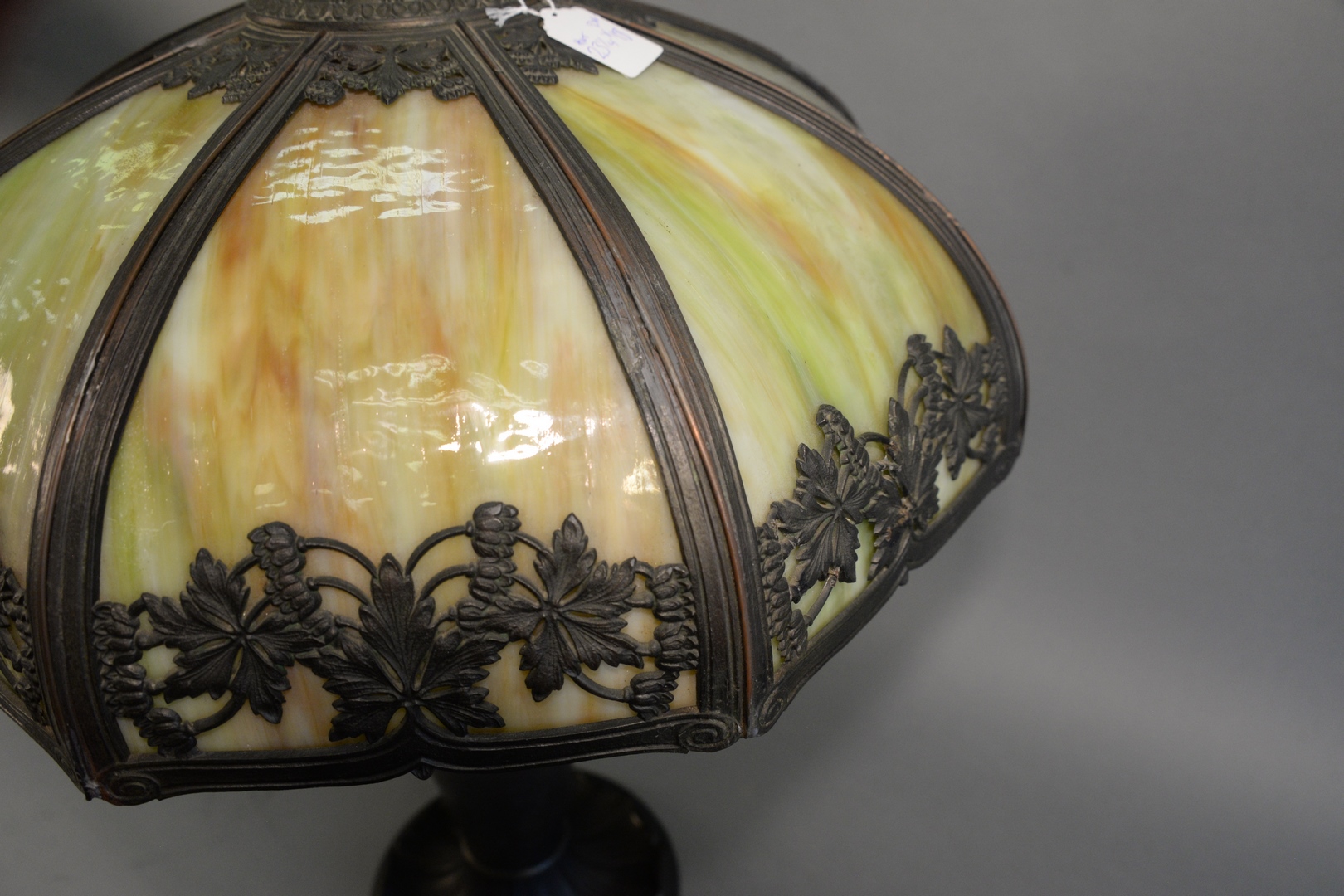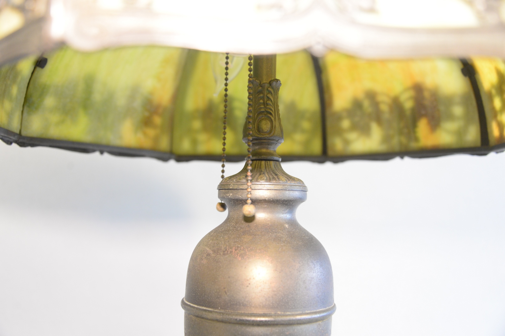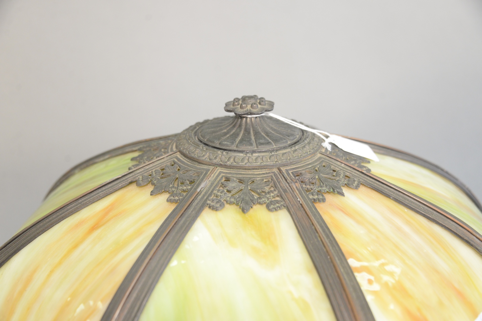 Lot 142: Slag Glass Table Lamp having eight green, glass panels height 23 1/4 inches, diameter 18 inches Provenance: Thirty-five year collect…