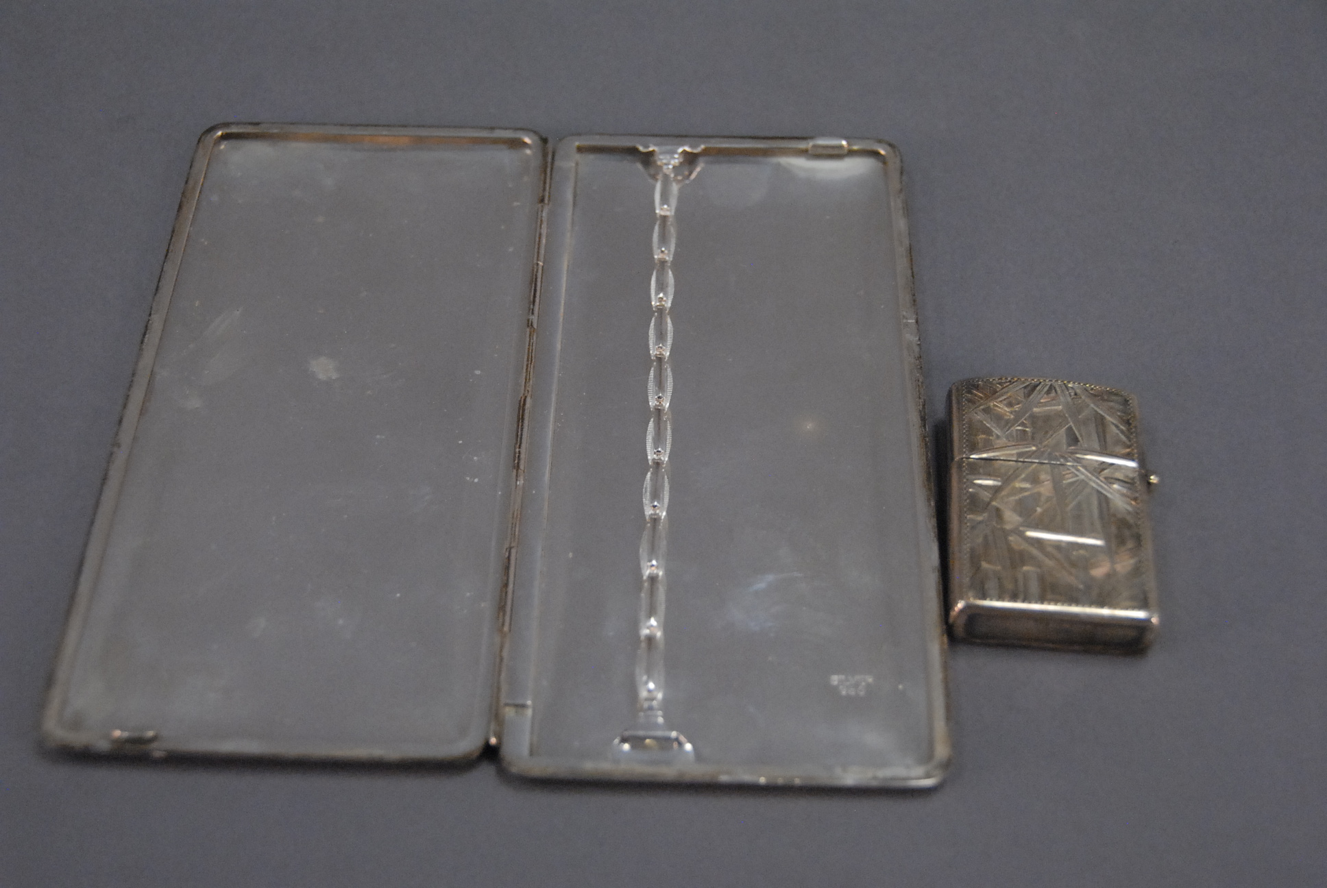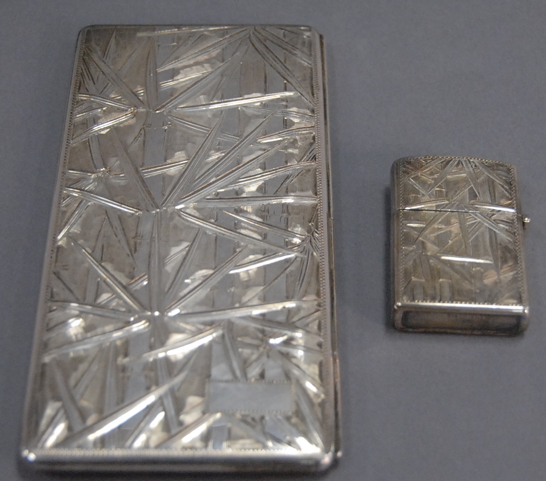 Lot 142: T. Muto 950 silver cigarette case and a lighter case in original fitted box, 7.9 t oz. of weighable silver.