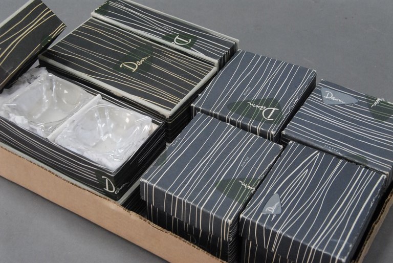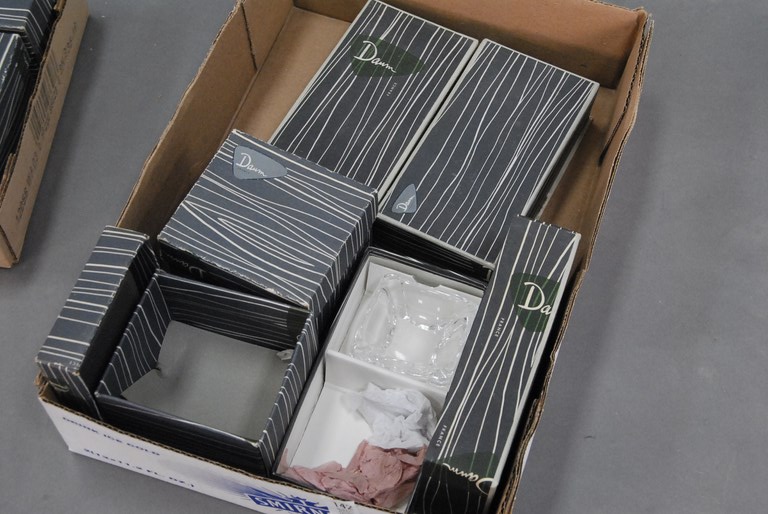 Two boxes of Daum crystal cigarette holders and ashtrays in original boxes.