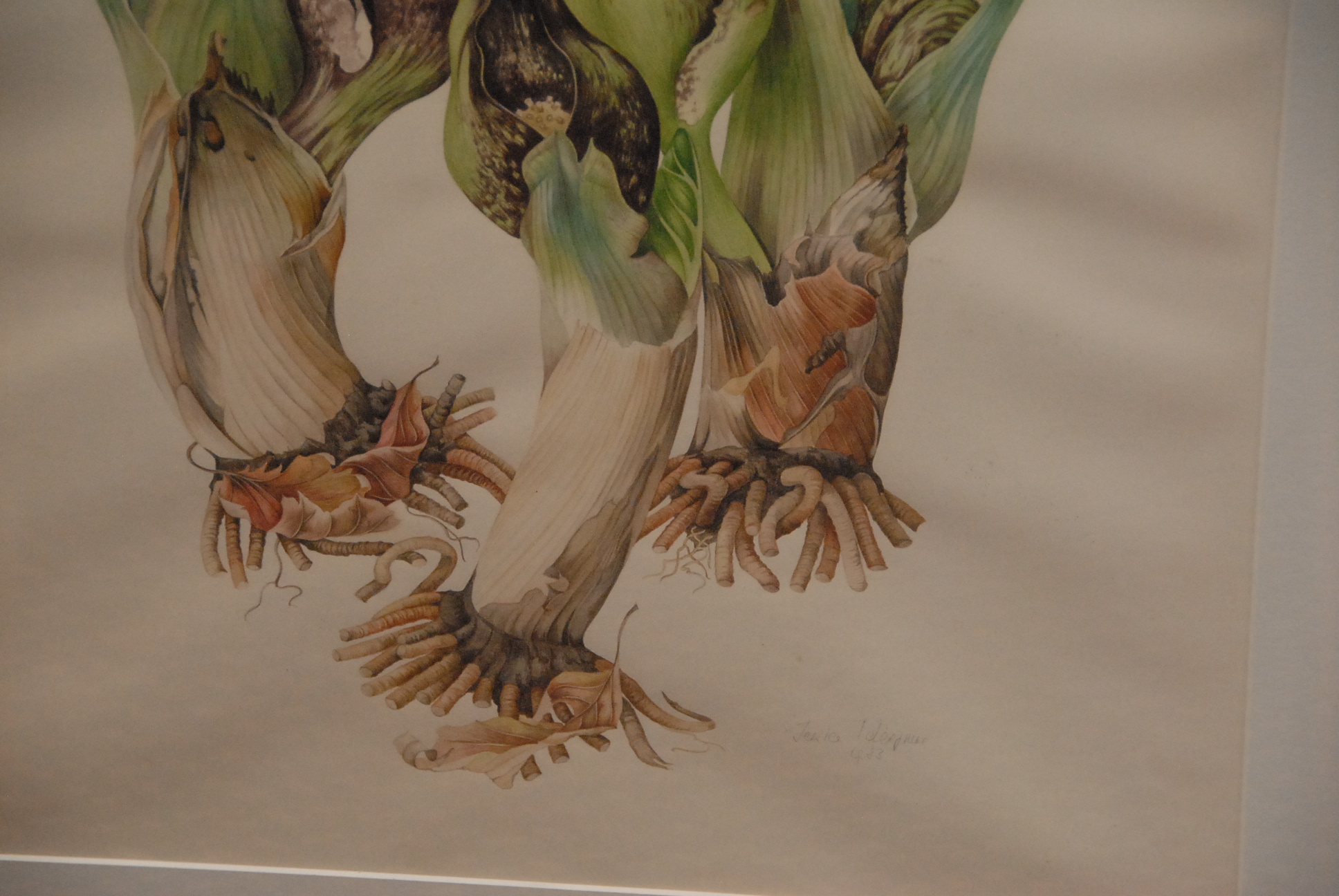 Lot 142A: Jessica Tcherepnine 1938 SKUNK CABBAGE Symplocarpus Foetidus watercolor signed bottom right Jessica Tcherepnine 1982 She…