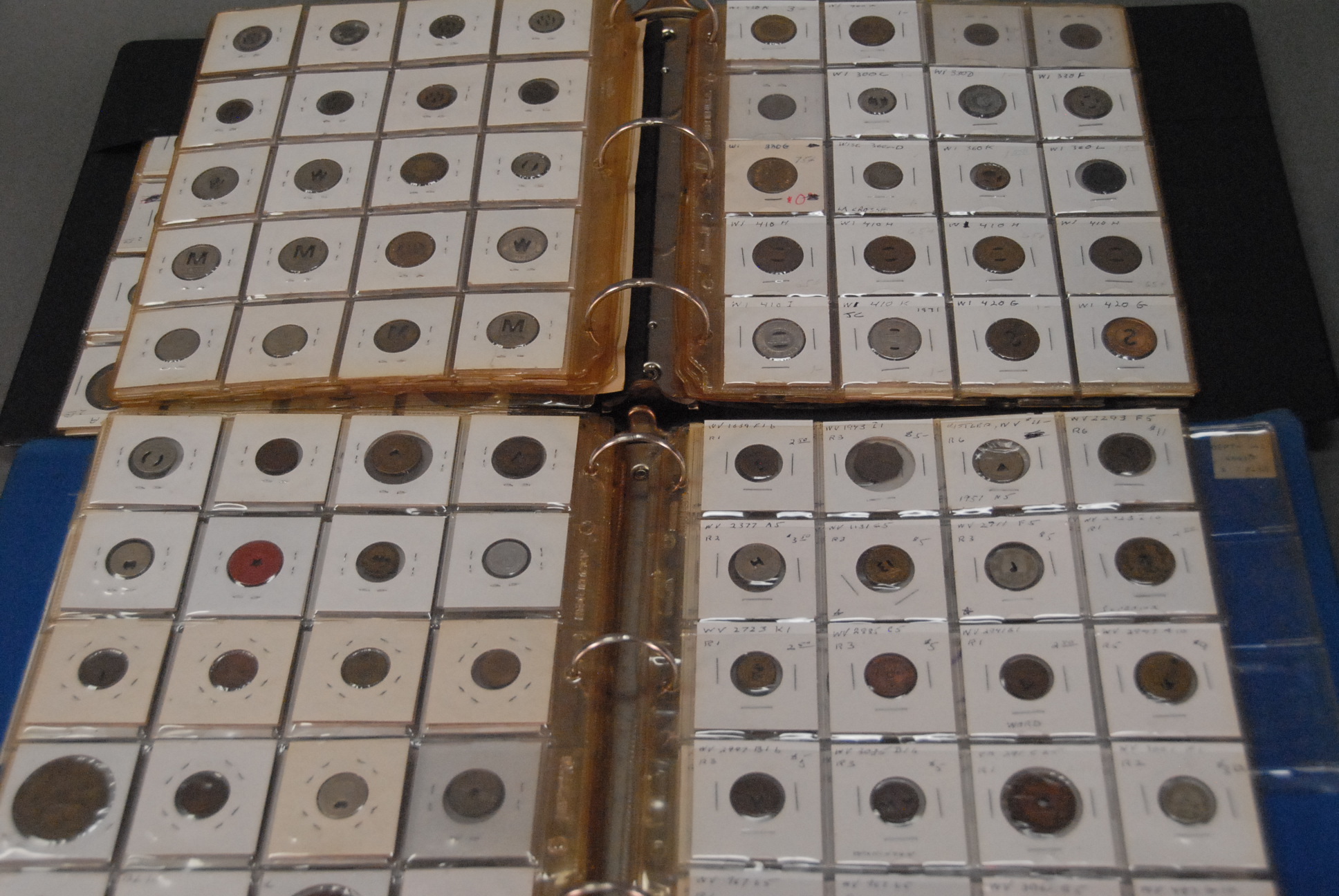 Two large binders full of tokens and other transportation tokens to include states of West Virginia, Kentucky, Tennessee, Virginia, and Indiana.