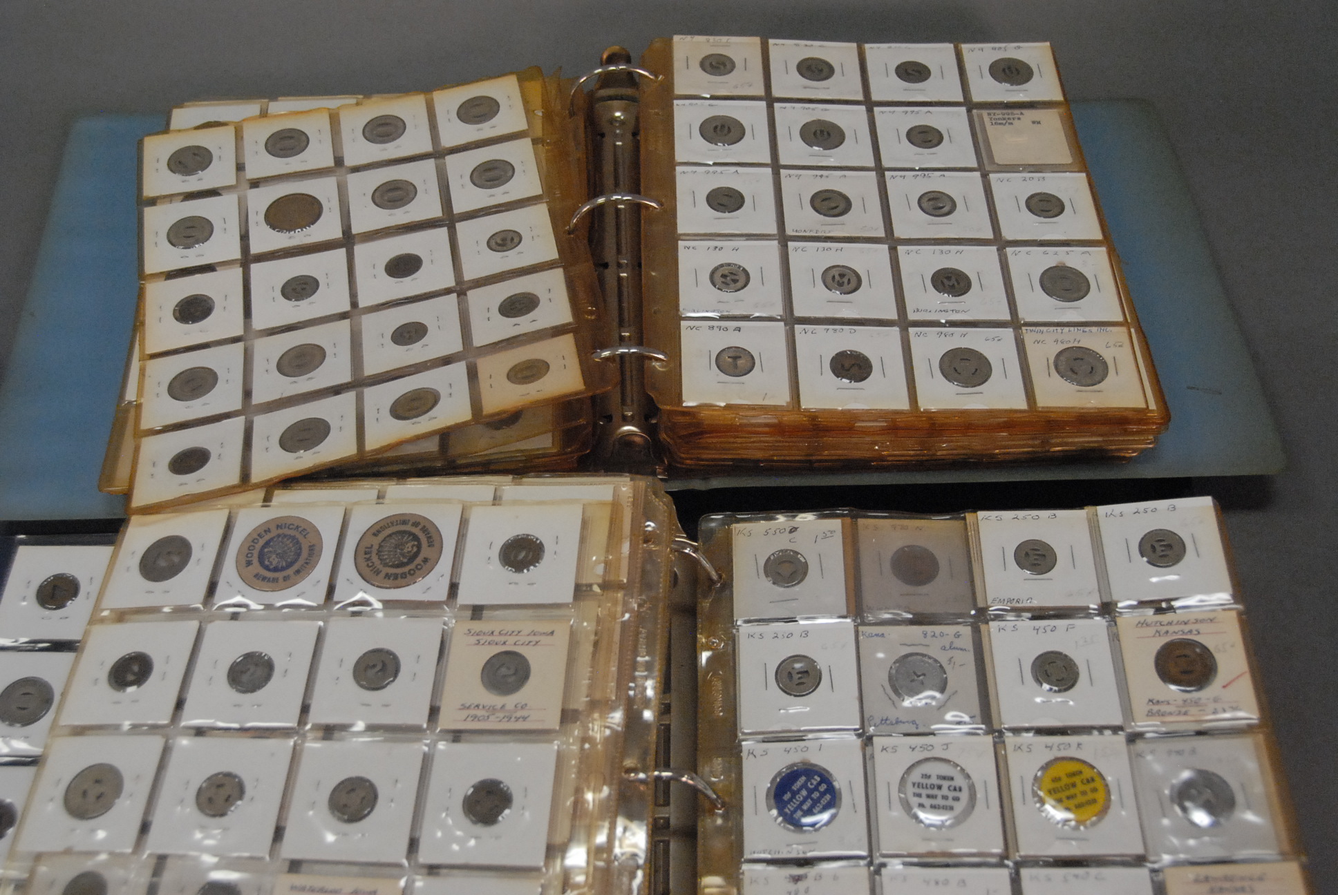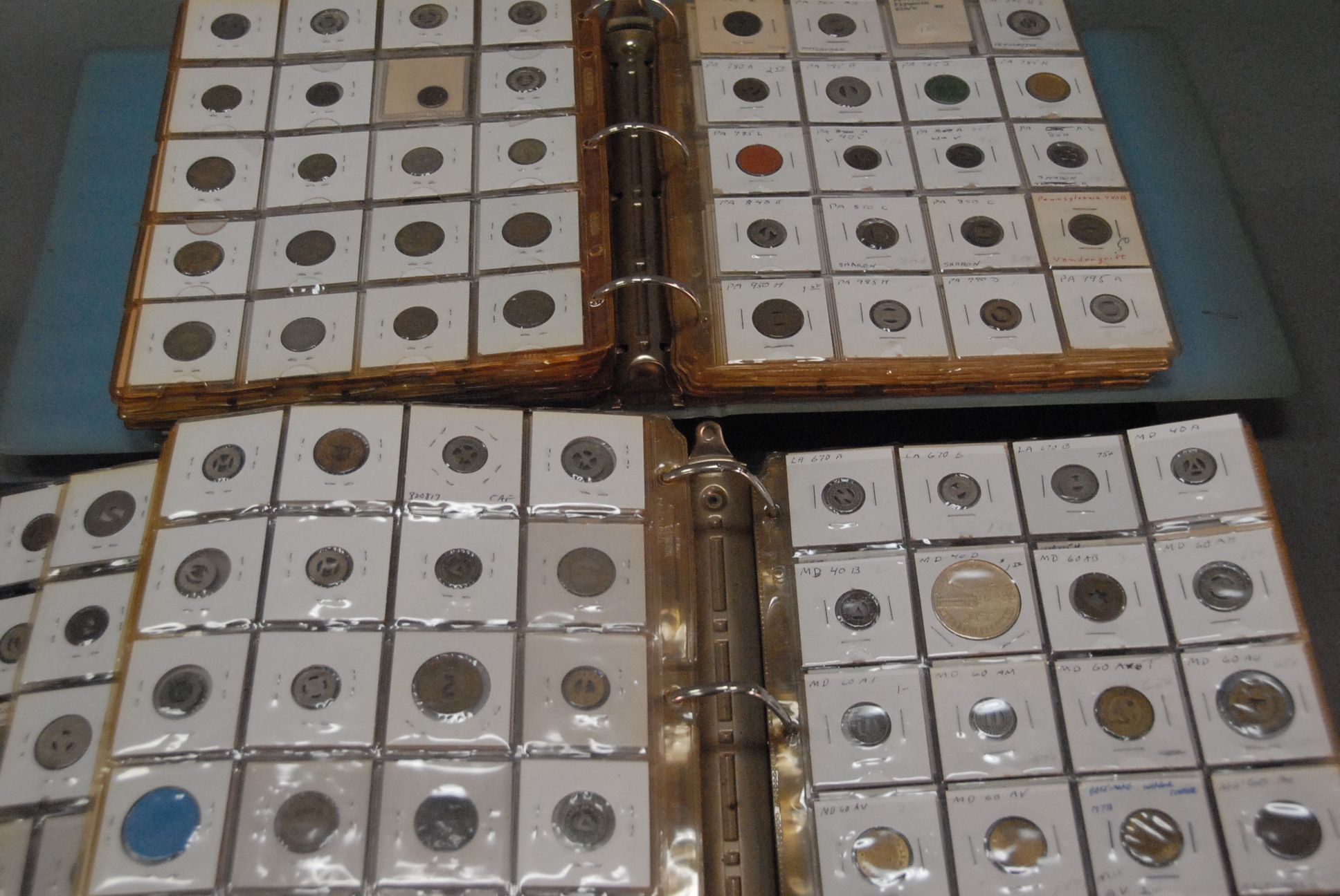 Lot 142C: Two large binders full of tokens and other transportation tokens from states between Minnesota all states through to West Virginia a…