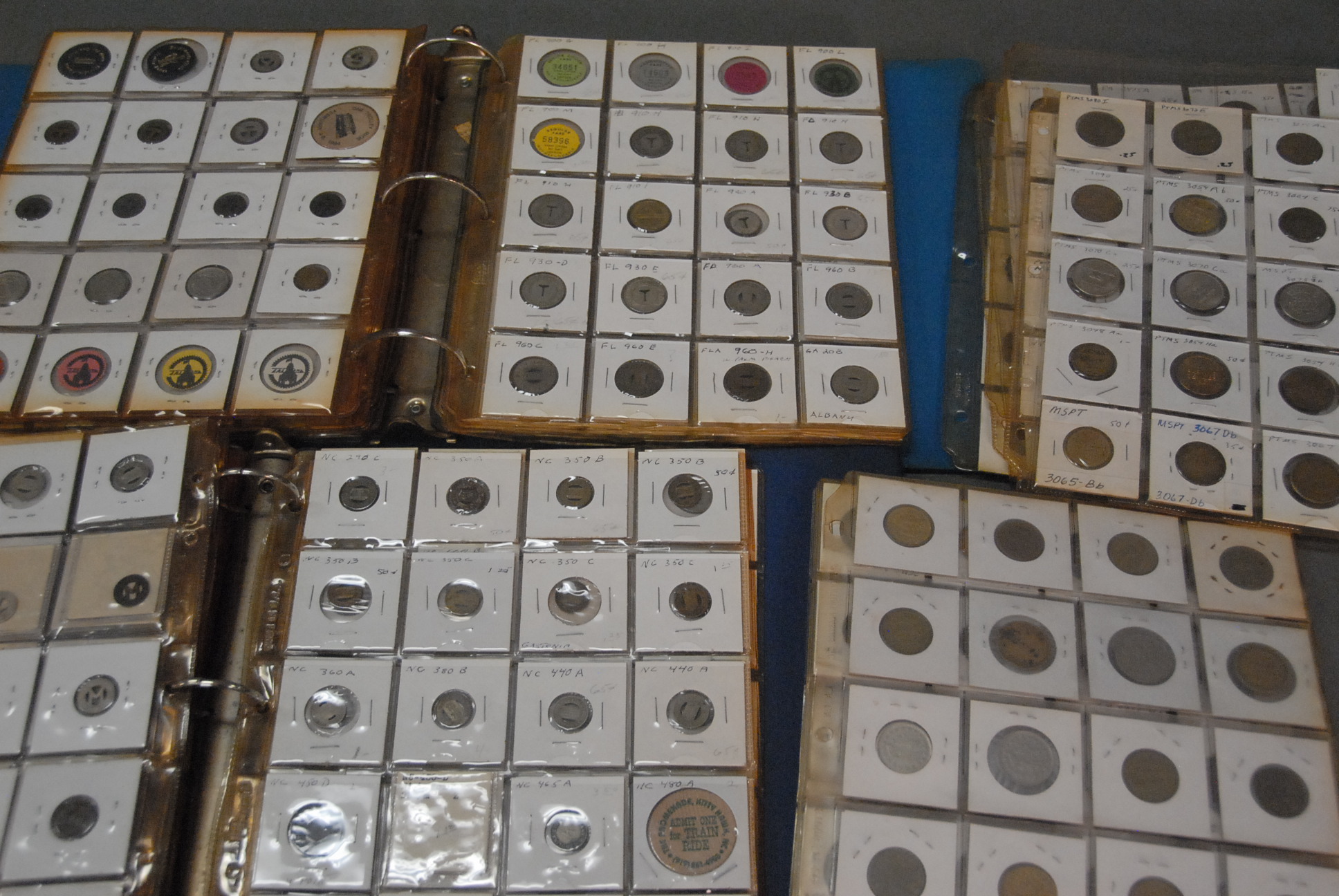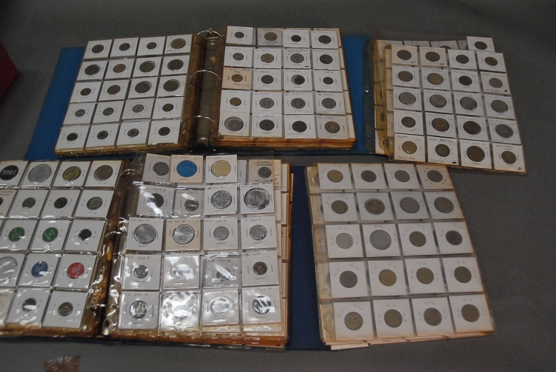 Two large binders full of tokens and other transportation tokens from Minnosota to Oklahoma and all the states in between.