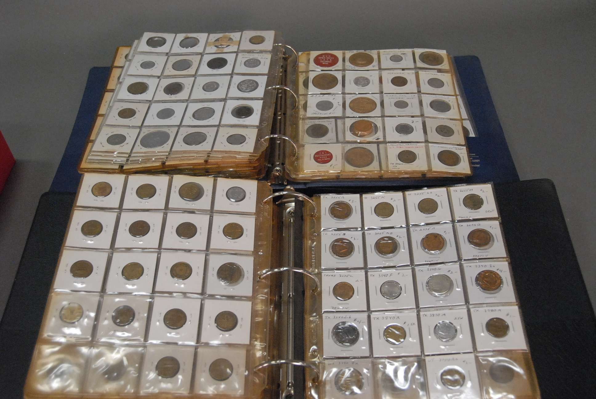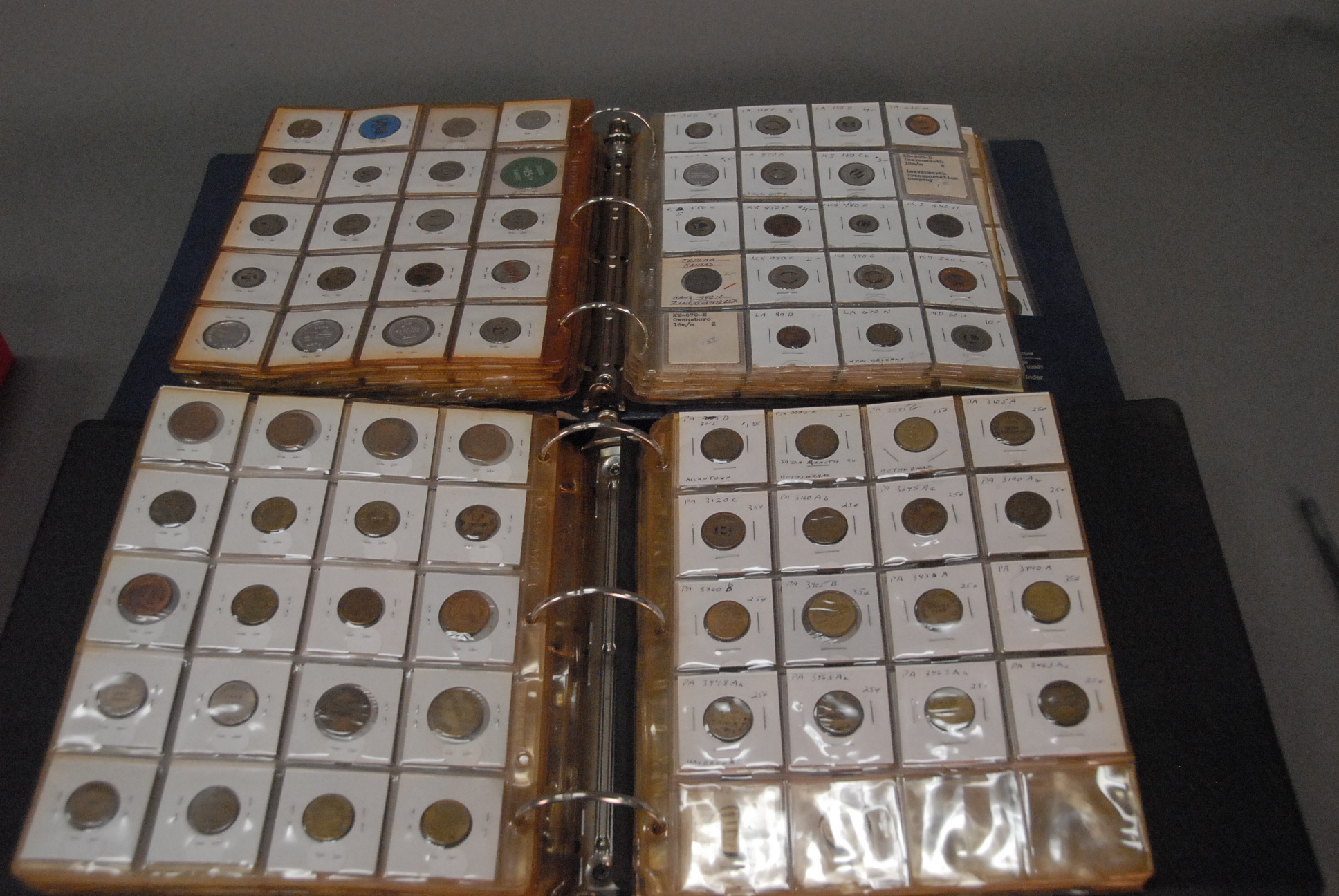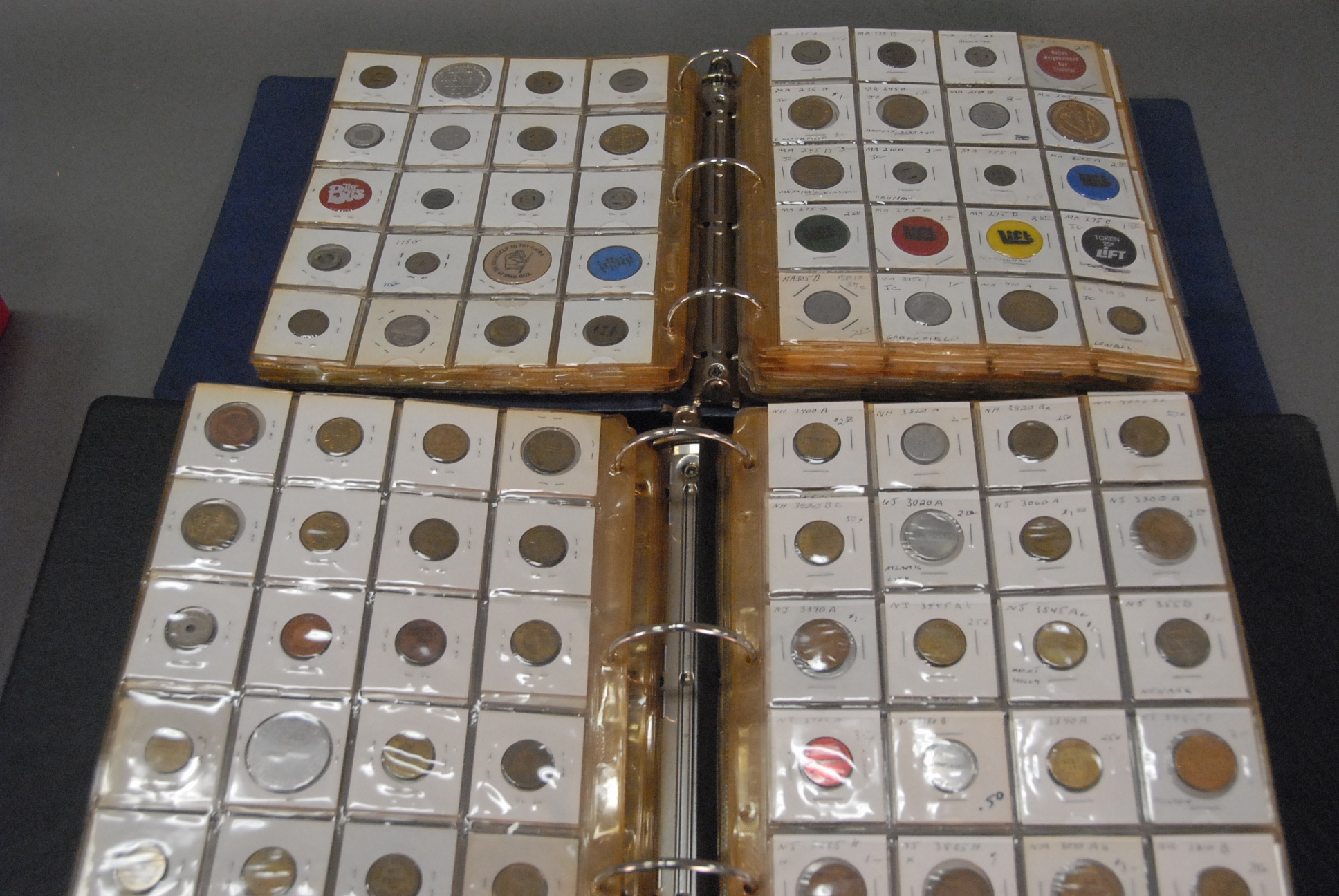 Lot 142G: Two large binders of tokens and other transportation tokens from 35 states including Massachusettes, Texas, Connecticut, Arizona, etc.