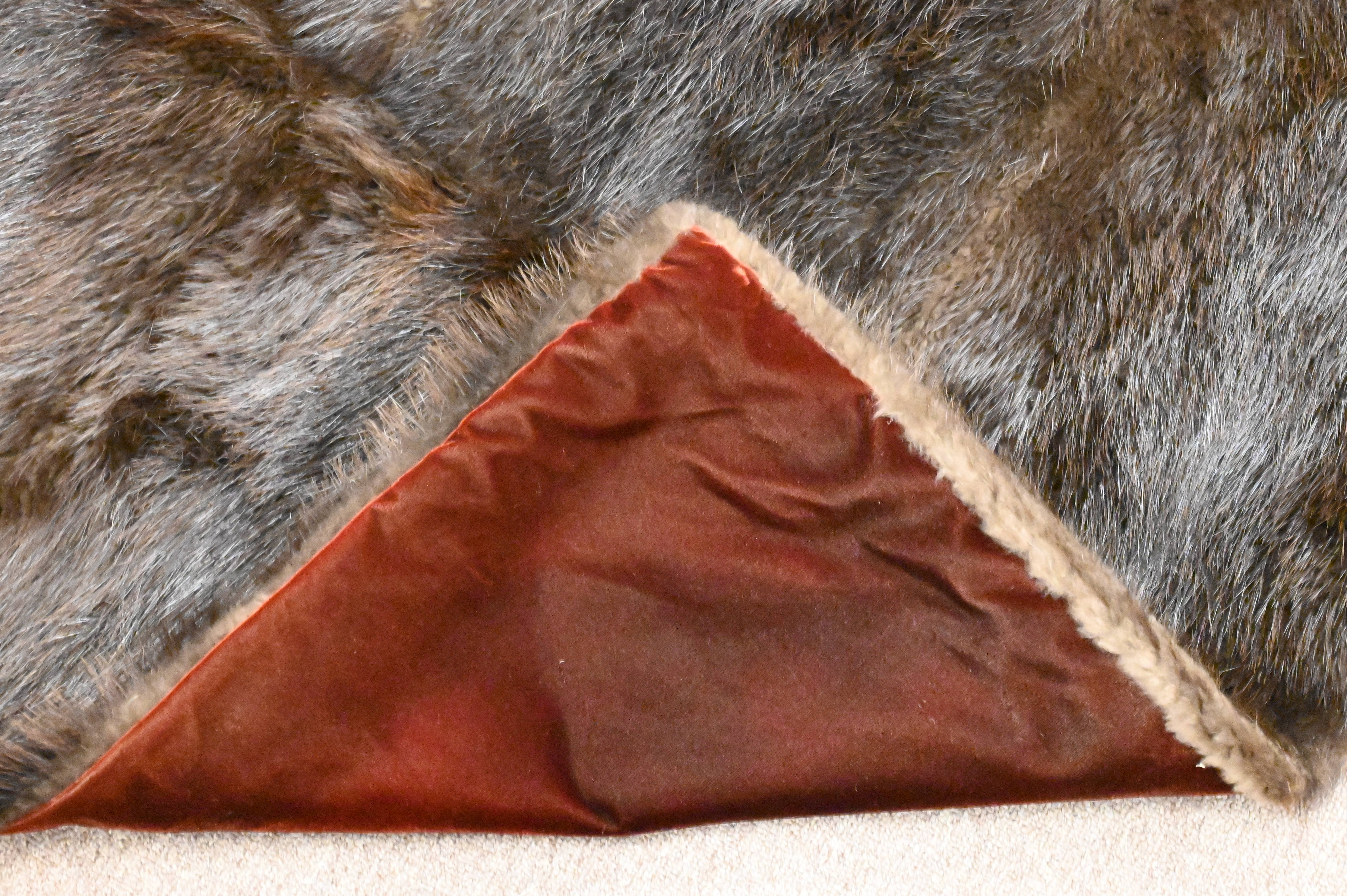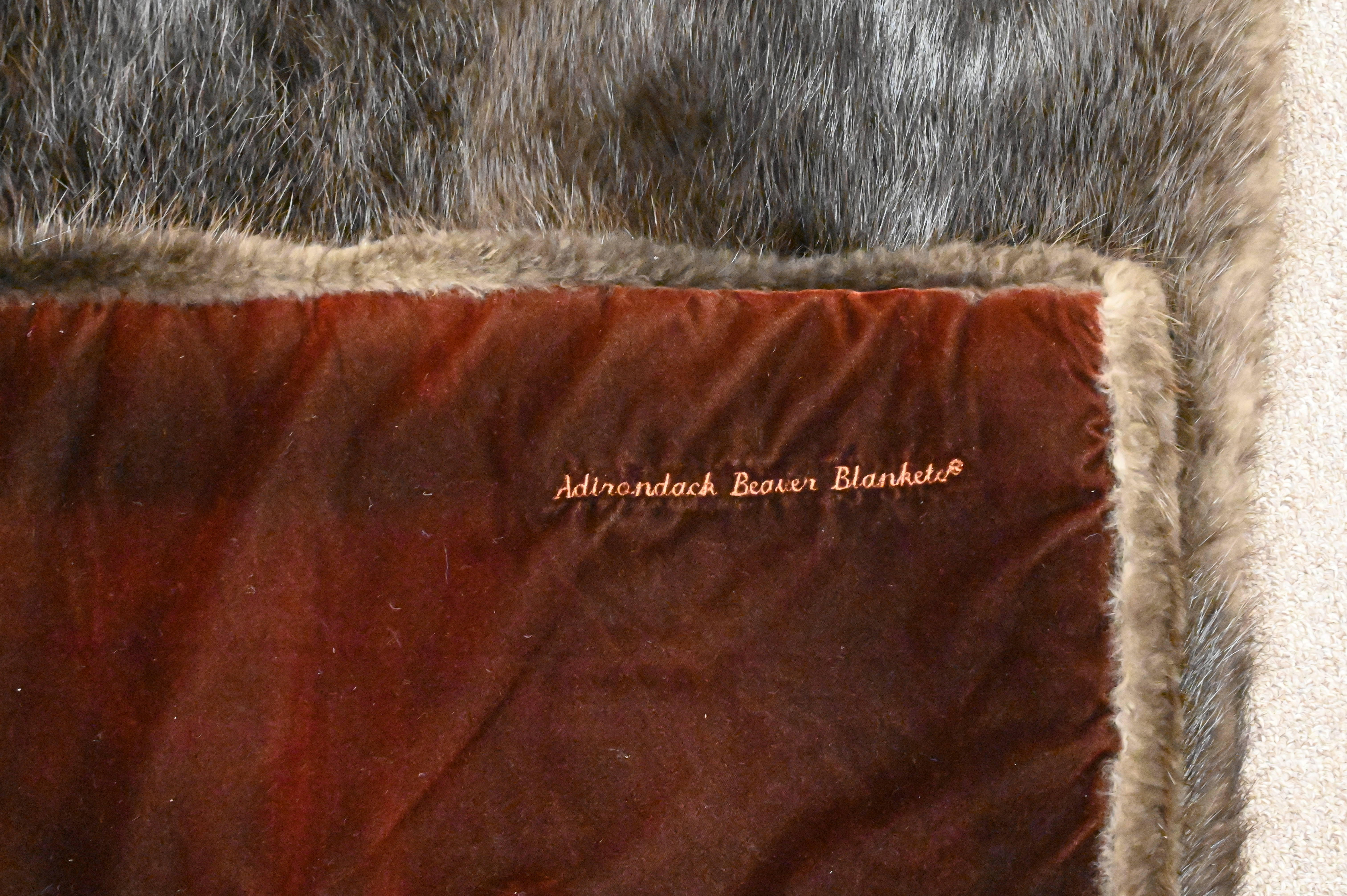 Adirondack Beaver Fur Throw Blanket, having sun in label, 2’11” X 5’5″