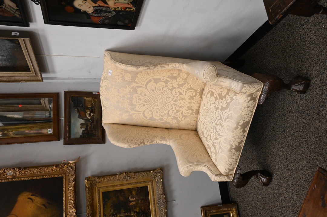 Lot 143: Chippendale Style Upholstered Wing Chair