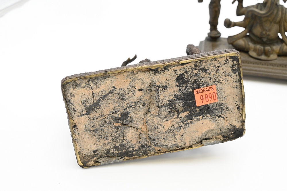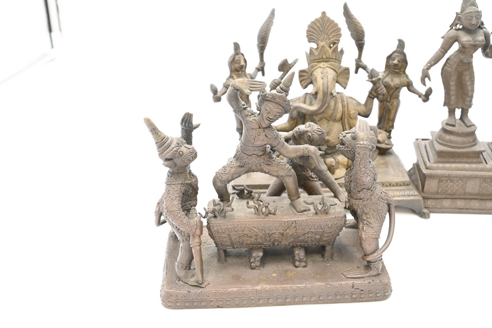 Lot 143: Four Piece Bronze Lot to include Hindu gods on pedestals including Ganesh, Vishnu and several others each form having three figures