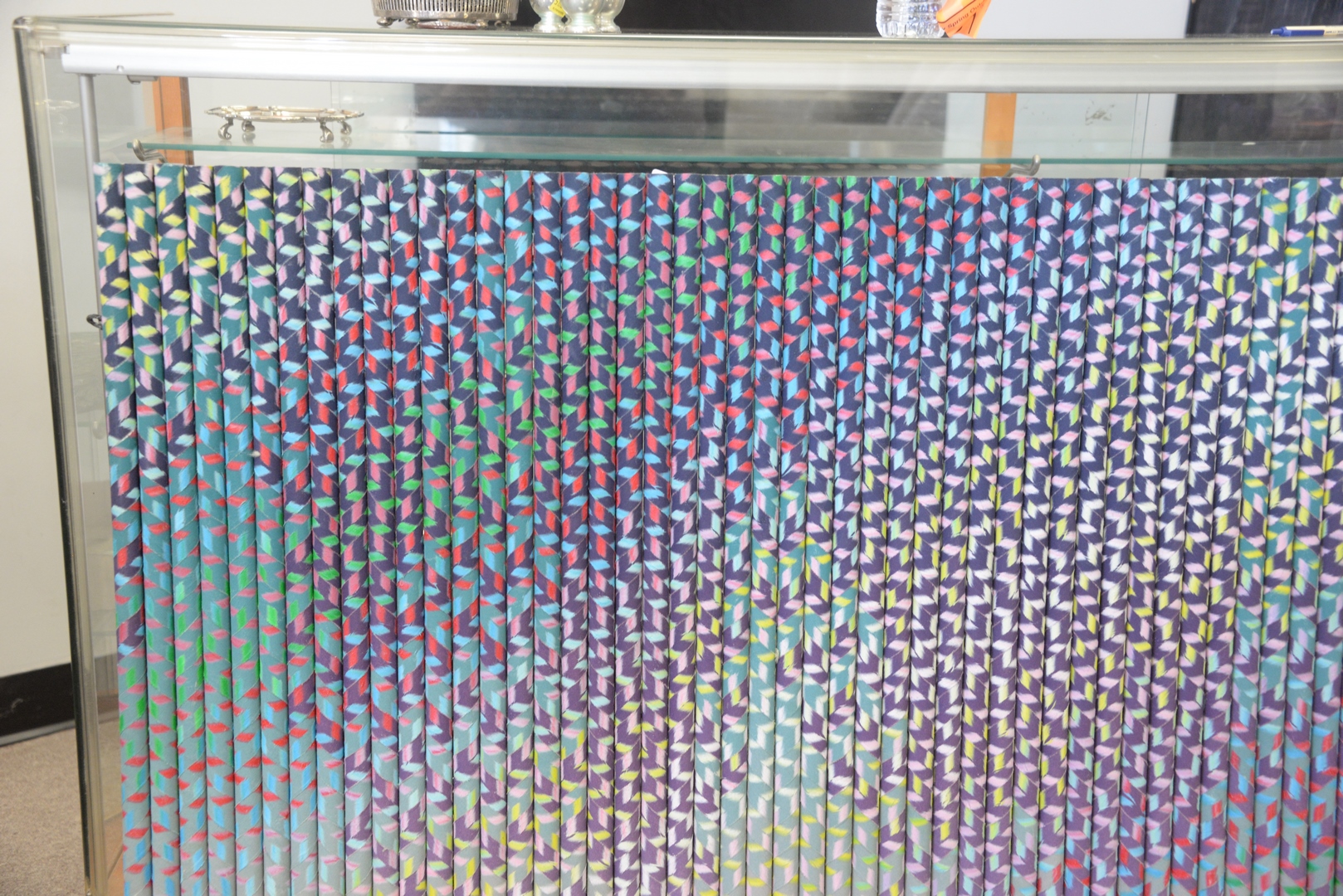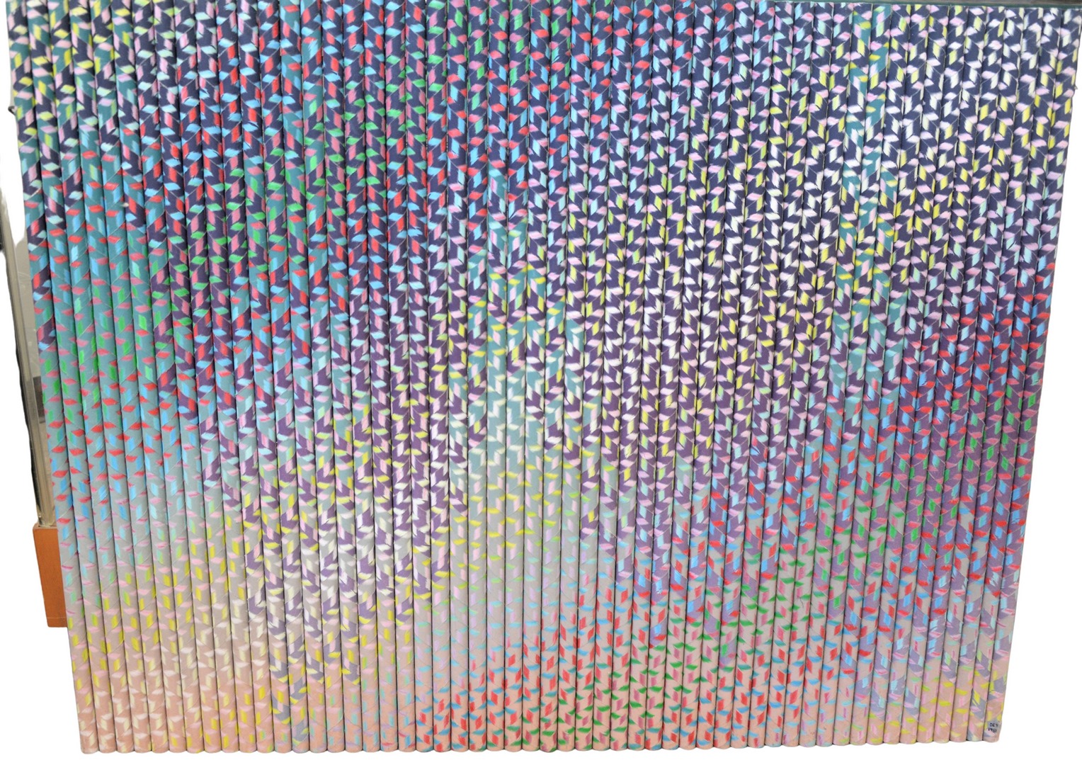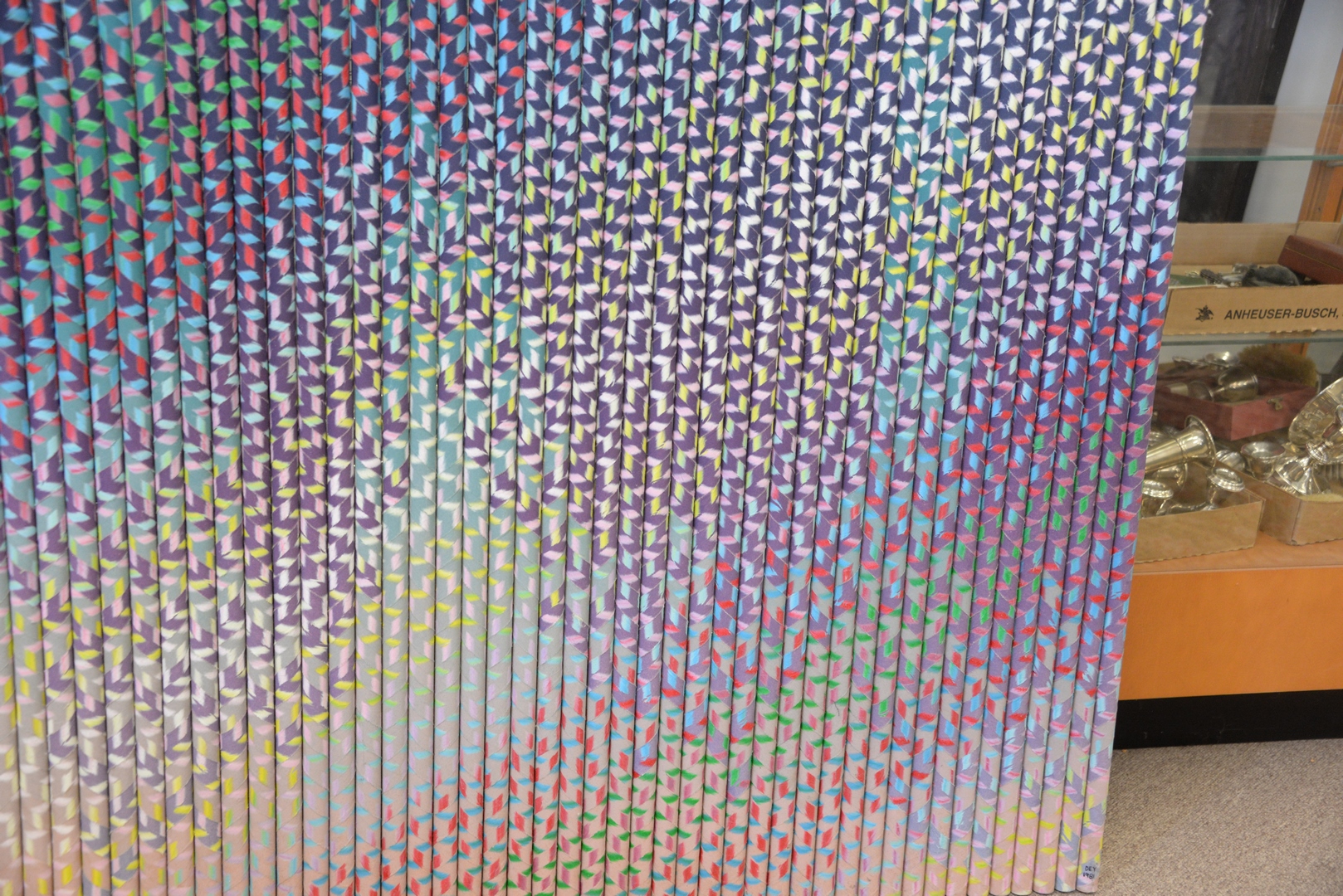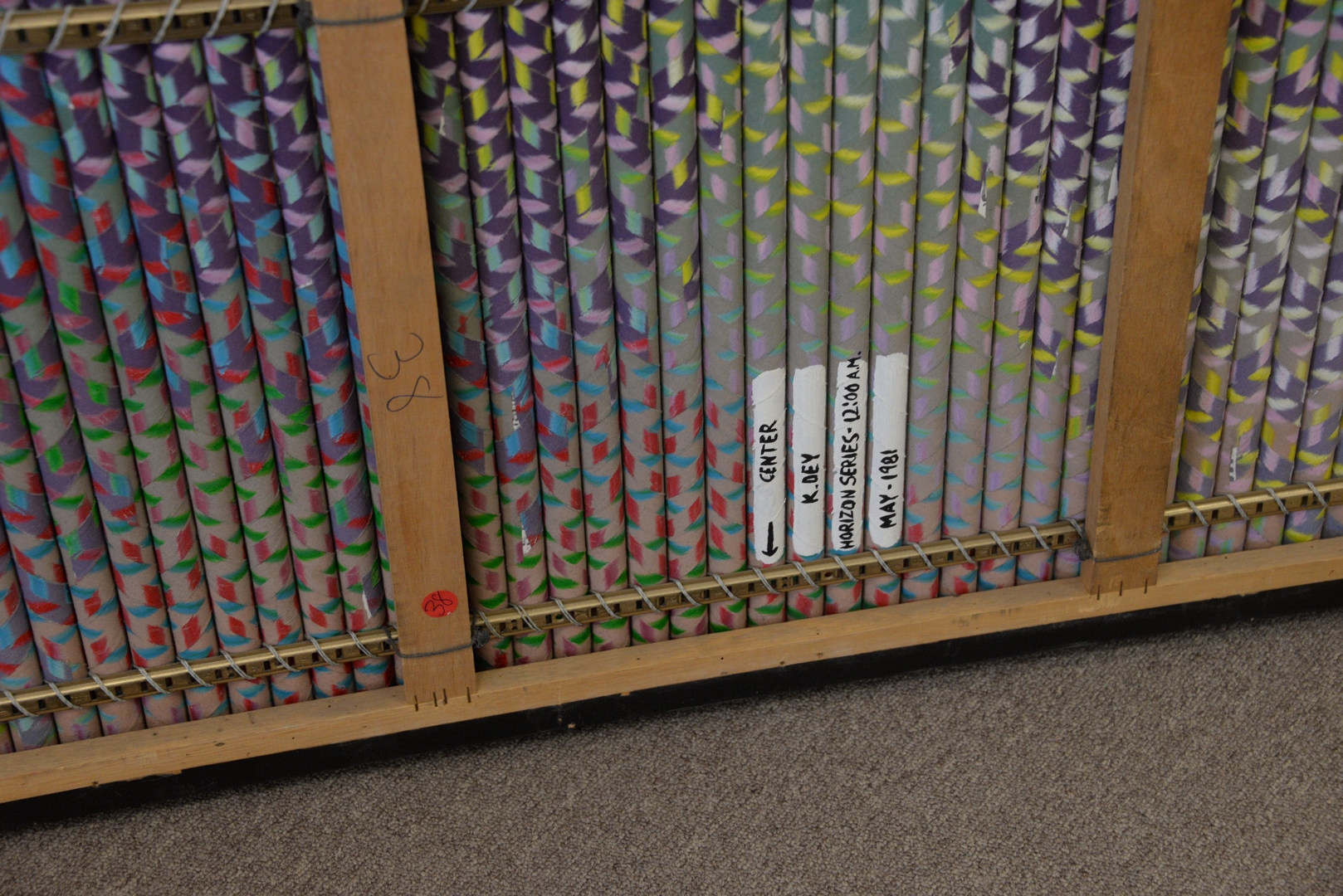Kris Dey (American, b. 1949), Horizon Series: 12 AM Midnight, 1981, polychrome fabric on dowels; signed and dated lower right “Dey 81″, titled and inscribed on the reverse, overall: 36″ x 48”.