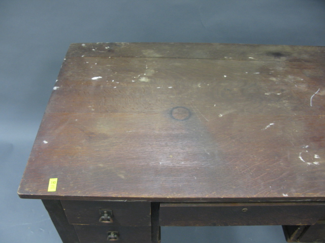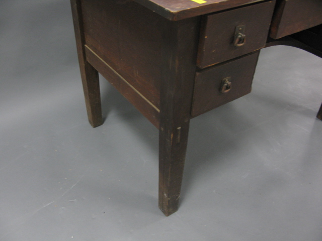 L & J. G. Stickley oak desk with center drawer flanked by 2 side drawers one piece of hardware off but we have it here.
