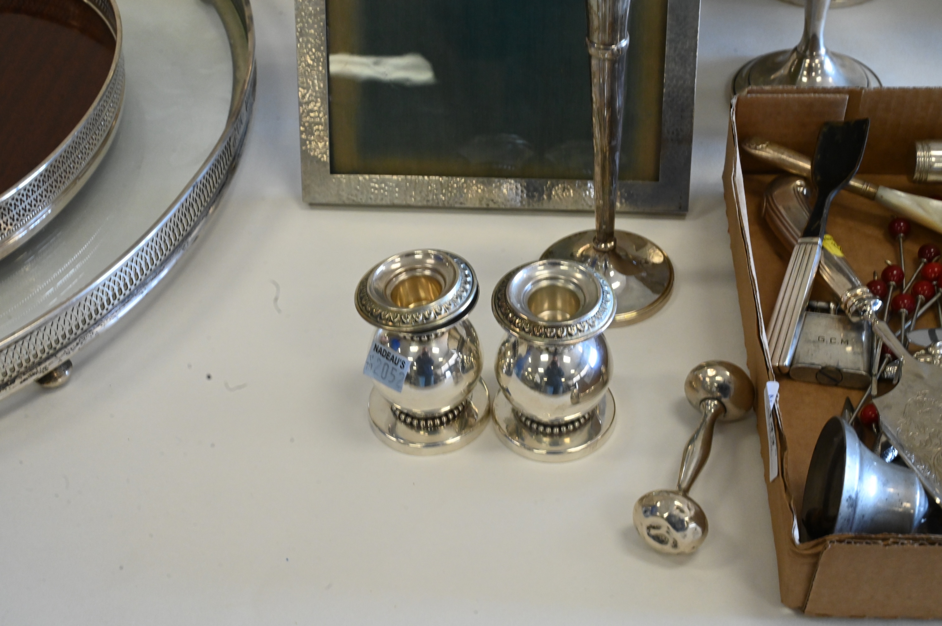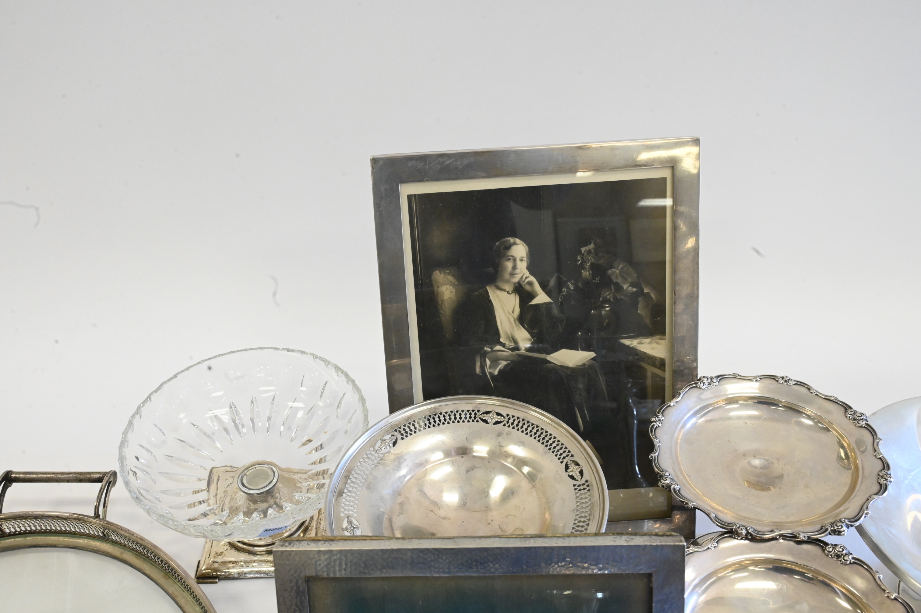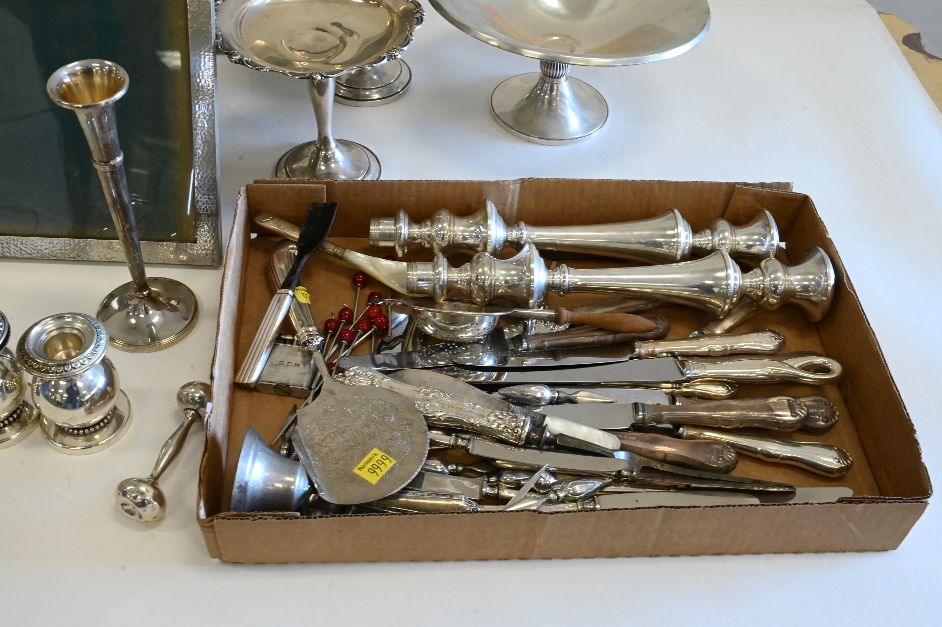 Large Lot of Weighted Sterling Silver, to include two picture frames, oval trays, compotes, along with various flatware, etc.