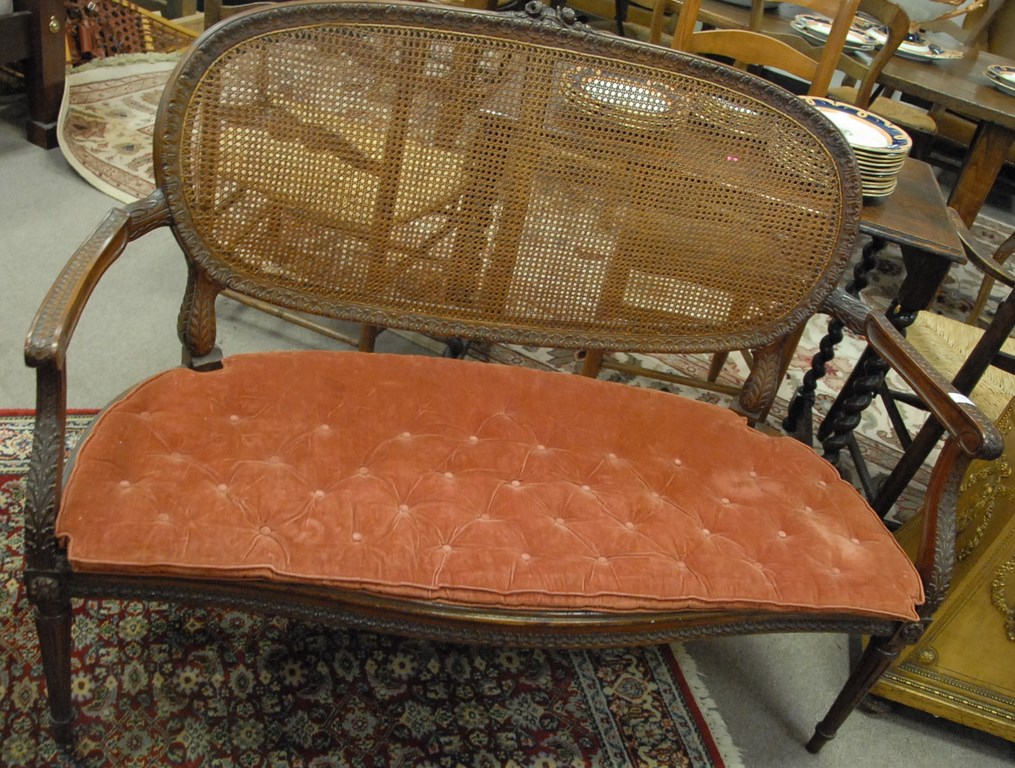 Louis XV style loveseat with caned back and seat two imperfections, wd. 50in.