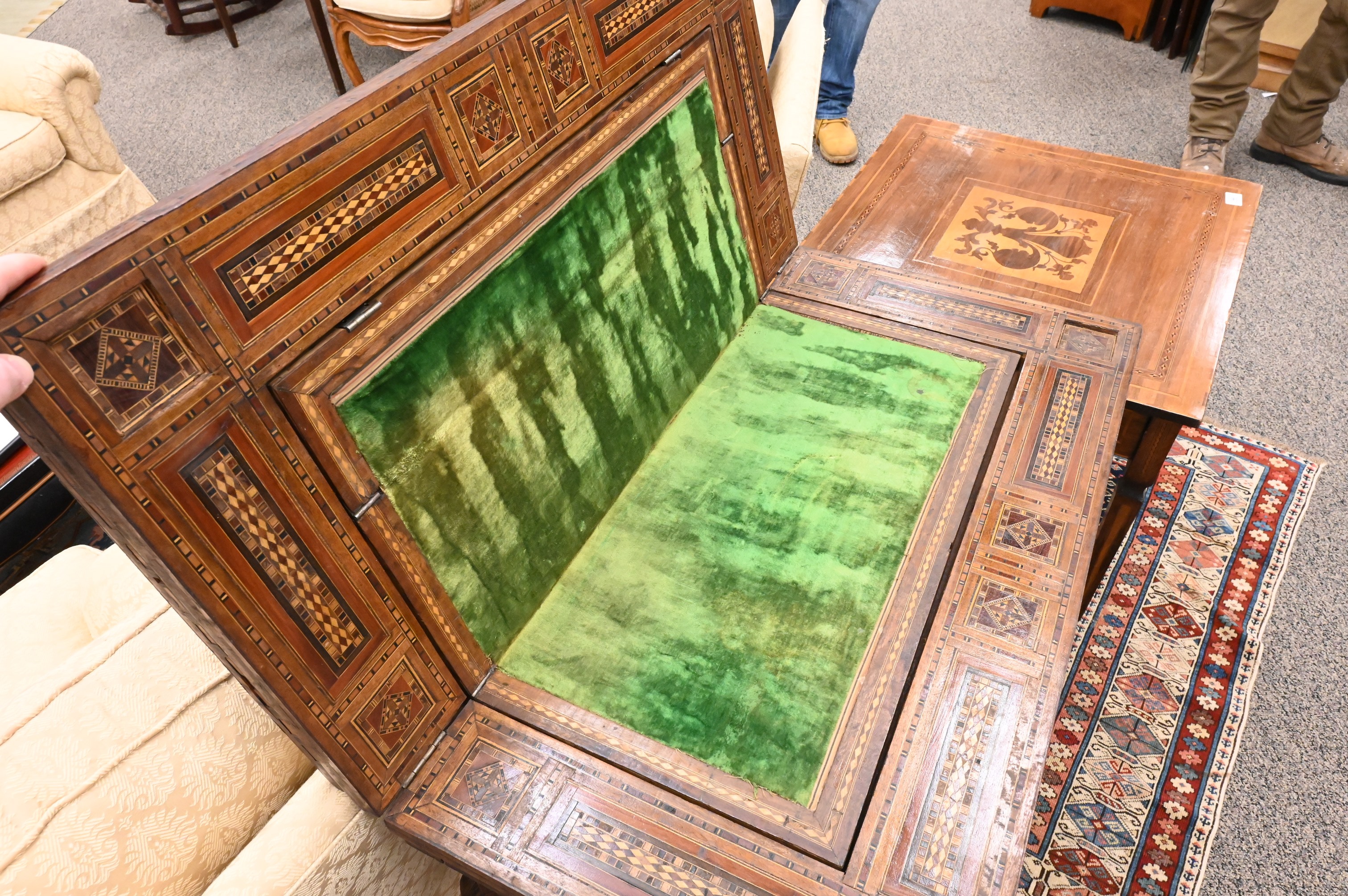 having star inlays on inlaid pedestal set on tripod base 19th century, games table having mother of pearl inlay