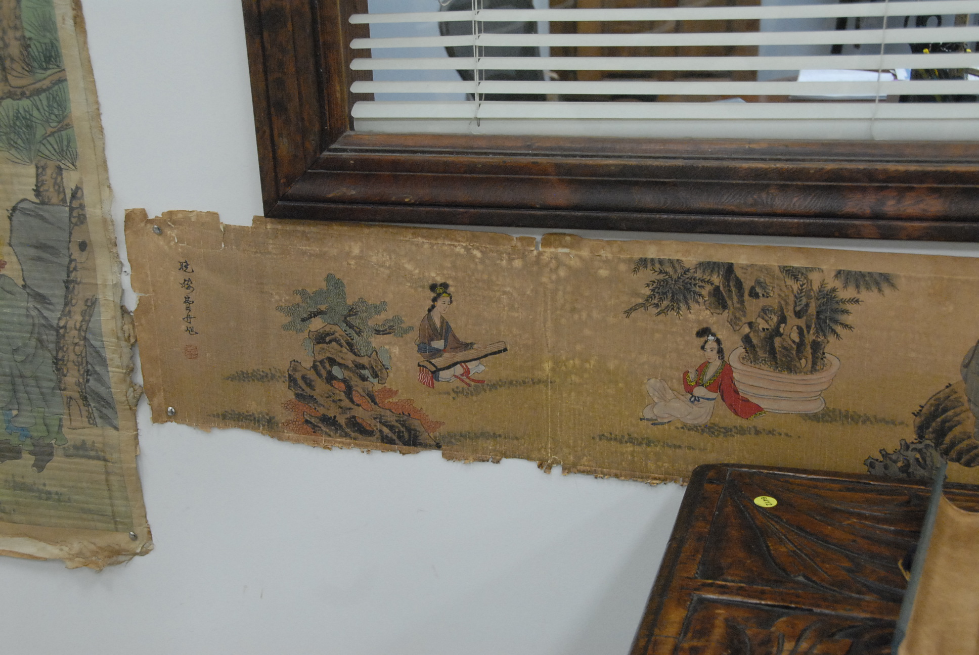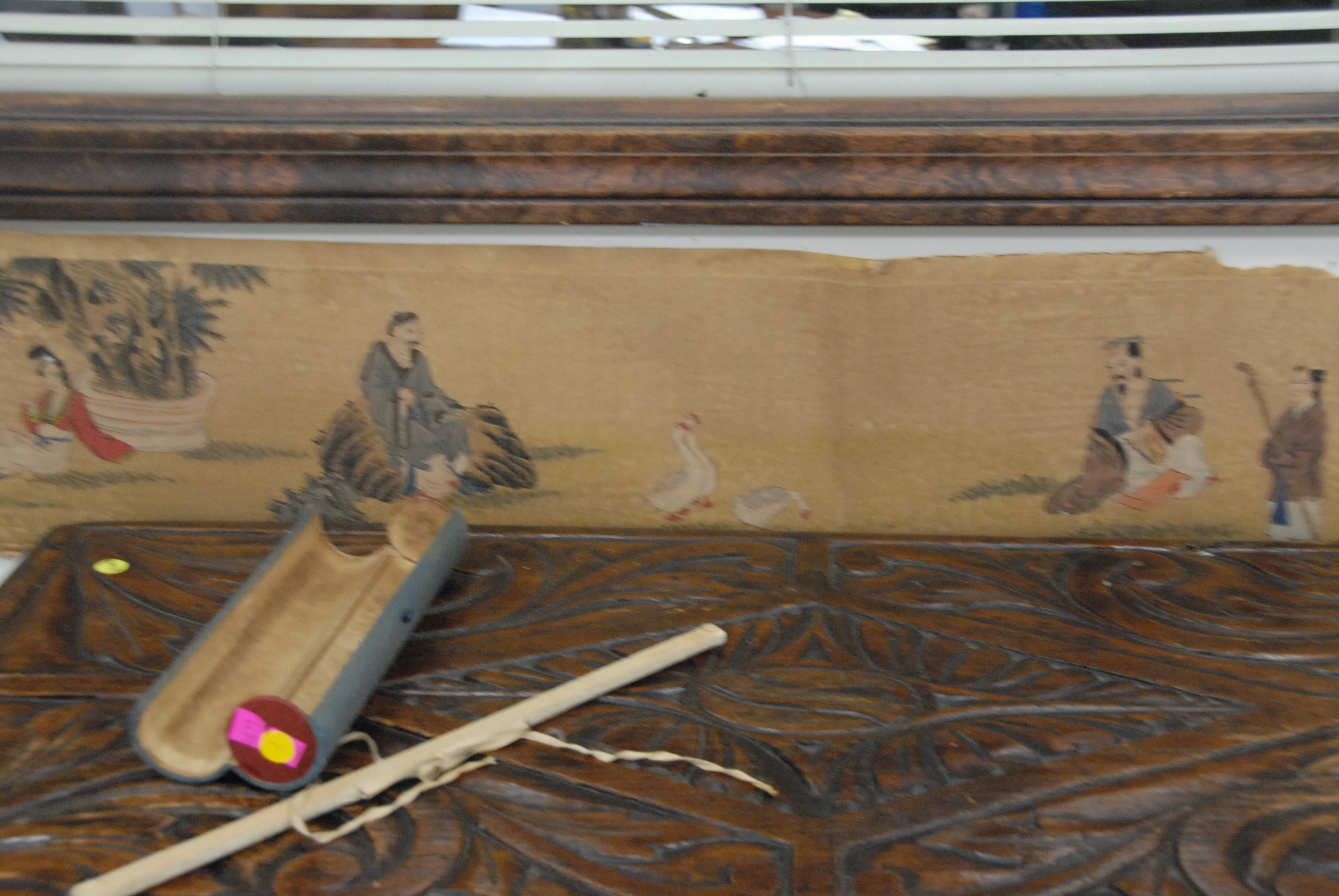Oriental horizontal Fei, Danxu landscape scroll with figures, 9 1/2 x 95.