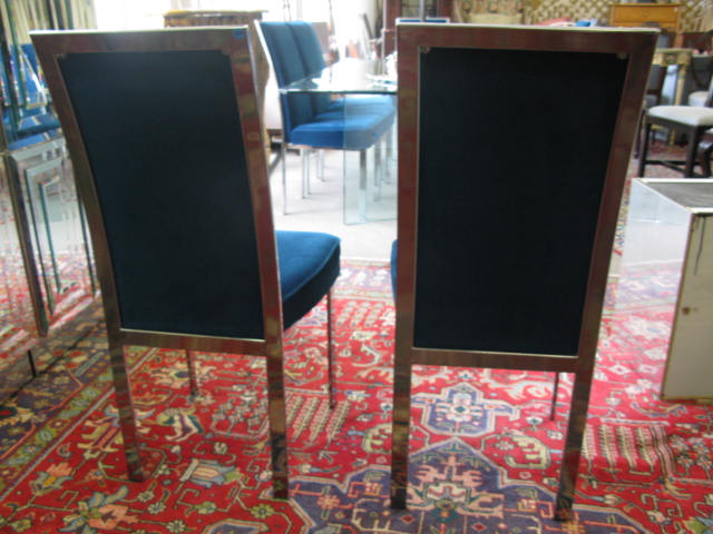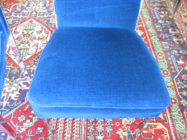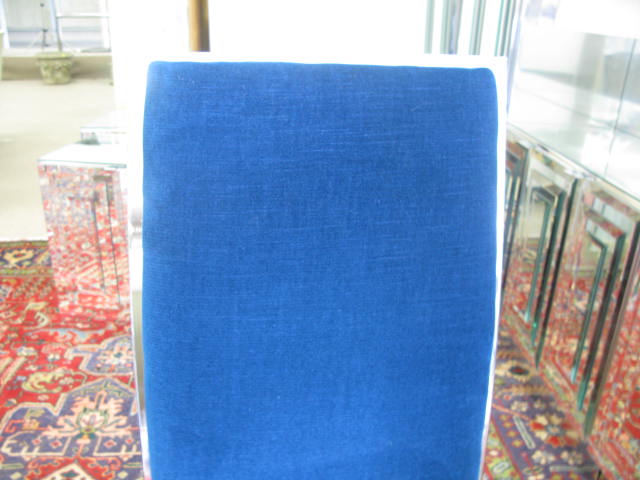 Set of eight chrome framed blue dining chairs