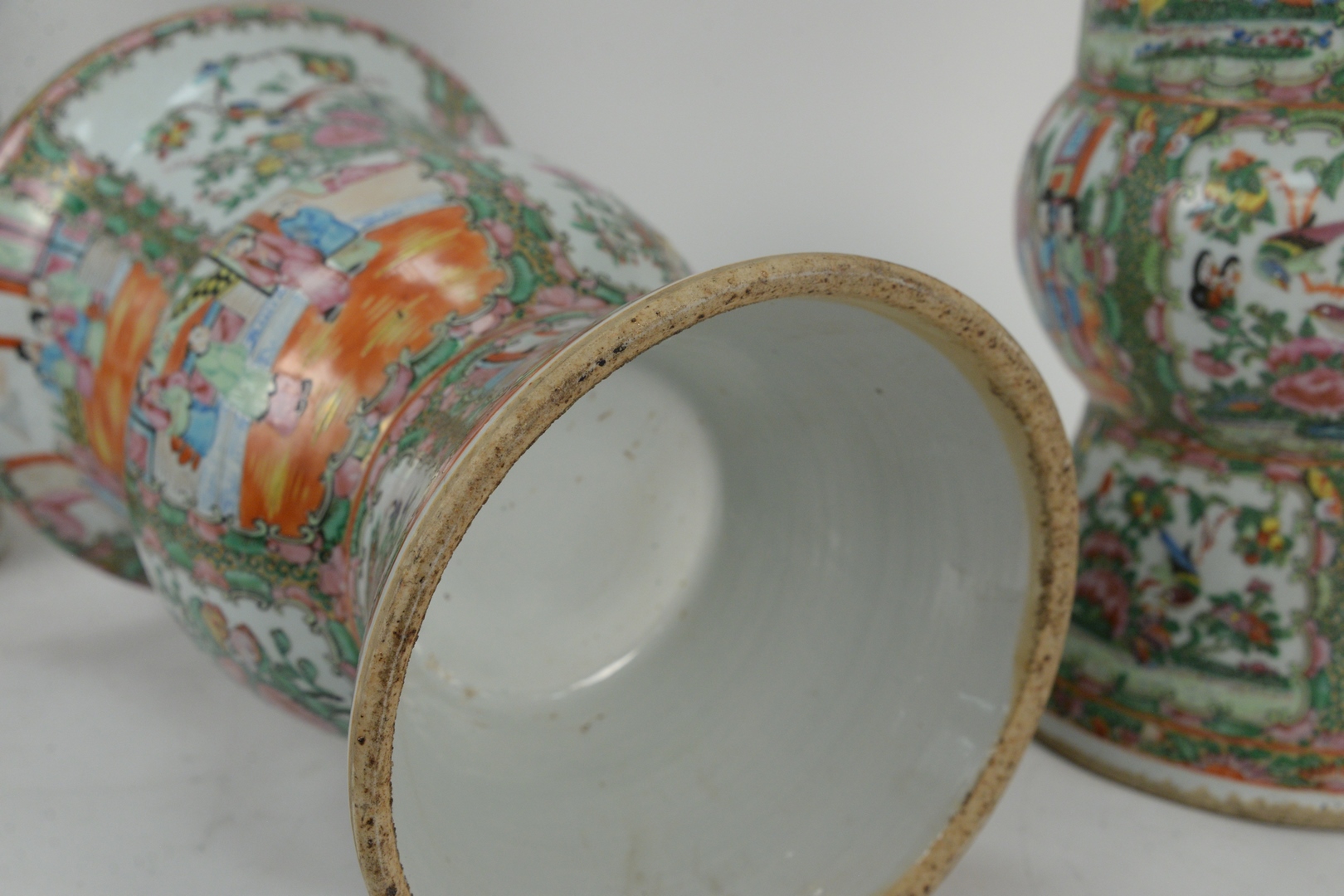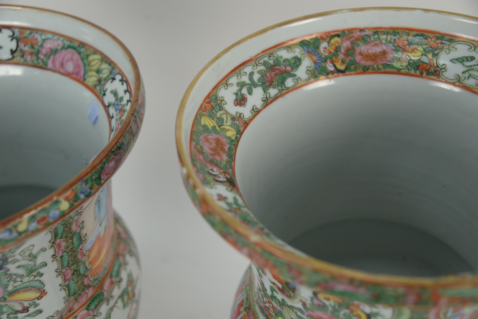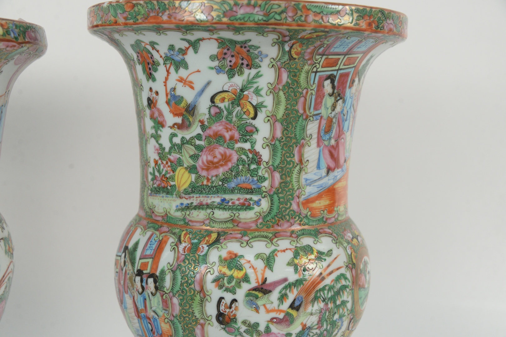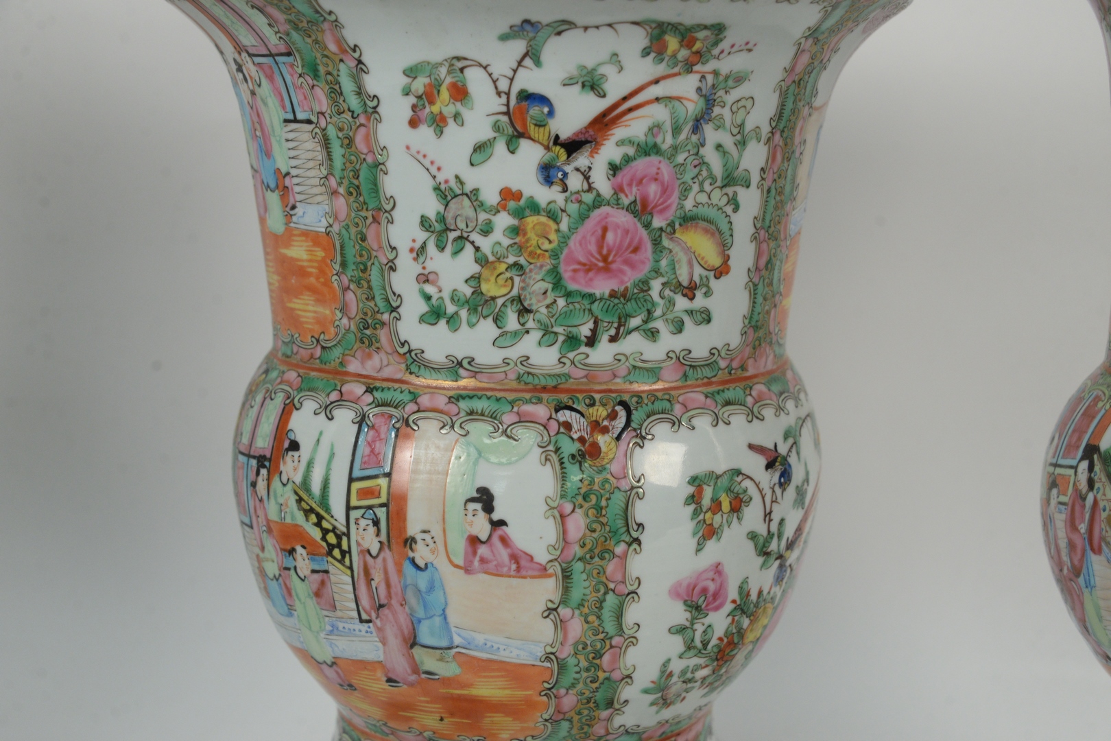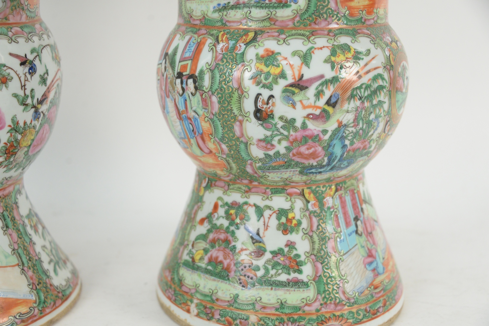 Two Famille Rose Gu Shaped Vases, 19th century, height 16 inches. Provenance: From a Glastonbury, Connecticut Collection.