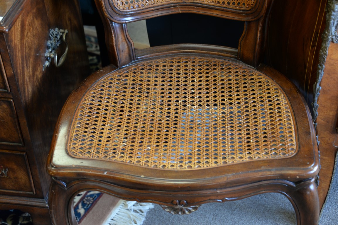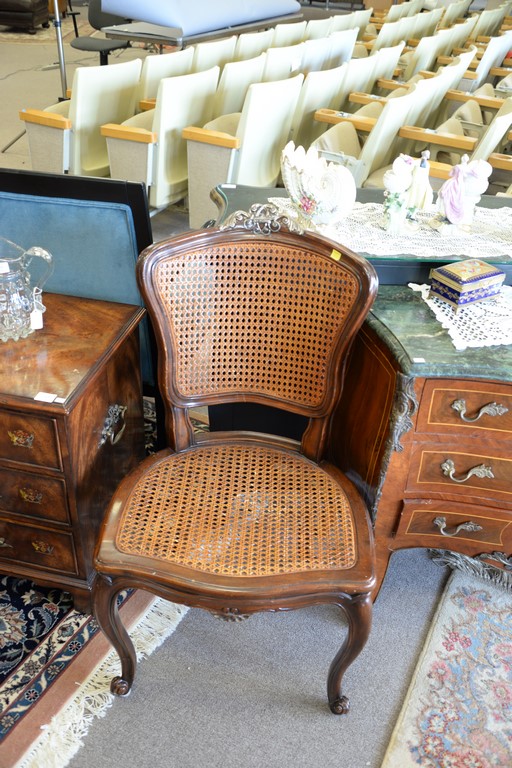 Two piece lot to include Althorp George III style mahogany bedside chest with three drawers along with a French style side chair. chest: ht. 25in., wd. 21in., dp. 18in.