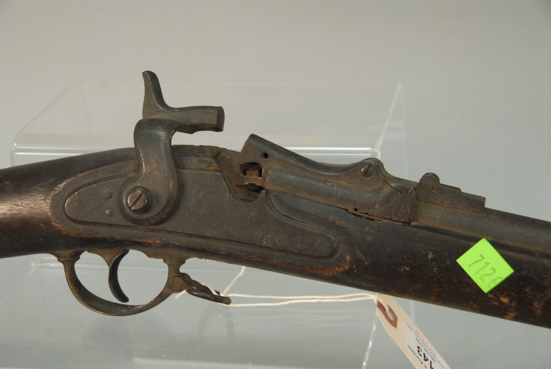 Lot 143: US Springfield Armory rifle, 1865 single shot breech loading service rifle with Allin Conversion as is.