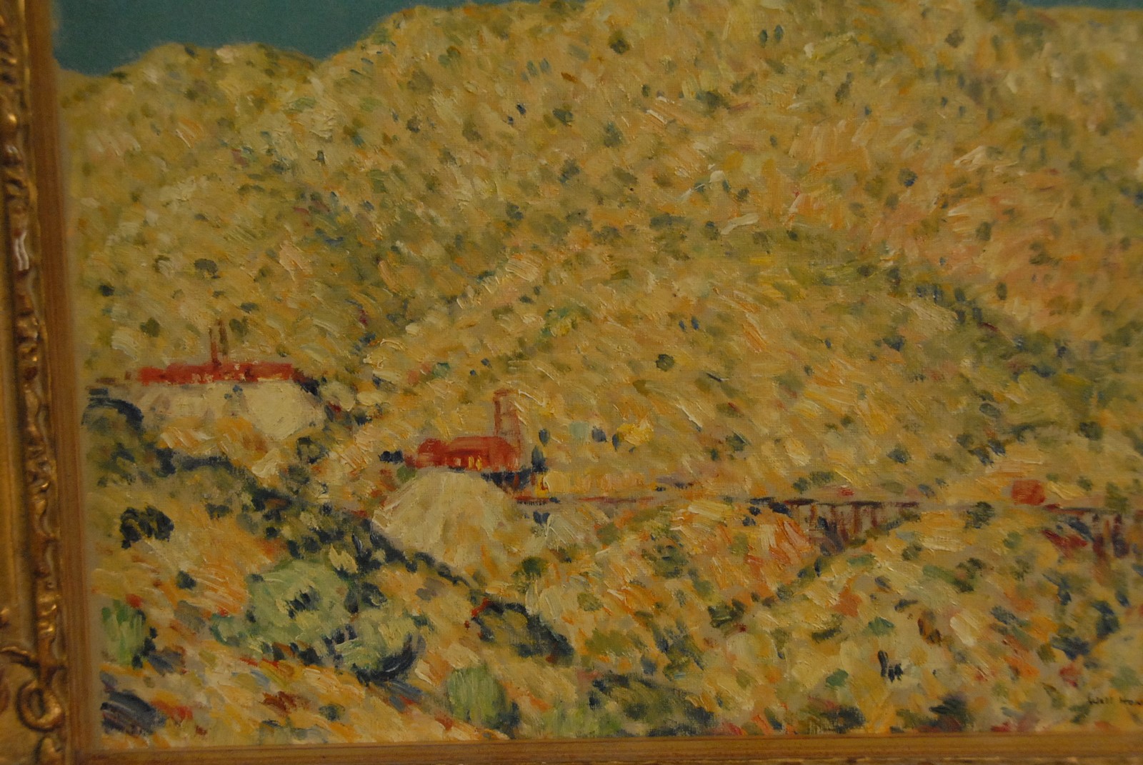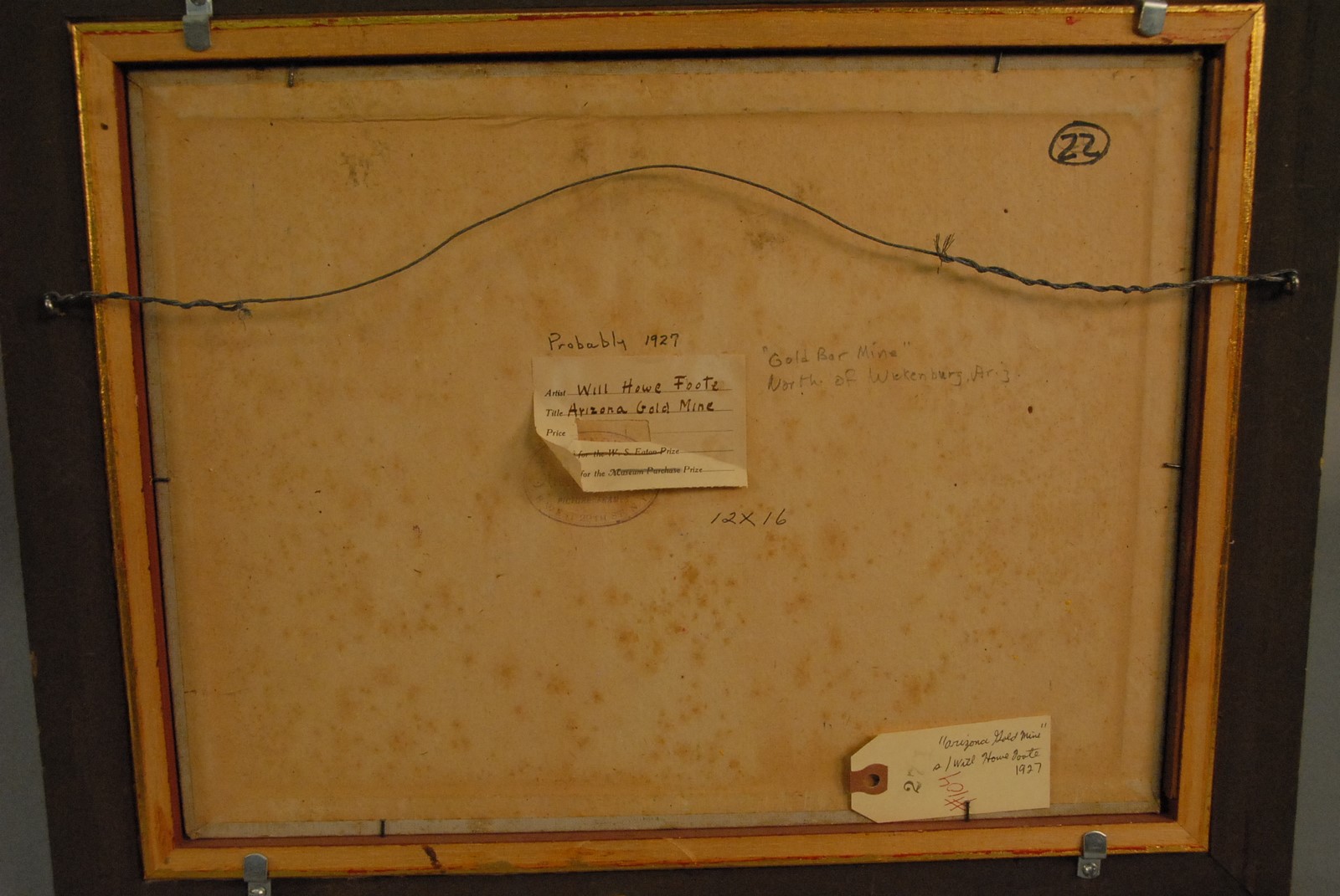 Lot 143: Will Howe Foote 1874-1965 ARIZONA GOLD MINE oil on board signed lower right Will Howe Foote partist name and title on paper label on verso 12 x 16