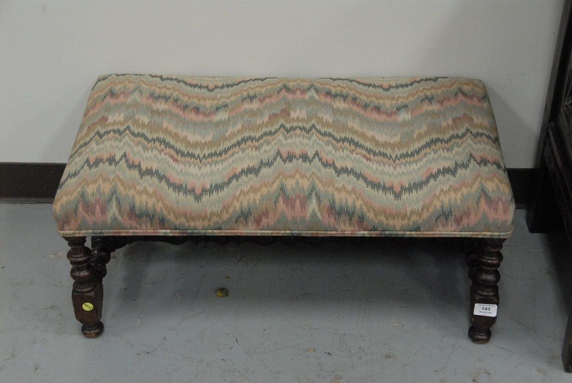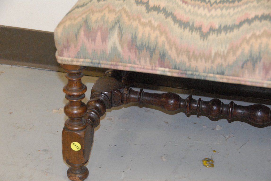 Lot 143: William and Mary bench with upholstered top, turned legs, and stretchers, 18th century. Provenance: Estate of Charles Archibald Go…..